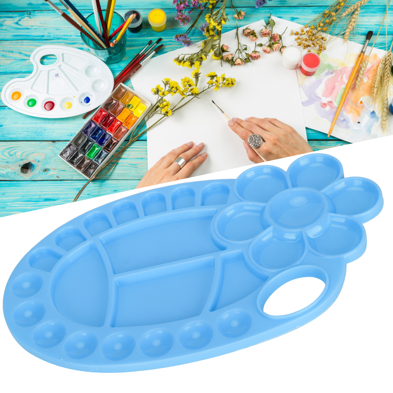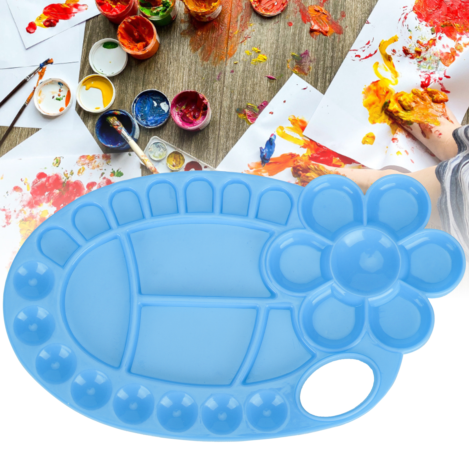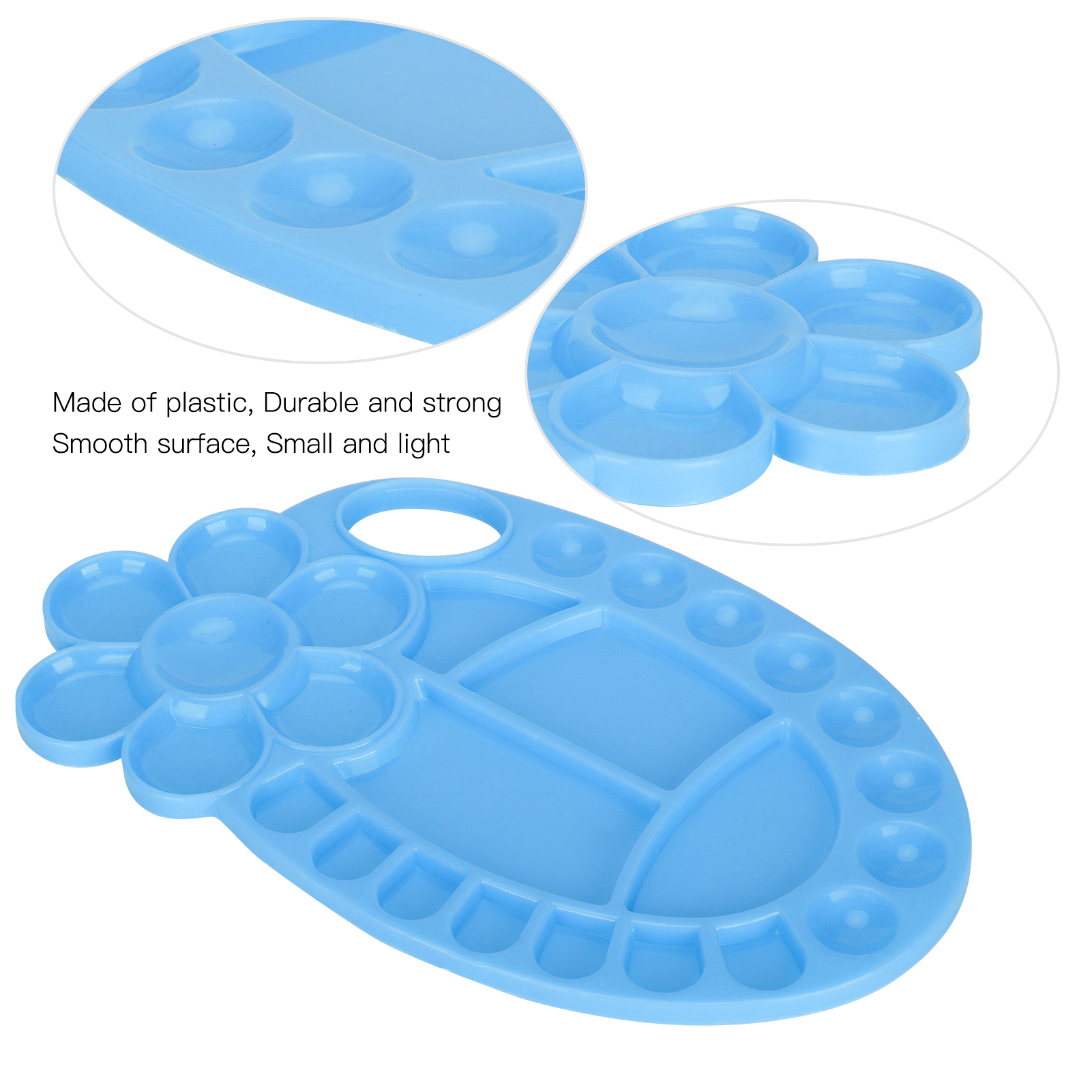 1、Irregular paint tray palettes made of plastic, durable and strong, smooth surface. 2、Widely used in sketches, parties, schools, workshops, school projects, art classes and courses. 3、For a birthday art party, you can decorate cupcakes or candy with a paint tray. 4、Small and light, even in the child can also be held in the hand, will not feel tired. 5、Suitable for Chinese painting, oil painting, watercolor, propylene, gouache, etc., can be quickly cleaned after painting.
