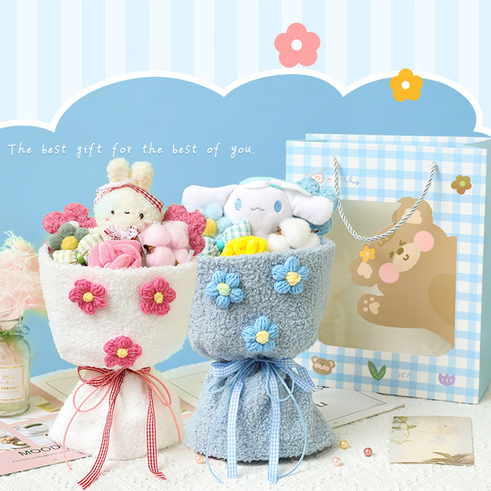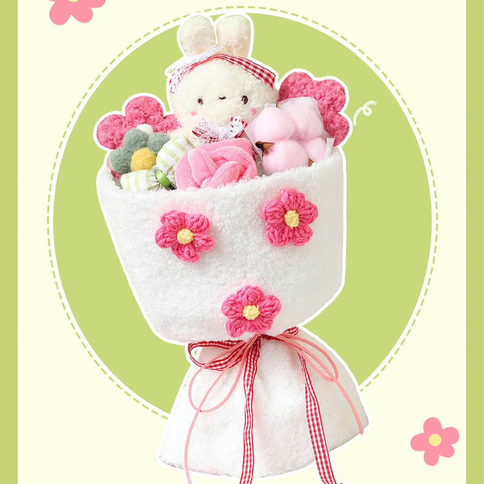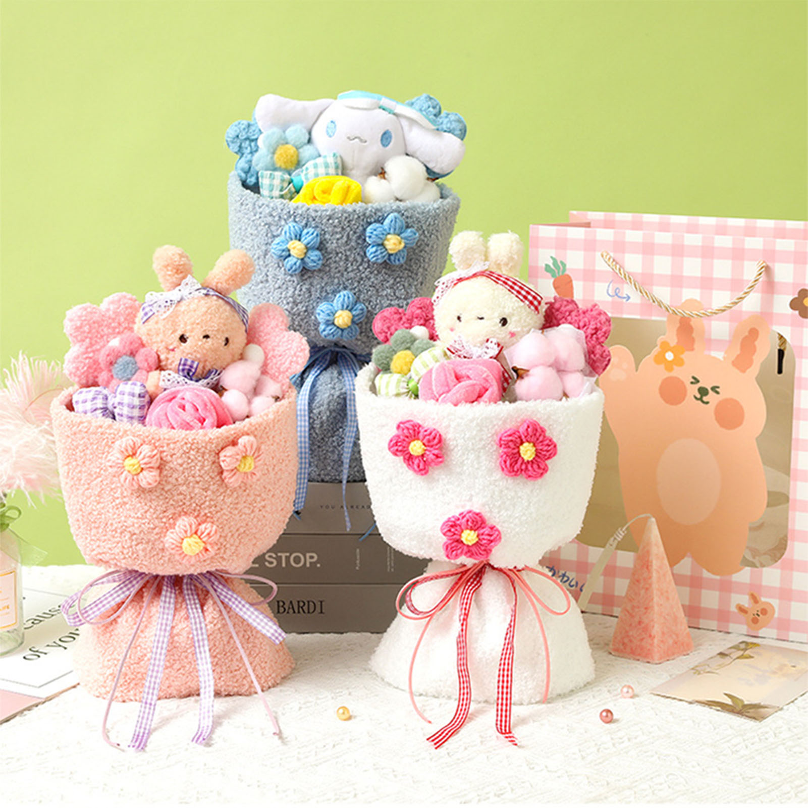1、Lovely Design: This plush toy adopts a lovely cartoon design, combined with plush flowers, looks lovely and vivid. 2、Plush Material: Bouquet is made of plush material, which is comfortable to touch, safe and skin friendly, and durable to use. 3、Perfect Gift: Dolls Bouquet is perfect as a holiday gift for female friends, kids, colleagues, girlfriends, with good symbolic meaning. 4、Portable Design: Plush bouquet is well made, exquisite details, not easy to break, more convenient to carry. 5、Decoration: Cartoon plush toy can not only be used as a gift, but also as a decoration for home, wedding, party, office.