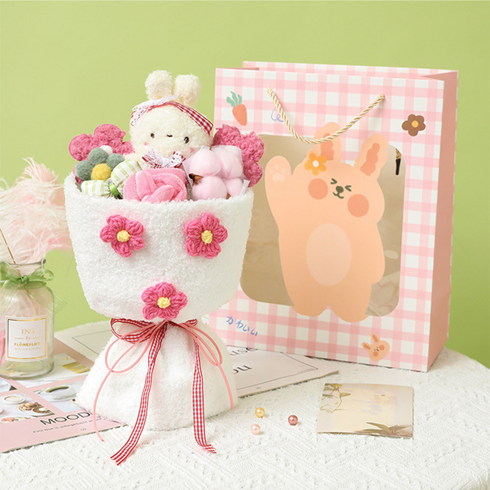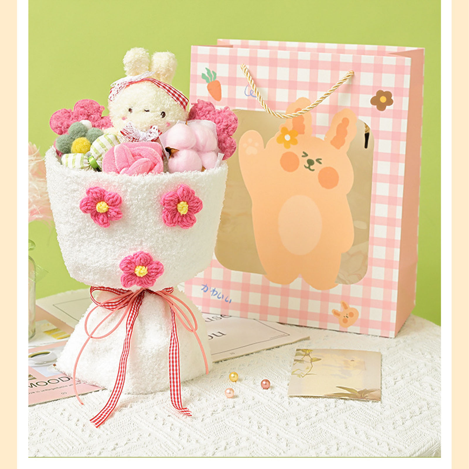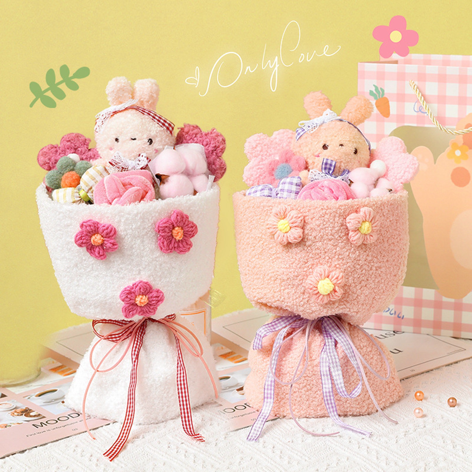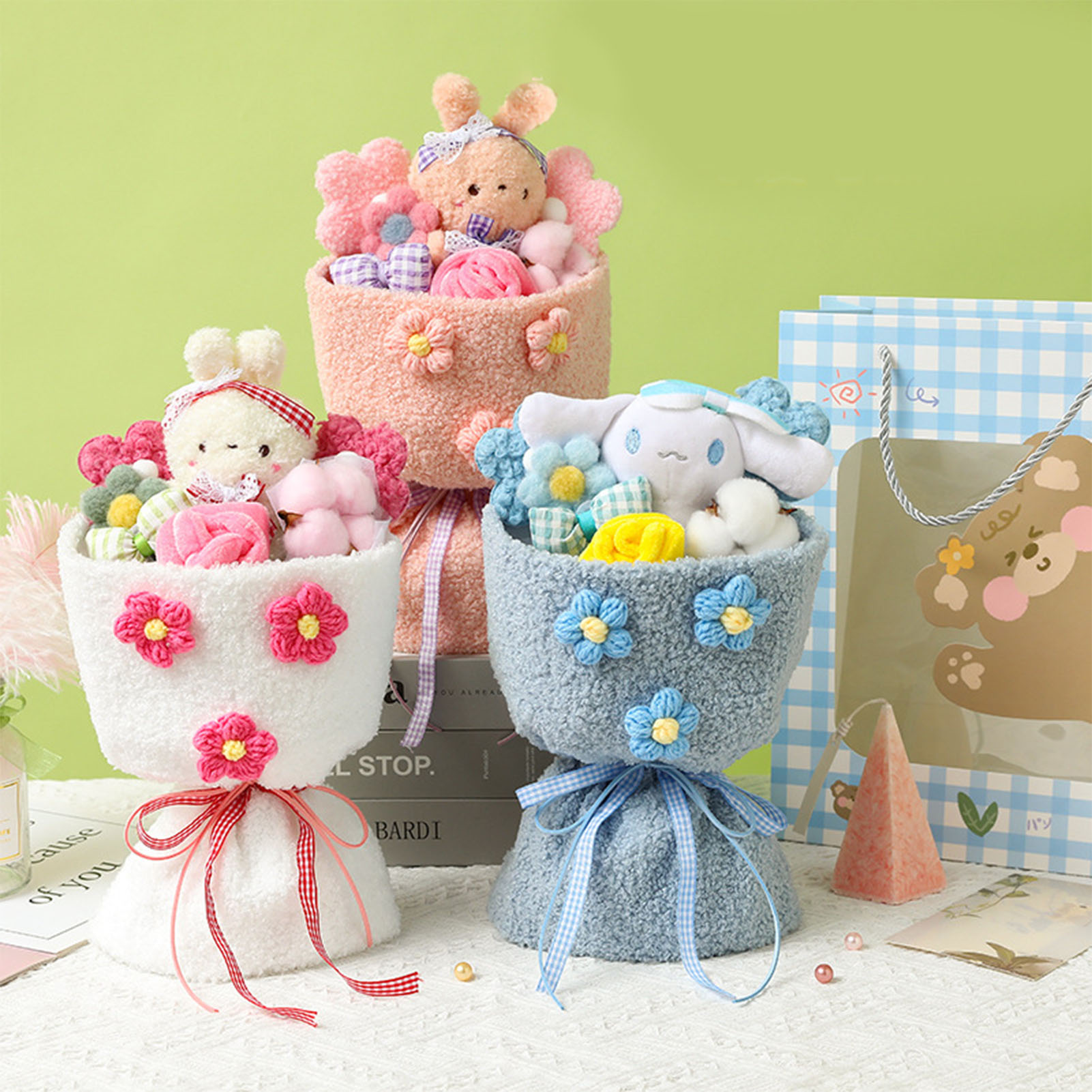 1、Lovely Design: This plush toy adopts a lovely cartoon design, combined with plush flowers, looks lovely and vivid. 2、Plush Material: Bouquet is made of plush material, which is comfortable to touch, safe and skin friendly, and durable to use. 3、Perfect Gift: Dolls Bouquet is perfect as a holiday gift for female friends, kids, colleagues, girlfriends, with good symbolic meaning. 4、Portable Design: Plush bouquet is well made, exquisite details, not easy to break, more convenient to carry. 5、Decoration: Cartoon plush toy can not only be used as a gift, but also as a decoration for home, wedding, party, office.