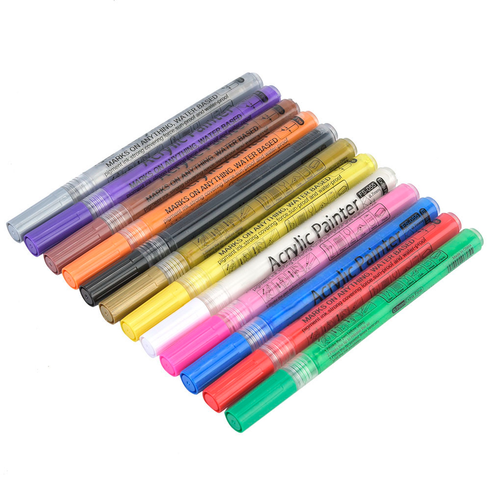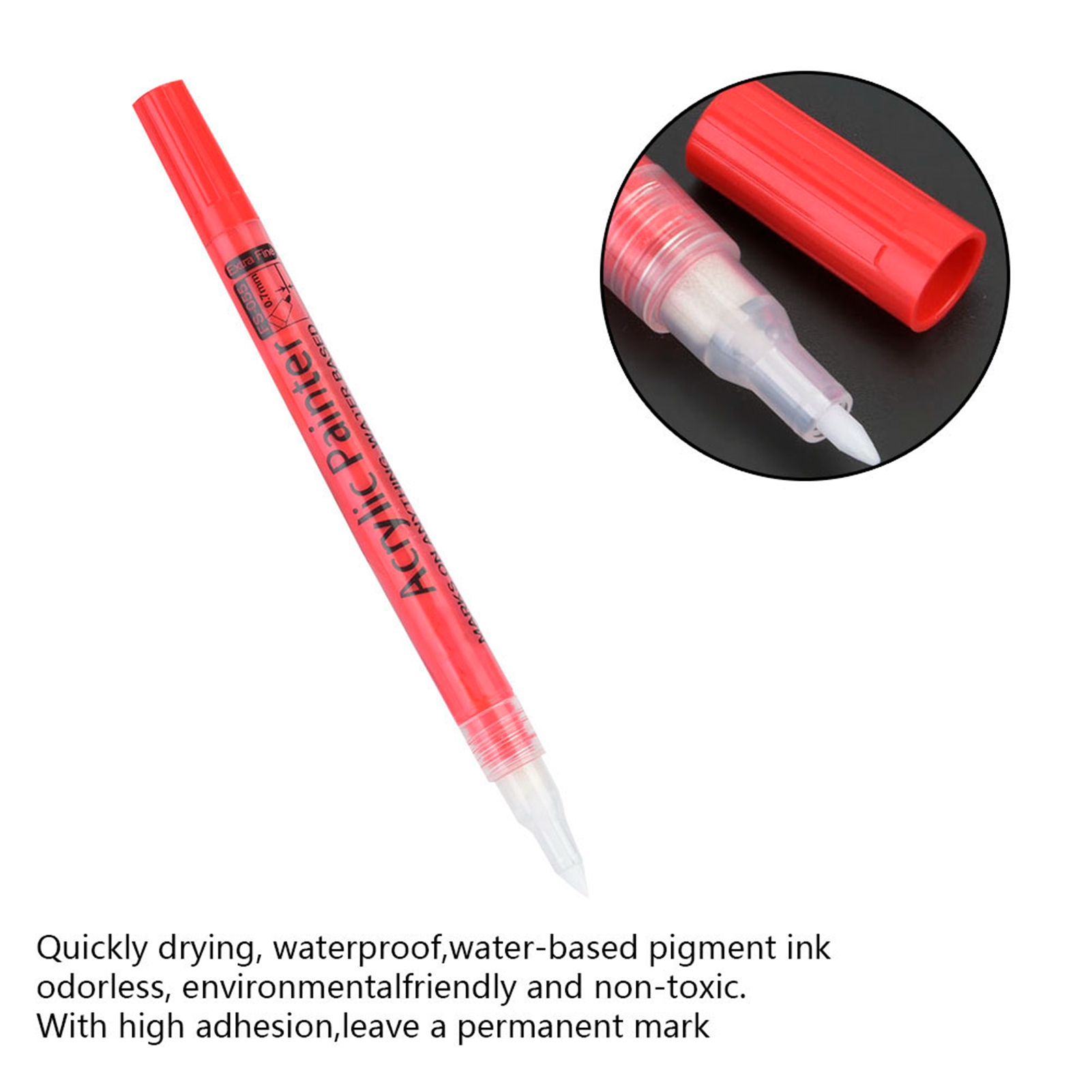 1、Can write on a variety of surfaces, such as body painting, paper, canvas, glass, ceramics, plastic, cloth, wood, metal, etc. 2、There are two steel balls on each pen to make the ink shake more evenly. 3、Quickly drying, waterproof,water-based pigment ink, odorless, environmentally friendly and non-toxic. 4、The cap is the same color as the ink, allowing you to easily pick the color you like. 5、With high adhesion,the product can leave a permanent mark on the surface of material.