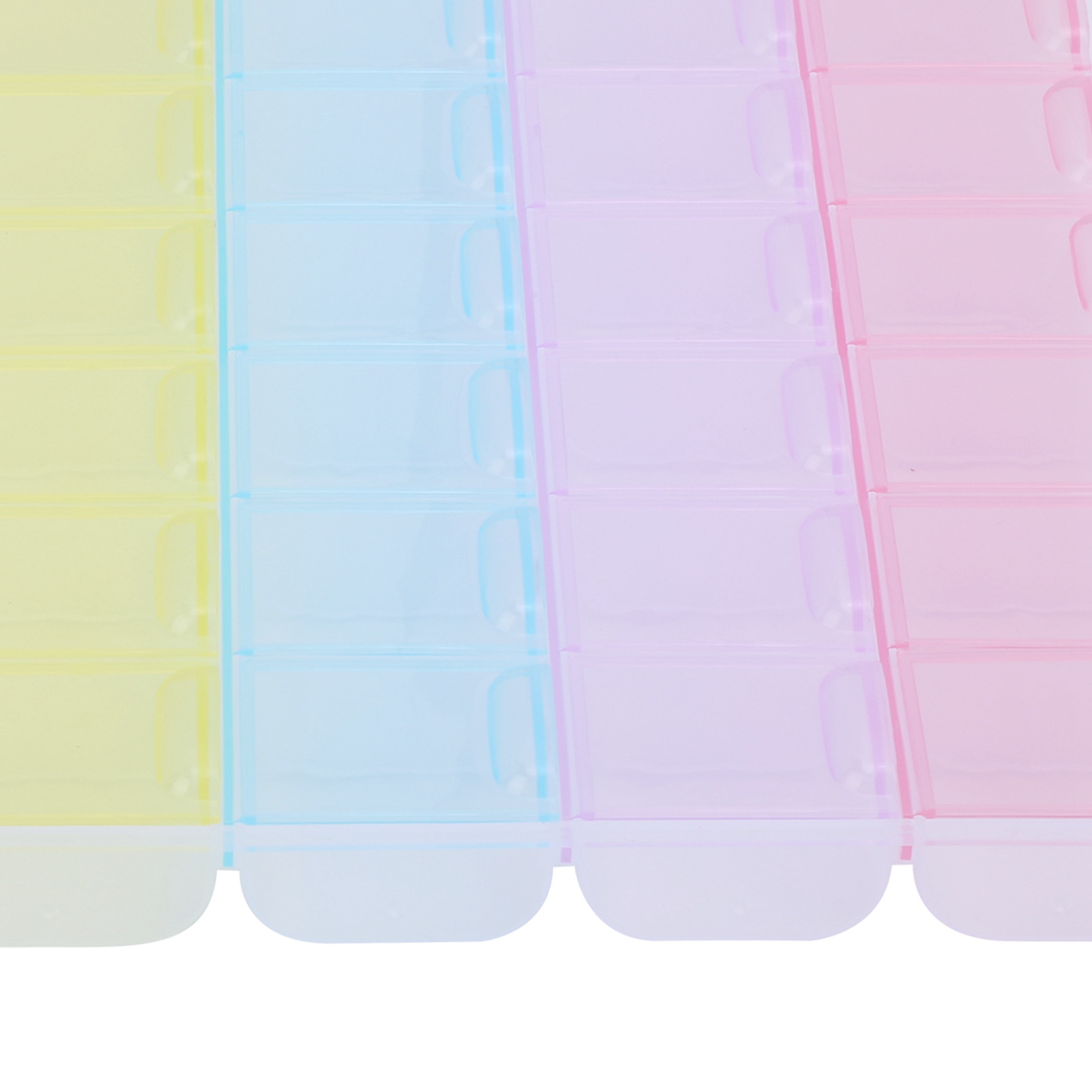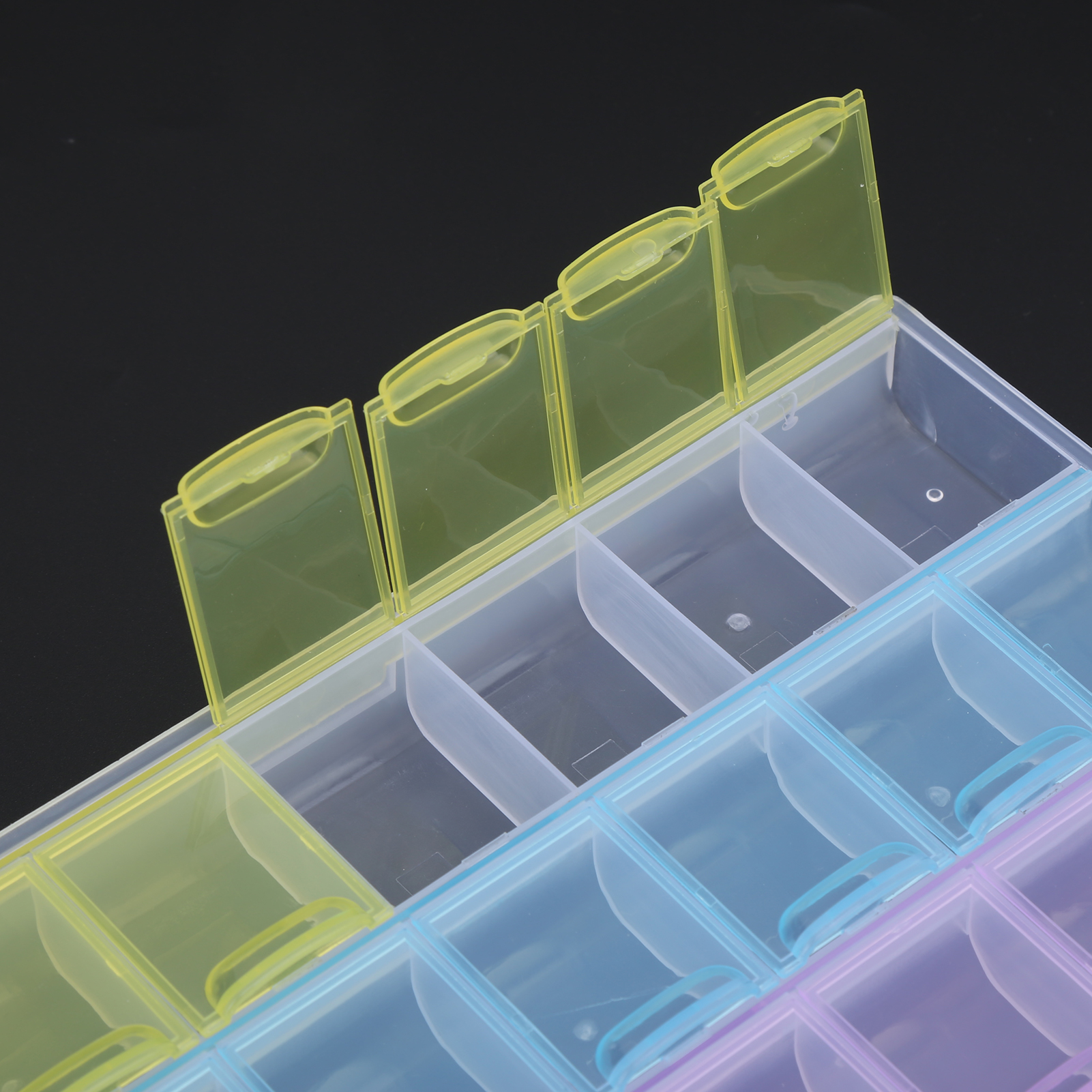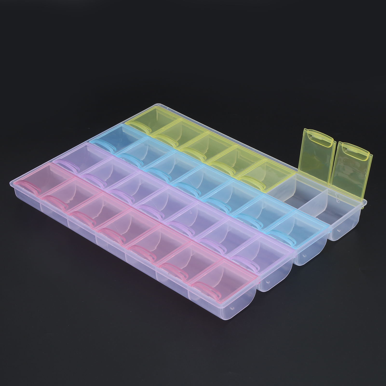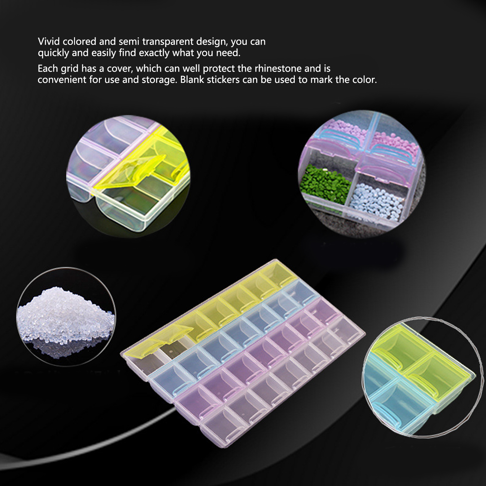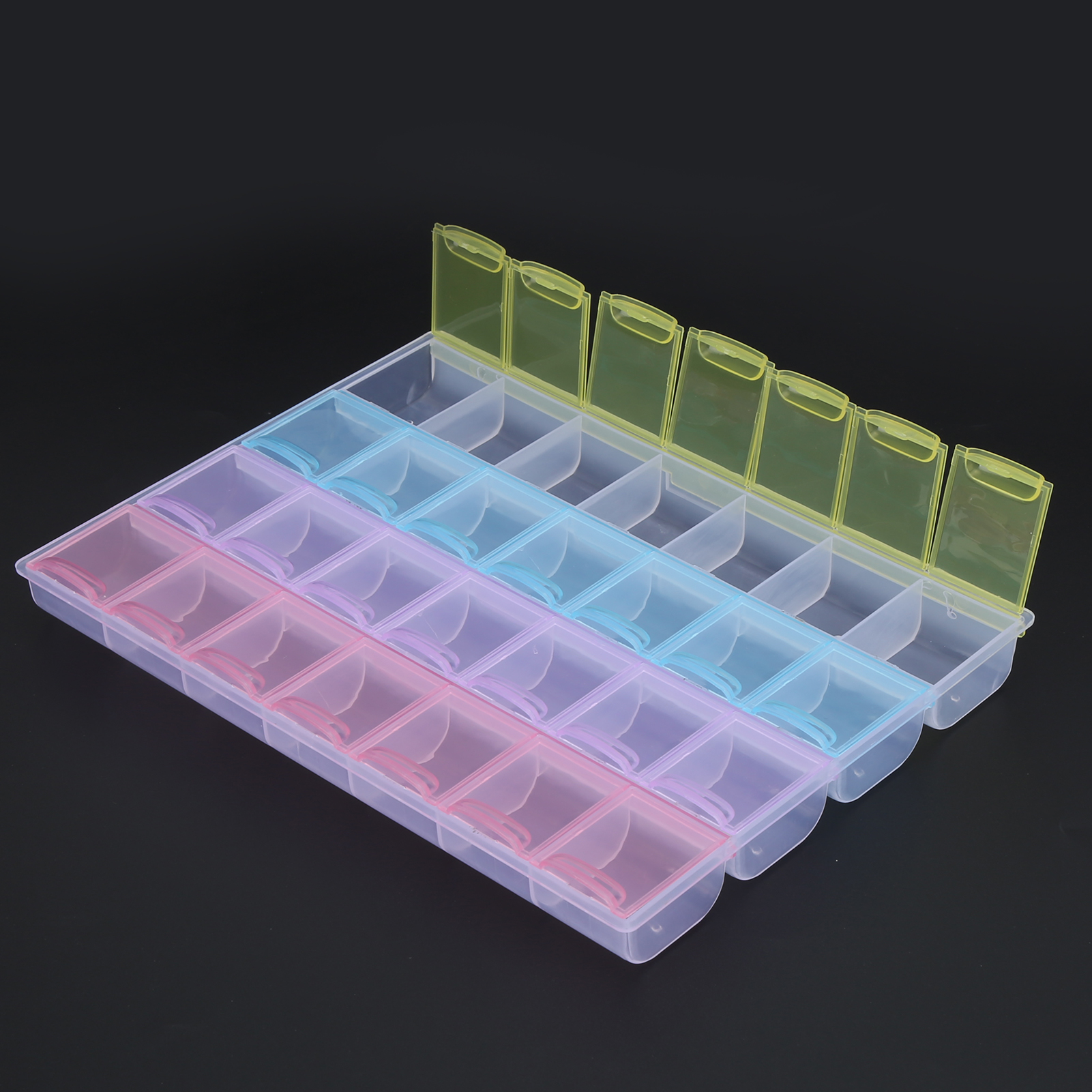 1、High‑quality material and beautifully crafted, our bead organizer made of premium plastic which is sturdy and durable for long‑term use. 2、Storage box designed with 28 mini compartments, contains 7 rows of 4 grids, giving you more spaces for storage. 3、Vivid colored and semi transparent design, you can quickly and easily find exactly what you need. 4、Each grid has a cover, which can well protect the rhinestone and is convenient for use and storage. Blank stickers can be used to mark the color. 5、Ideal for storing and organizing nail art rhinestones, make up, jewelry, beads, necklaces, rings, glitter, sewing supplies, scrapbooking embellishments, rhinestone embroidery and other various items.