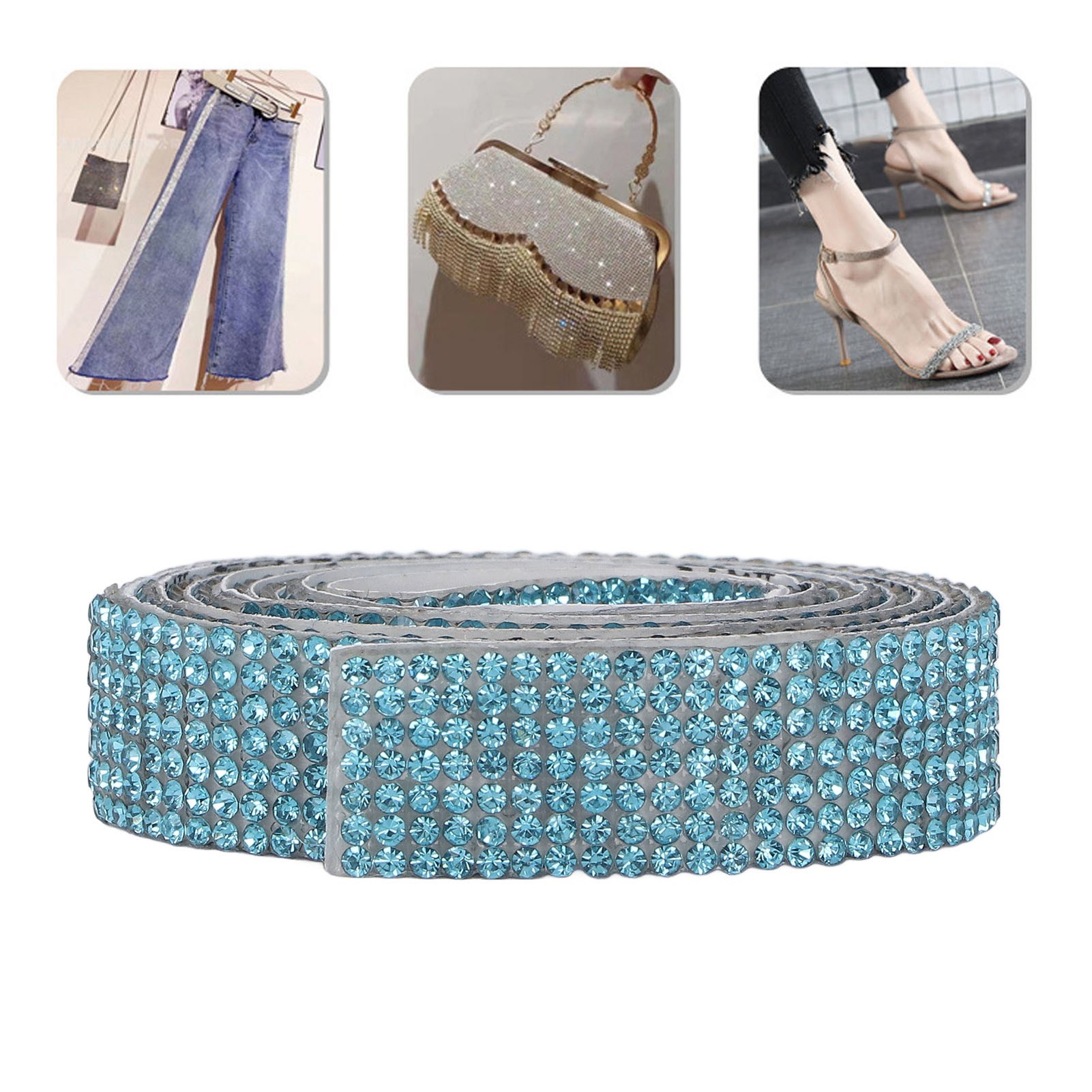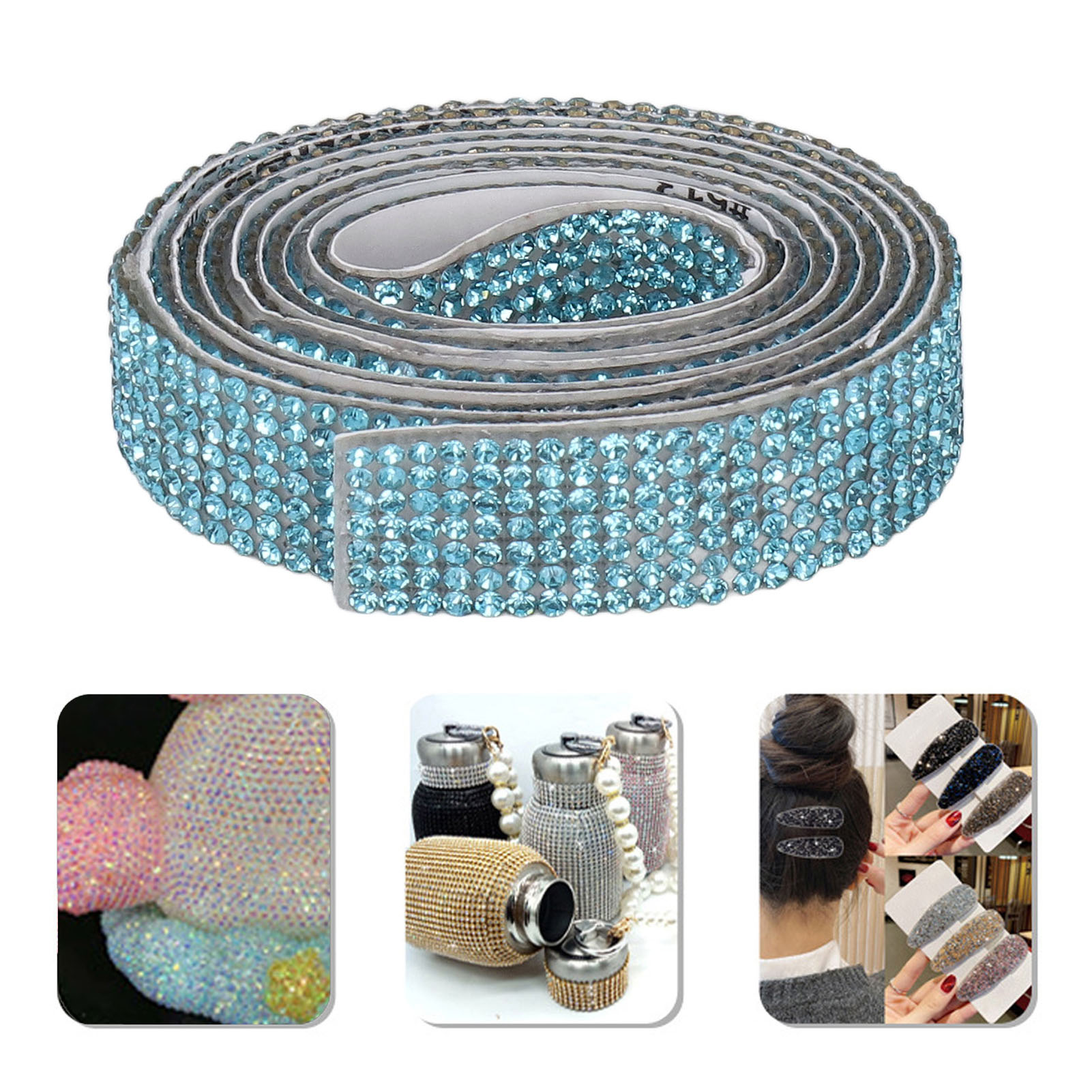 Rhinestone Strip Lake Blue 5yd Length Self Adhesive Sparkling Widely Used Crystal Ribbon for Party Wedding Home