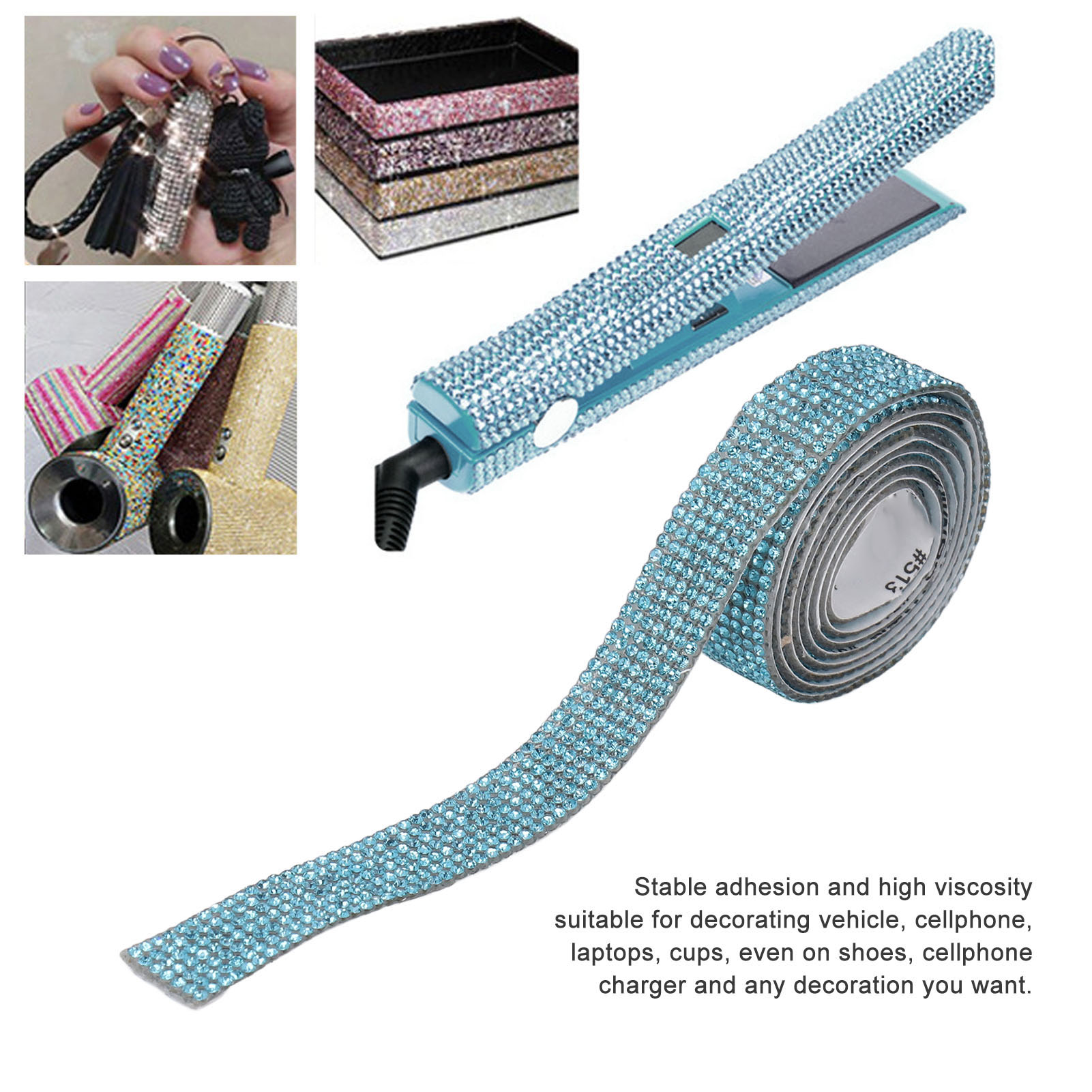1、Self Adhesive: This rhinestone stirp is self adhesive, just tear off the adhesive tape on the back and press it on the surface you want. 2、High Stability: This crystal ribbon is high temperature resistant, feature more stable adhesion and excellent stickiness. 3、5yd Per Roll: This bling crystal ribbon is about 5 yards in length and 0.6in in width, meeting your basic needs for DIY. 4、Wide Application: This rhinestone ribbon is suitable for decorating vehicle, cellphone, laptops, cups, even on shoes, cellphone charger and any decoration you want. 5、Easy to Use: This crystal tape can be easily cut to the length you need, you can also share them with your friends or family members.