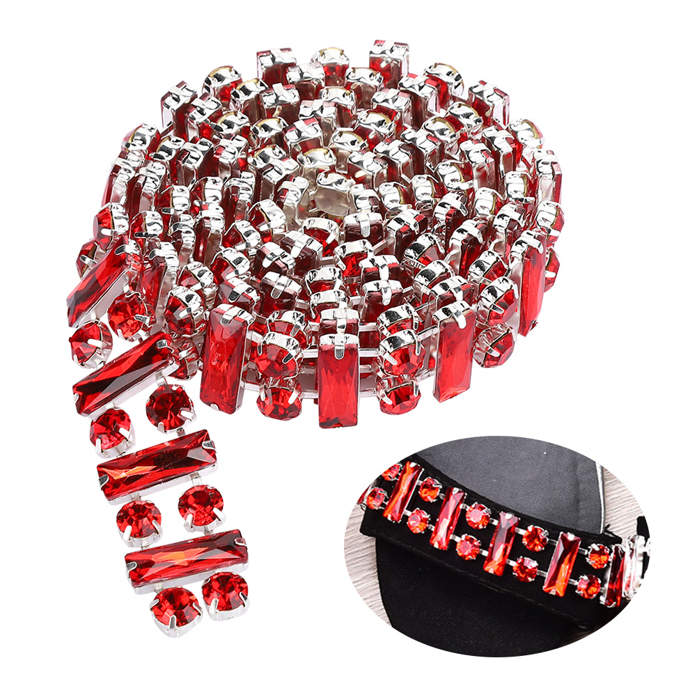 Rhinestones Chain Crystal Trim DIY Clothes Accessories Furniture Decor Red 2.2CM 1-Meter