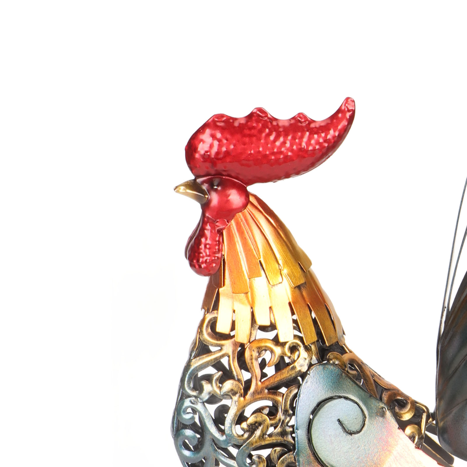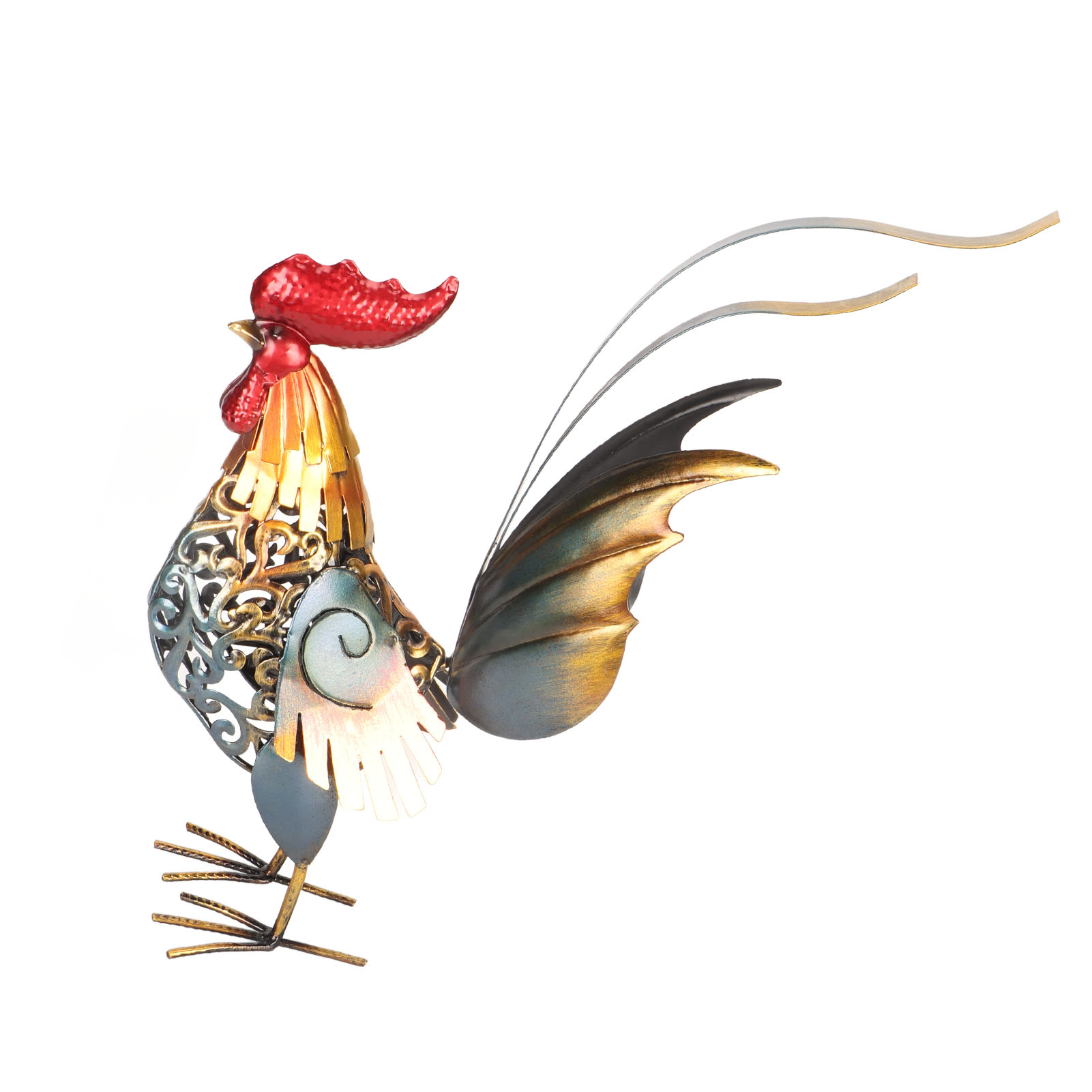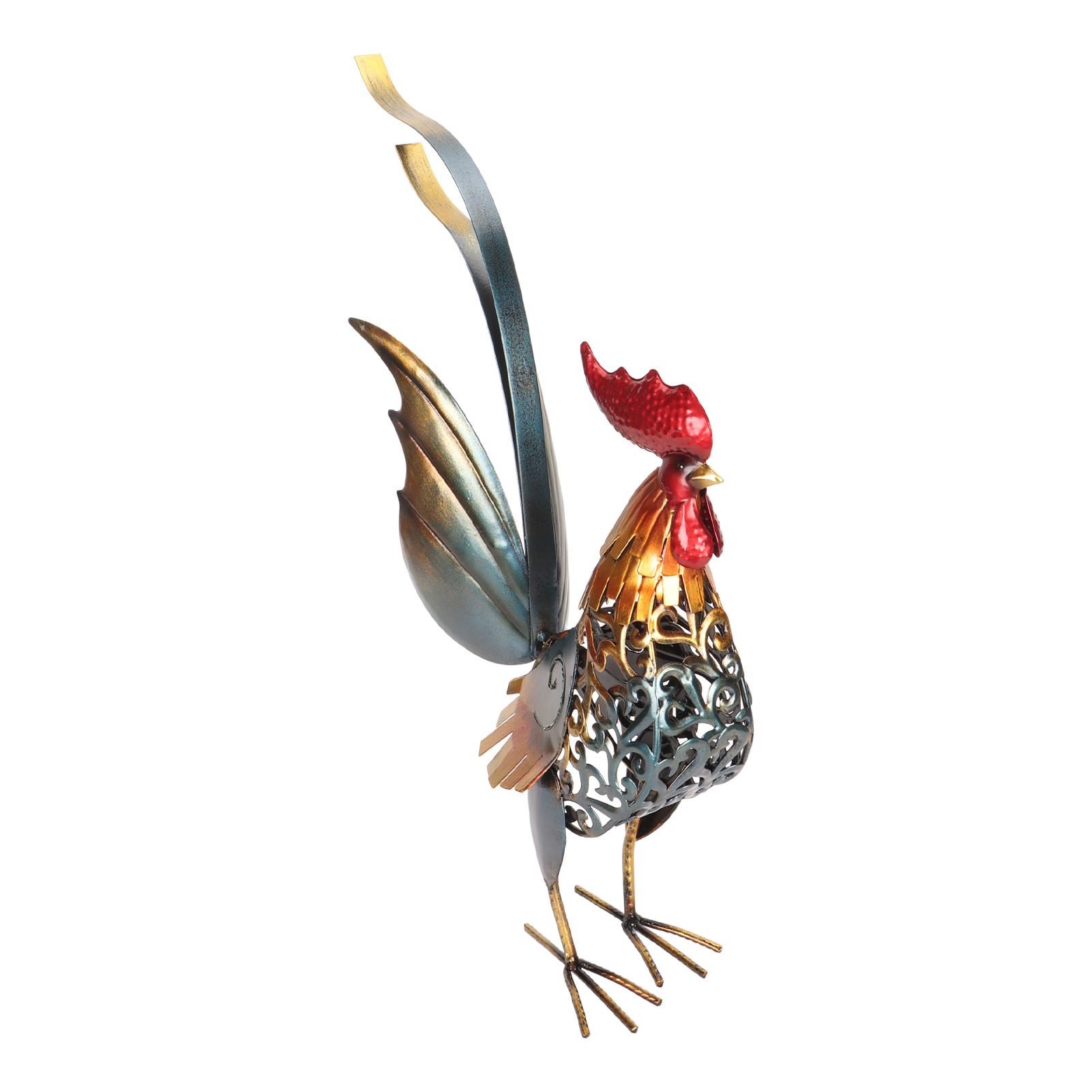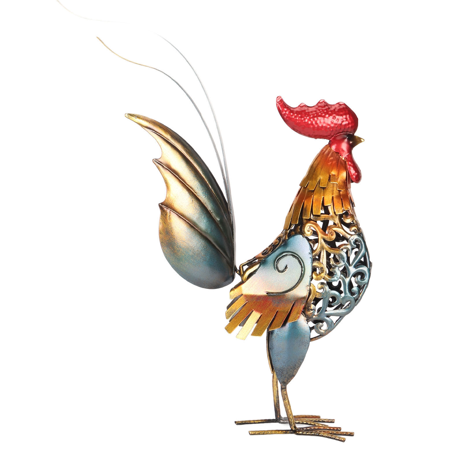 1、[Iron Material]: The rooster sculpture is crafted from iron material, ensuring durability and longevity, and the surfaces undergoes high temperature baking paint process, visually appealing and environmentally friendly. 2、[Hollow Design]: The rooster sculpture features a captivating hollow design, adding depth and dimension to the overall appearance. The detachable tail allows for customization and adjustment to suit your preferences. 3、[Versatile Decoration]: Add a touch of interesting to your backyard, lawn, or garden with the intricately carved iron rooster sculpture. Its dynamic form and lifelike details make it a captivating decoration for both indoor and outdoor spaces. 4、[Delicate Present]: The rooster sculpture serves as a perfect present for birthdays, housewarmings, anniversaries, Thanksgiving, Christmas, and more, is memorable and thoughtful present. 5、[Wide Application]: The carved rooster sculpture is suitable for both indoor and outdoor, can be placed on the kitchen cabinet, in the living room, or in the garden.