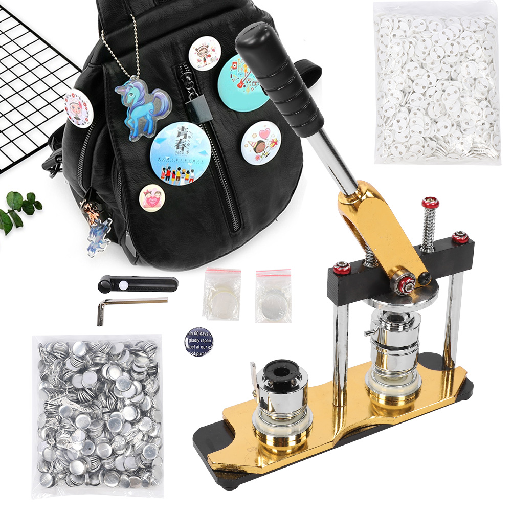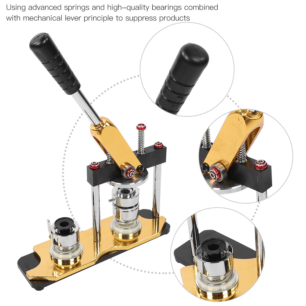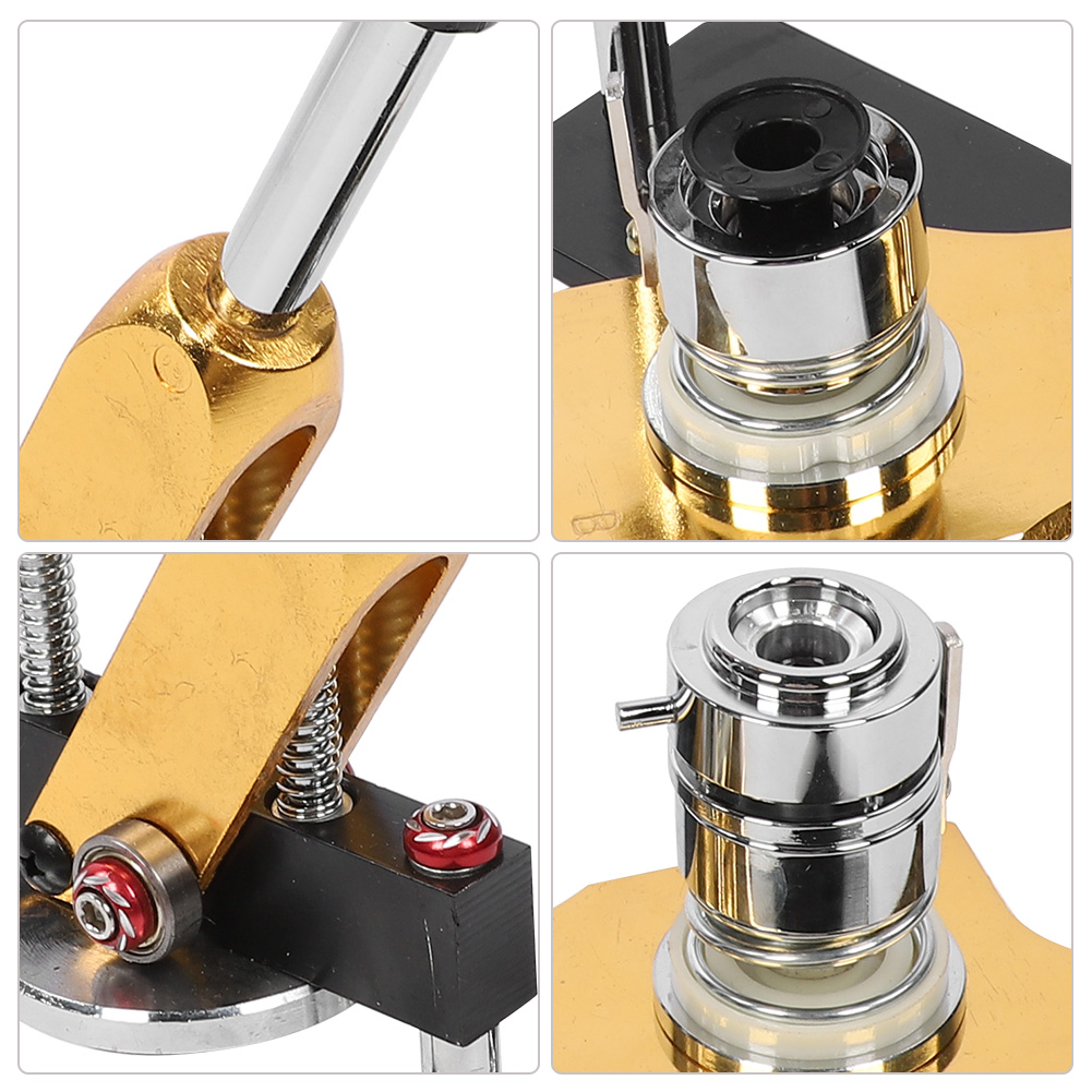 1、Ergonomically designed handle, smooth and comfortable, beautiful and durable 2、Used with aluminum alloy sliding mold, exquisite appearance and durable 3、Using advanced springs and high-quality bearings combined with mechanical lever principle to suppress products, saving effort 4、With 1000pcs badges, you can make different buttons, simple to operate 5、High quality and reasonable design, the button maker specification is 25mm