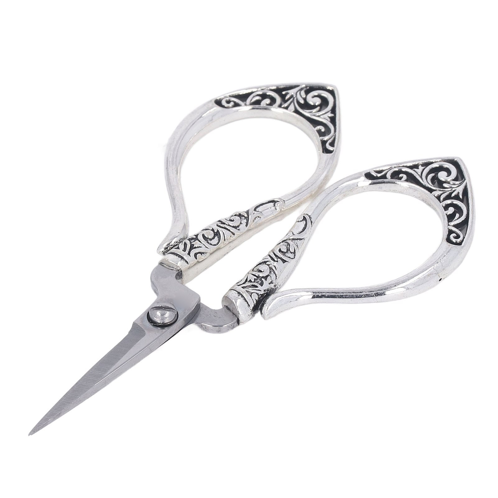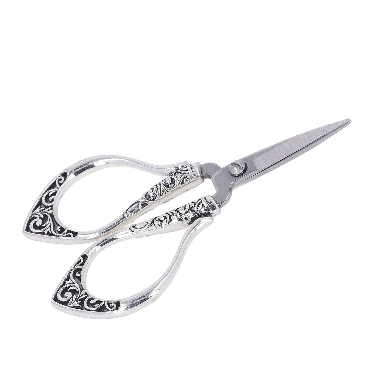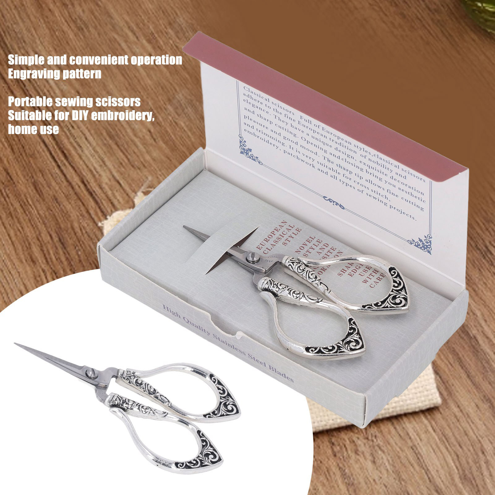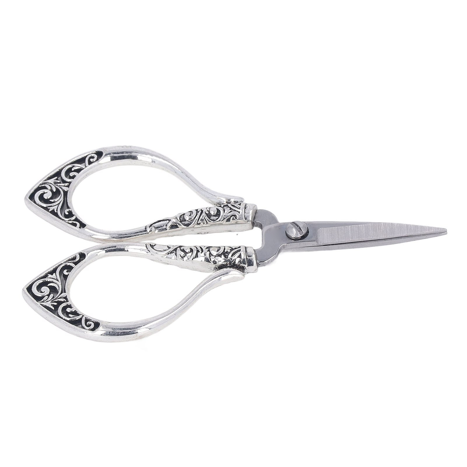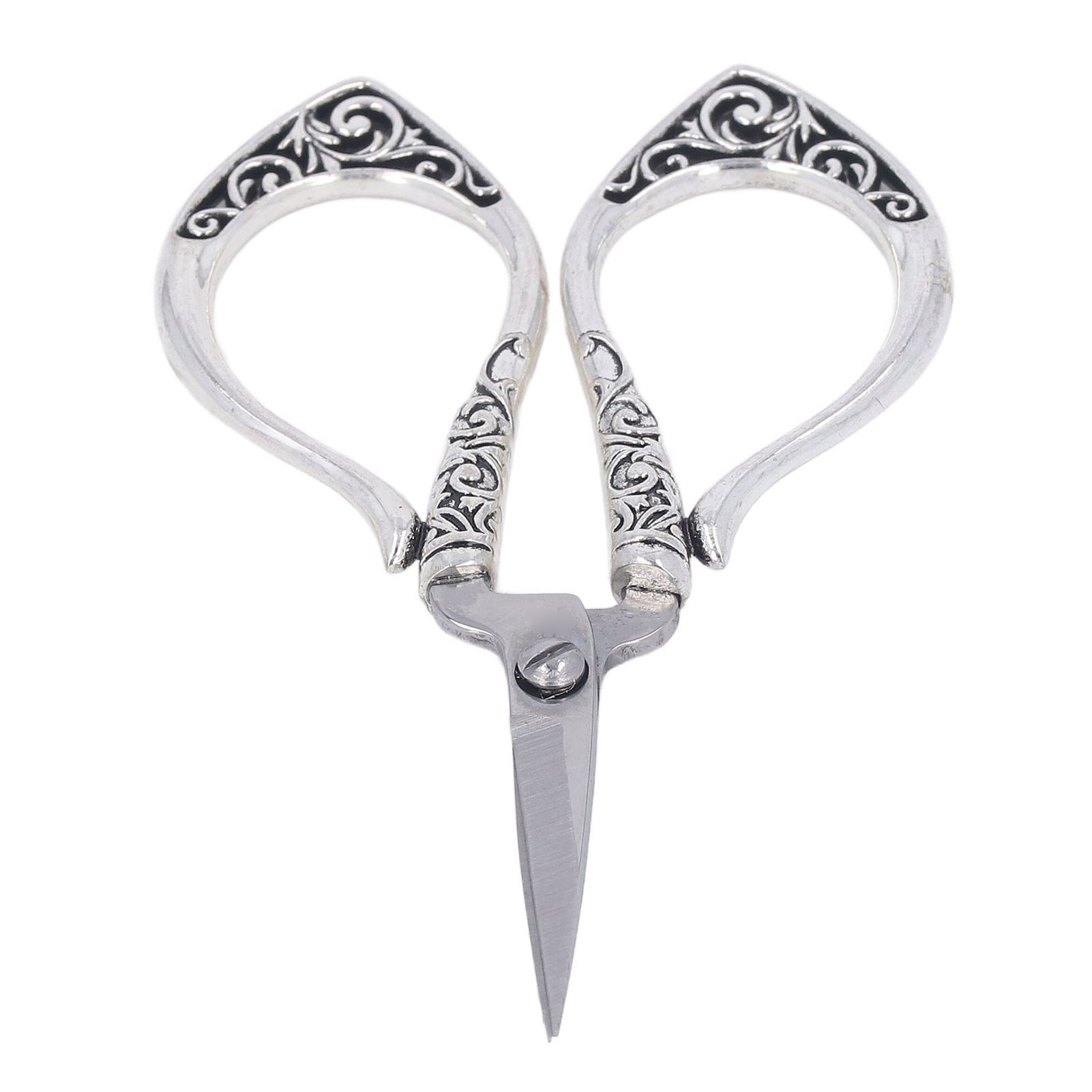 Sewing Scissors Portable Stainless Steel Ergonomic Design DIY Embossed Pattern Silvery Embroidery Scissors for Crafts
