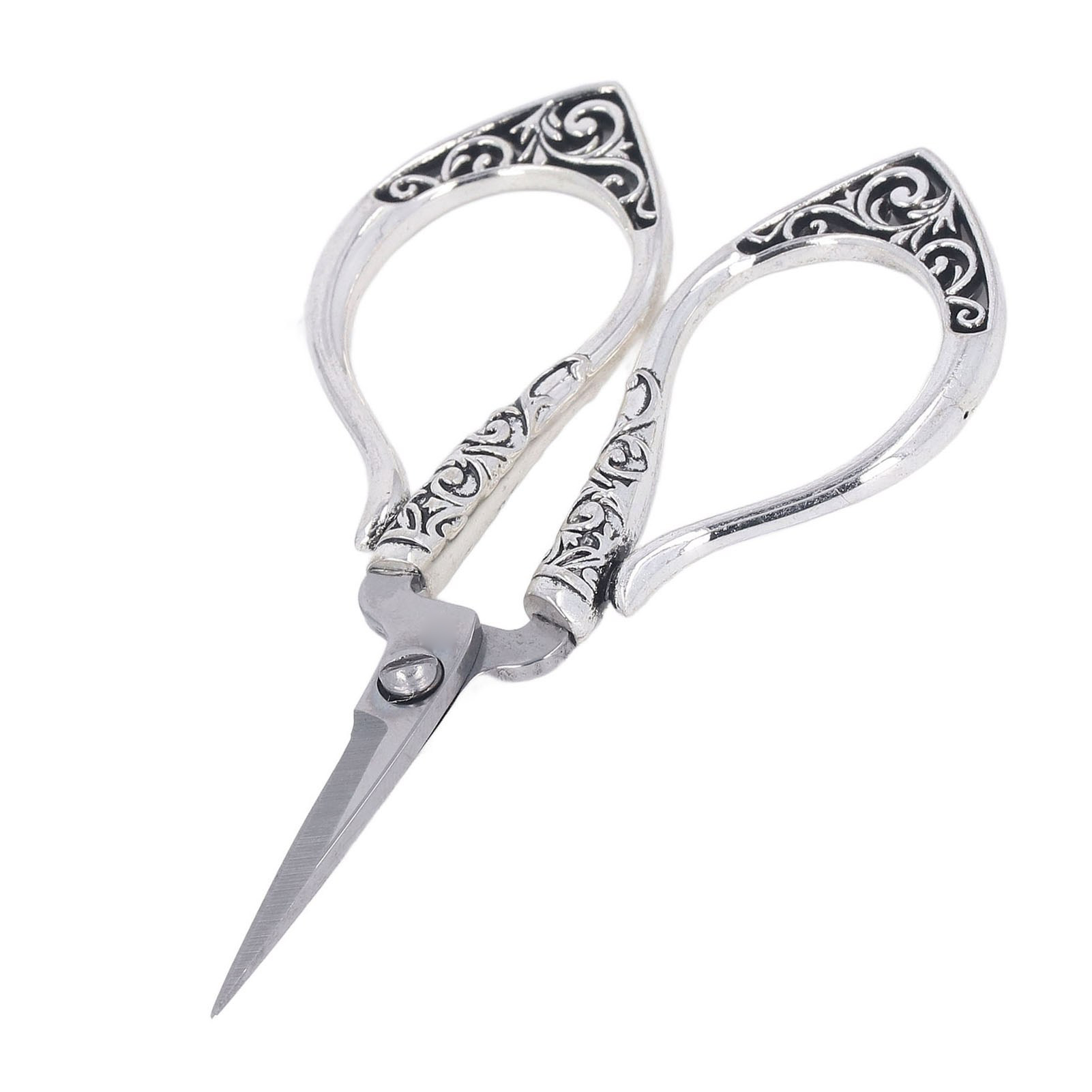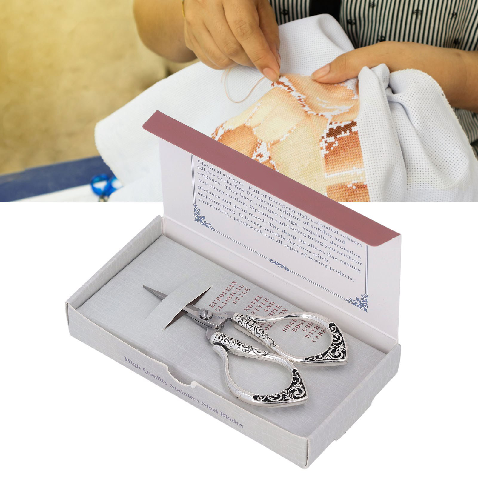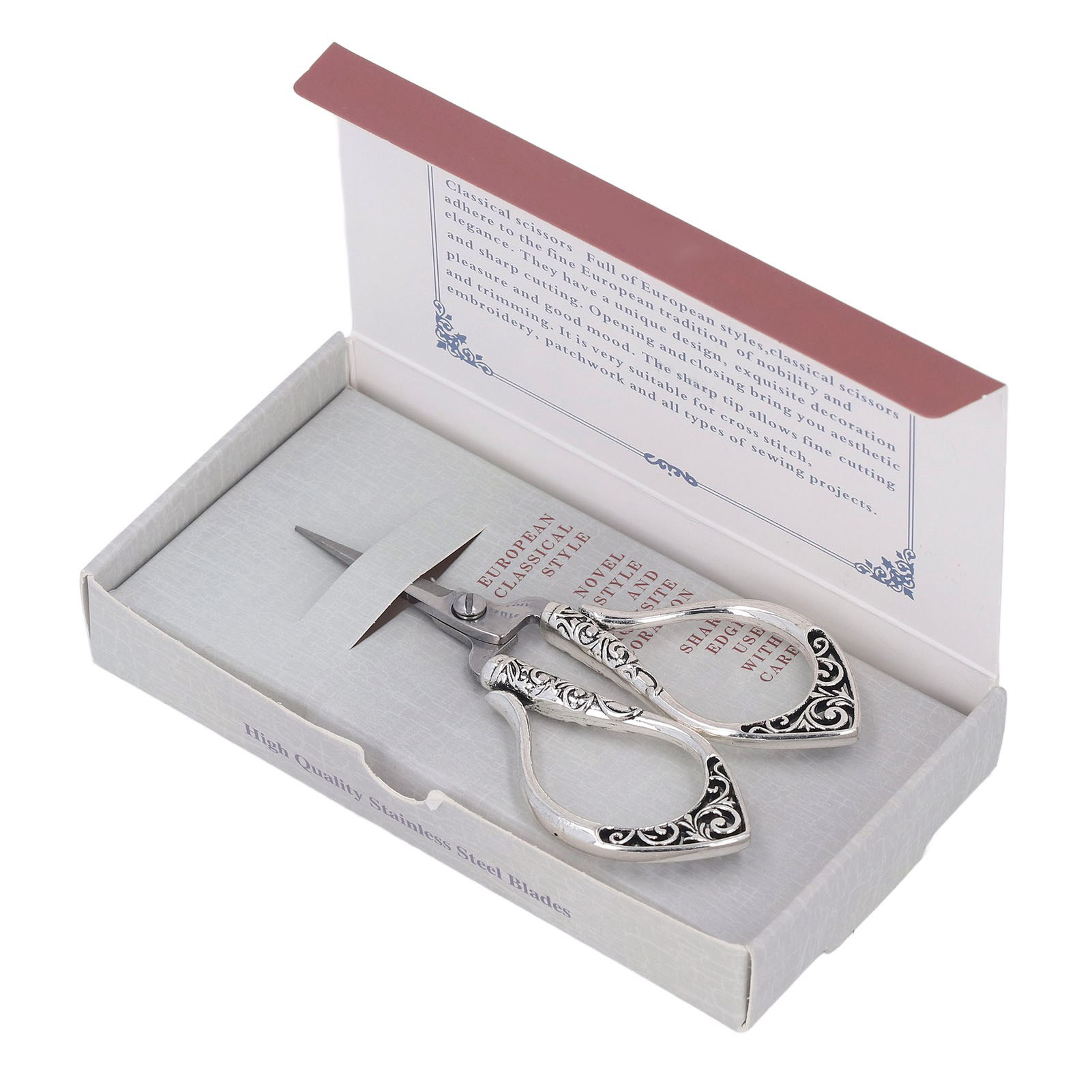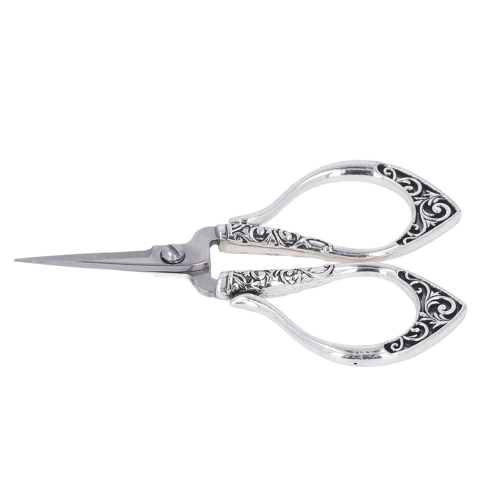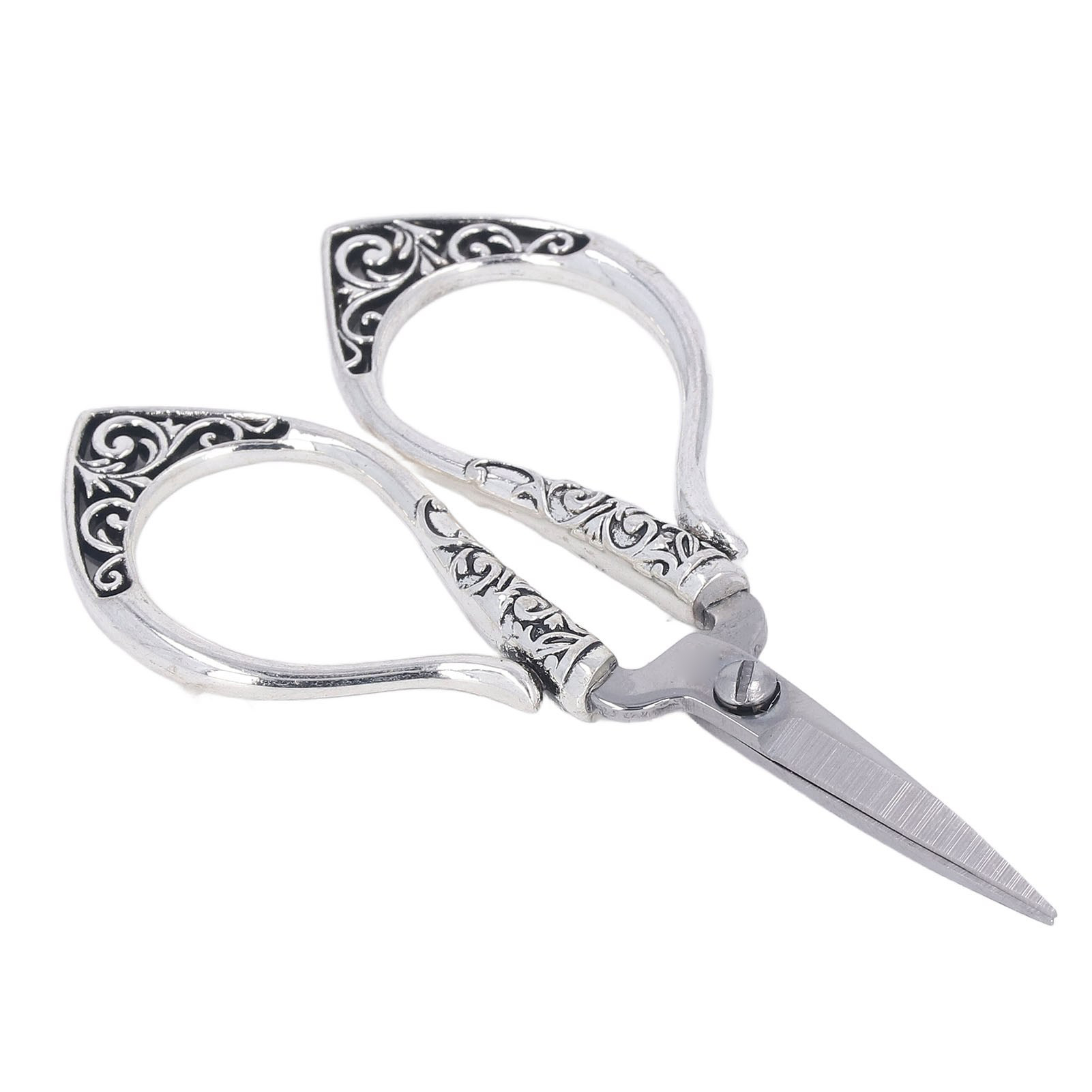 Sewing Scissors Portable Stainless Steel Ergonomic Design DIY Embossed Pattern Silvery Embroidery Scissors for Crafts