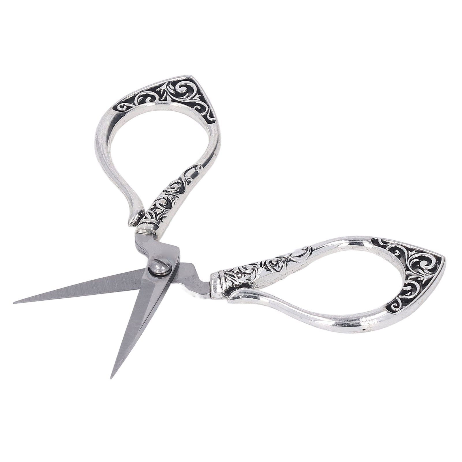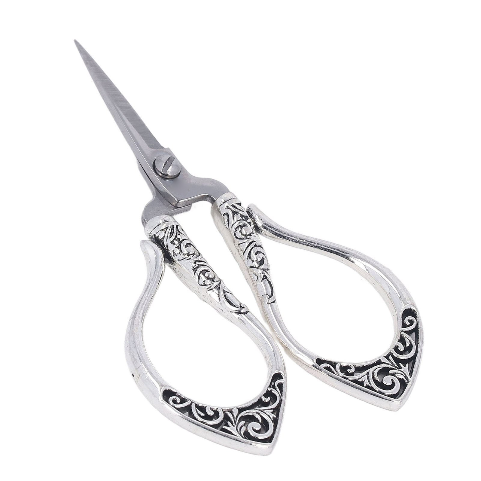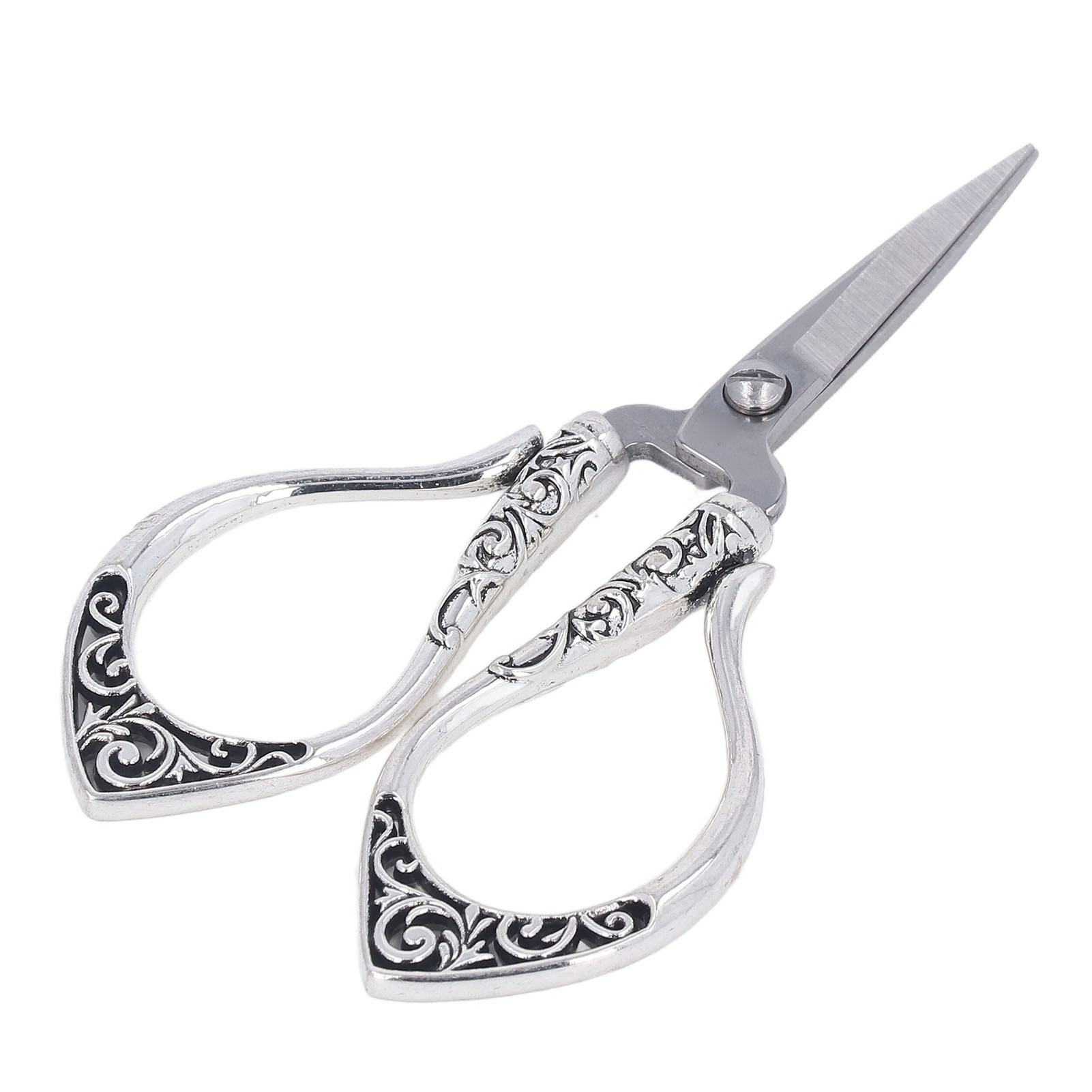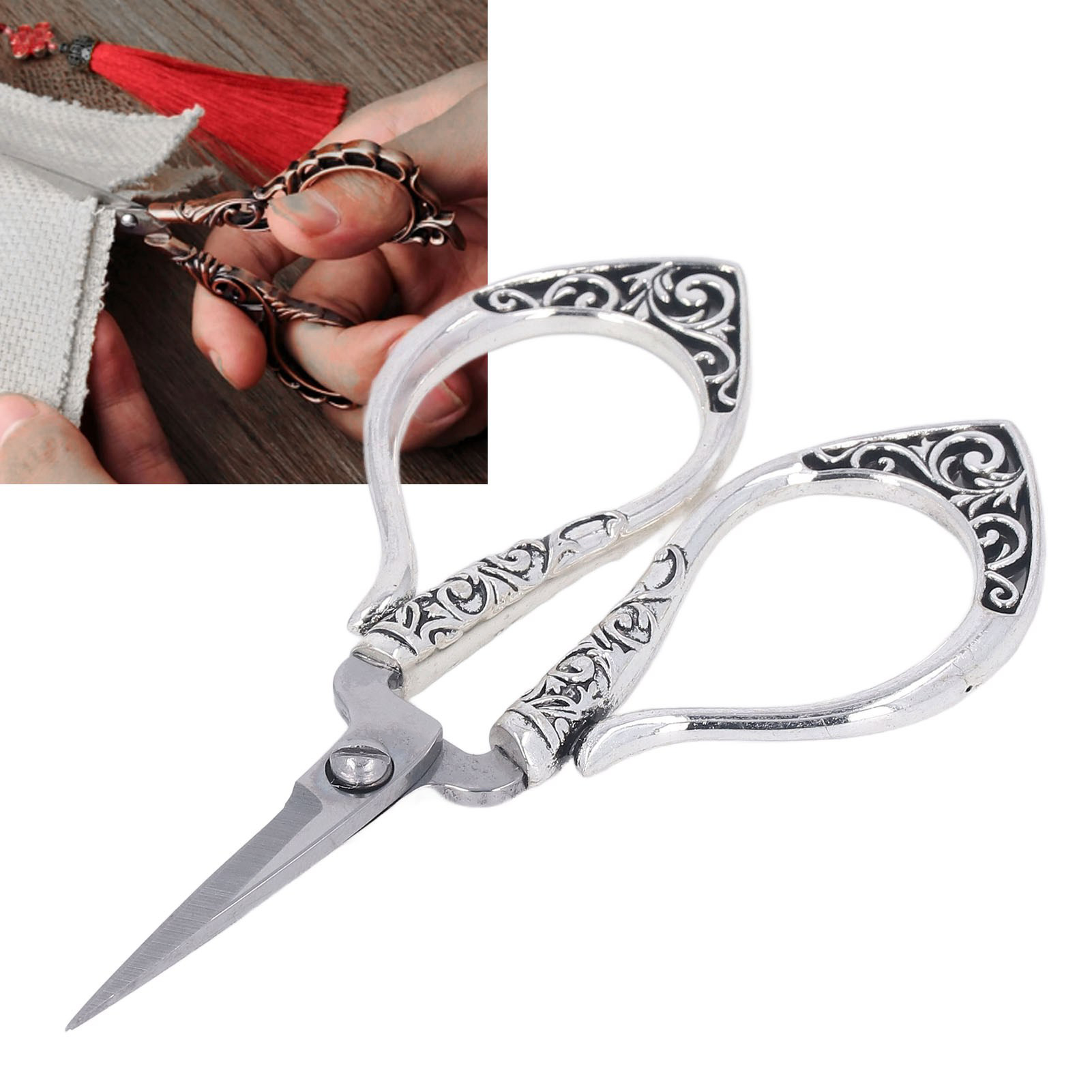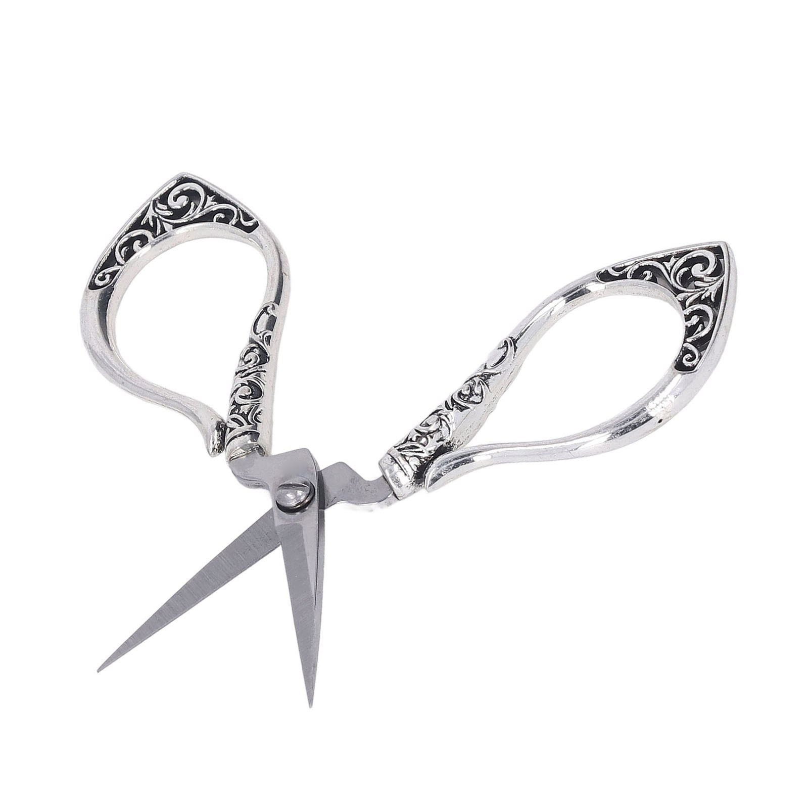 Sewing Scissors Portable Stainless Steel Ergonomic Design DIY Embossed Pattern Silvery Embroidery Scissors for Crafts