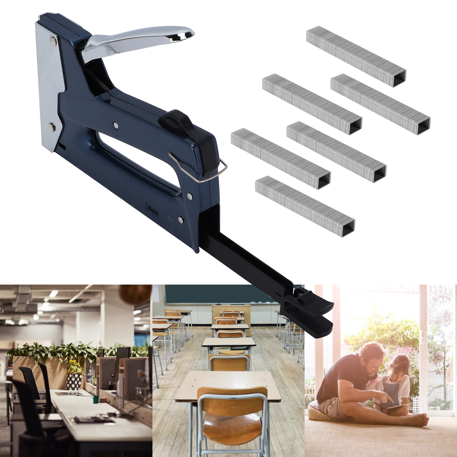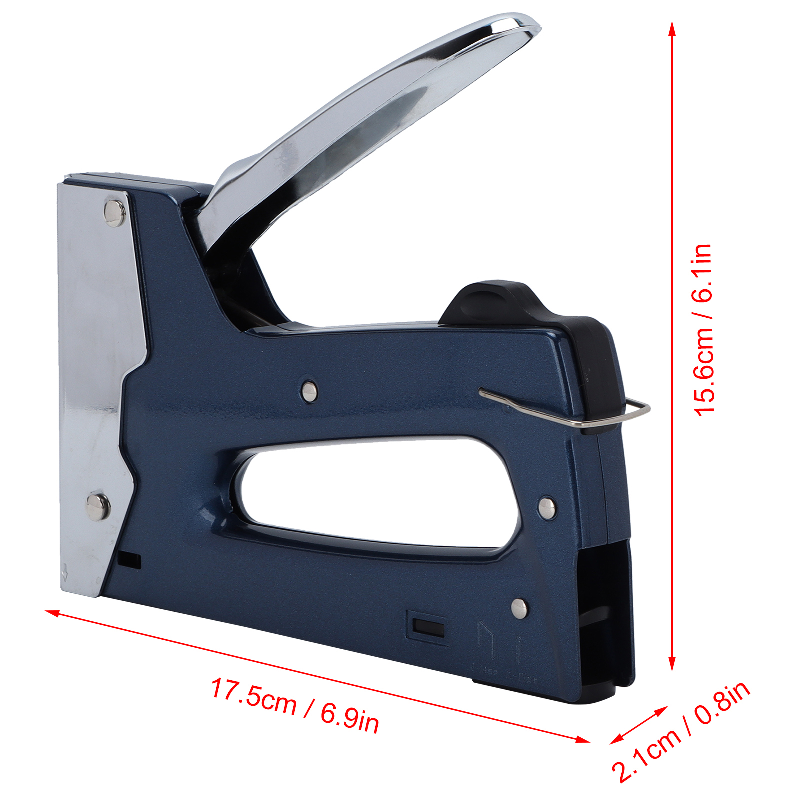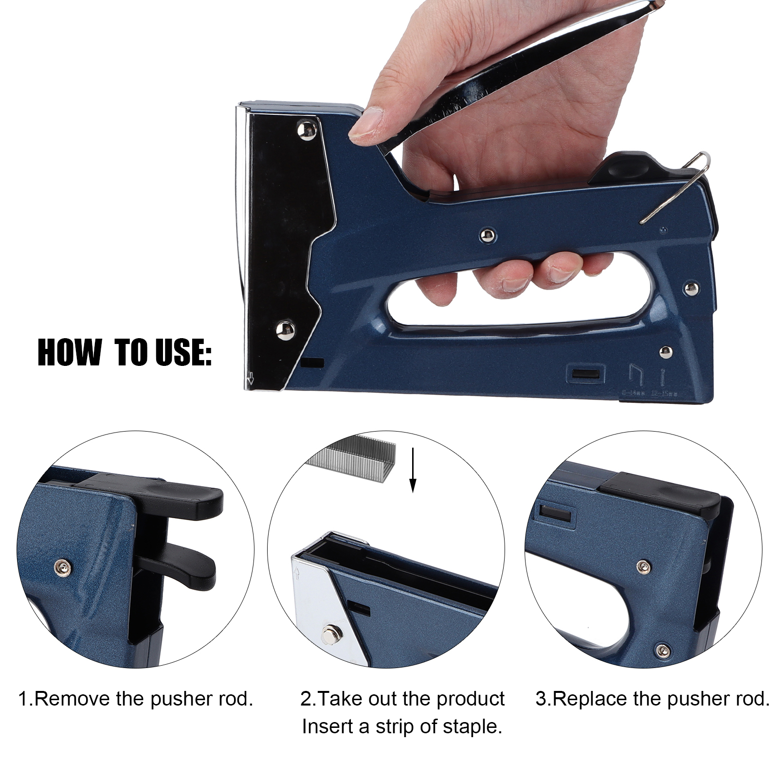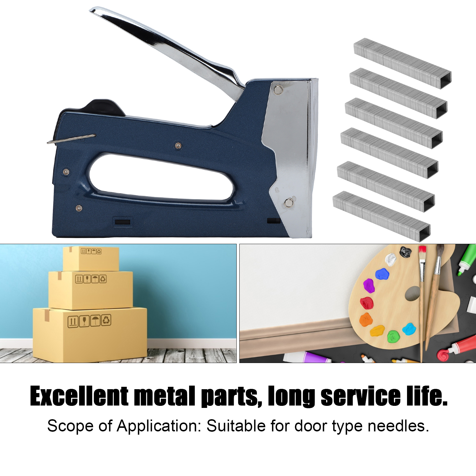 1、Wide range of uses, can be used for heavy staple, light staple, cable staple. 2、The nail gun is ergonomically designed, easy to use, and the lever is labor‑saving. 3、With strong practicability, the staple gun is suitable for nailing oil painting frames, cartons, etc. 4、It is convenient to install and disassemble the stapler, and is equipped with a safety lock to ensure your safety. 5、The end of the nail gun has a nail removal function, which can directly remove the nails.