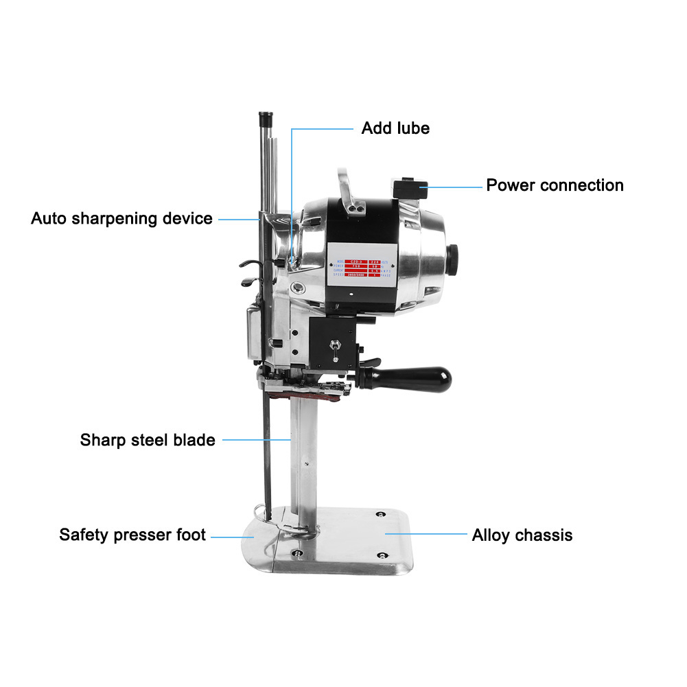 1、Automatic knife sharpening design, effectively prolong the service life of knife and improve cutting efficiency. 2、Built-in full copper motor provides strong power, smooth running and low noise. 3、Aluminum alloy outer case ensures fast heat dissipation of the motor when running. 4、Alloy chassis makes the machine run more stably. 5、Suitable for various fabrics such as cotton, linen, leather, cowboy, silk, canvas, chemical fiber, etc.
