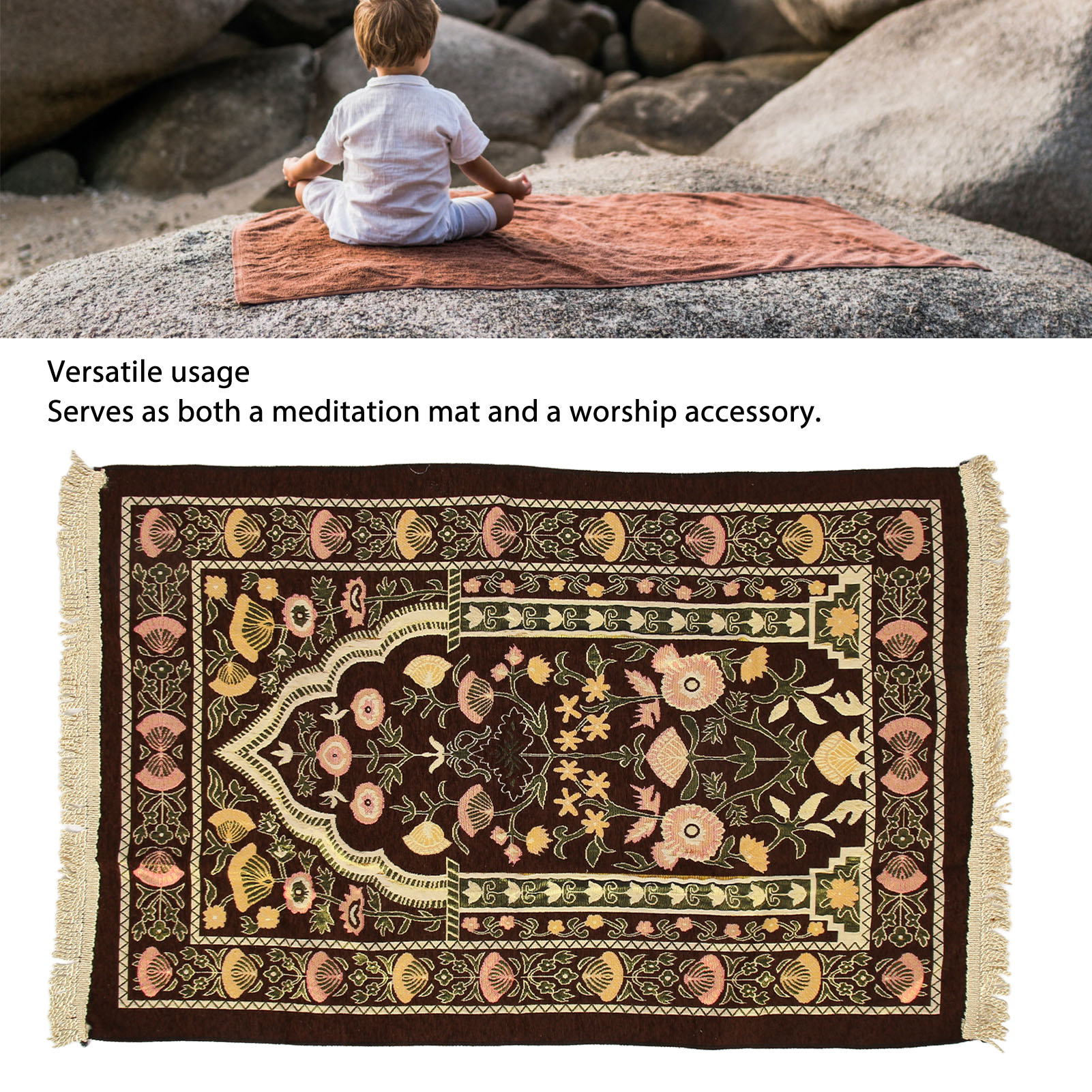 1、[Versatile Usage]: The tassel pilgrimage blanket serves as both a meditation mat and a worship accessory, with unique design and captivating colors, providing delightful visual experience, making your holidays unforgettable and enjoyable. 2、[With Carrying Bag]: The tassel prayer rug comes with a convenient carrying bag, allowing you to easily carry wherever you go, ensuring hassle free storage and portability, perfect for travel and outdoor activities. 3、[Chenille Fabric]: Crafted from premium chenille fabric, the prayer carpet is designed to withstand years of use, and the durable construction ensures that can withstand daily use and prayers. 4、[Wide Application]: The prayer rug can be used in various settings, such as placing on computer chairs, coffee tables, dining tables, bedrooms, study rooms, beds, hallways, windowsills, or entrance halls. 5、[Comfortable and Cozy]: The tassel pilgrimage carpet offers a comfortable and cozy experience, the soft and plush texture provides a warm touch, allowing you to relax during meditation sessions or prayer rituals.