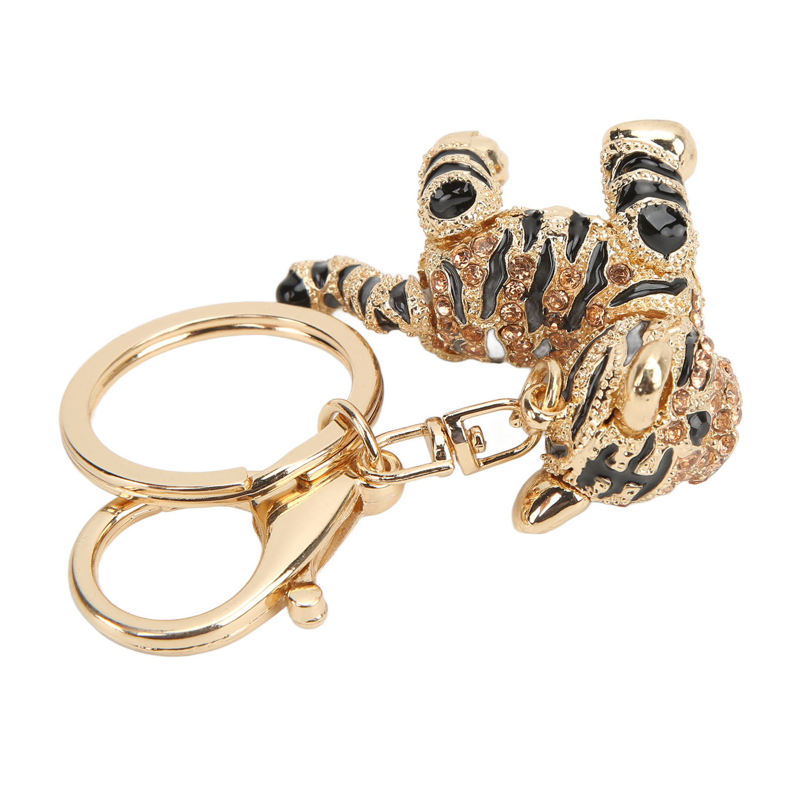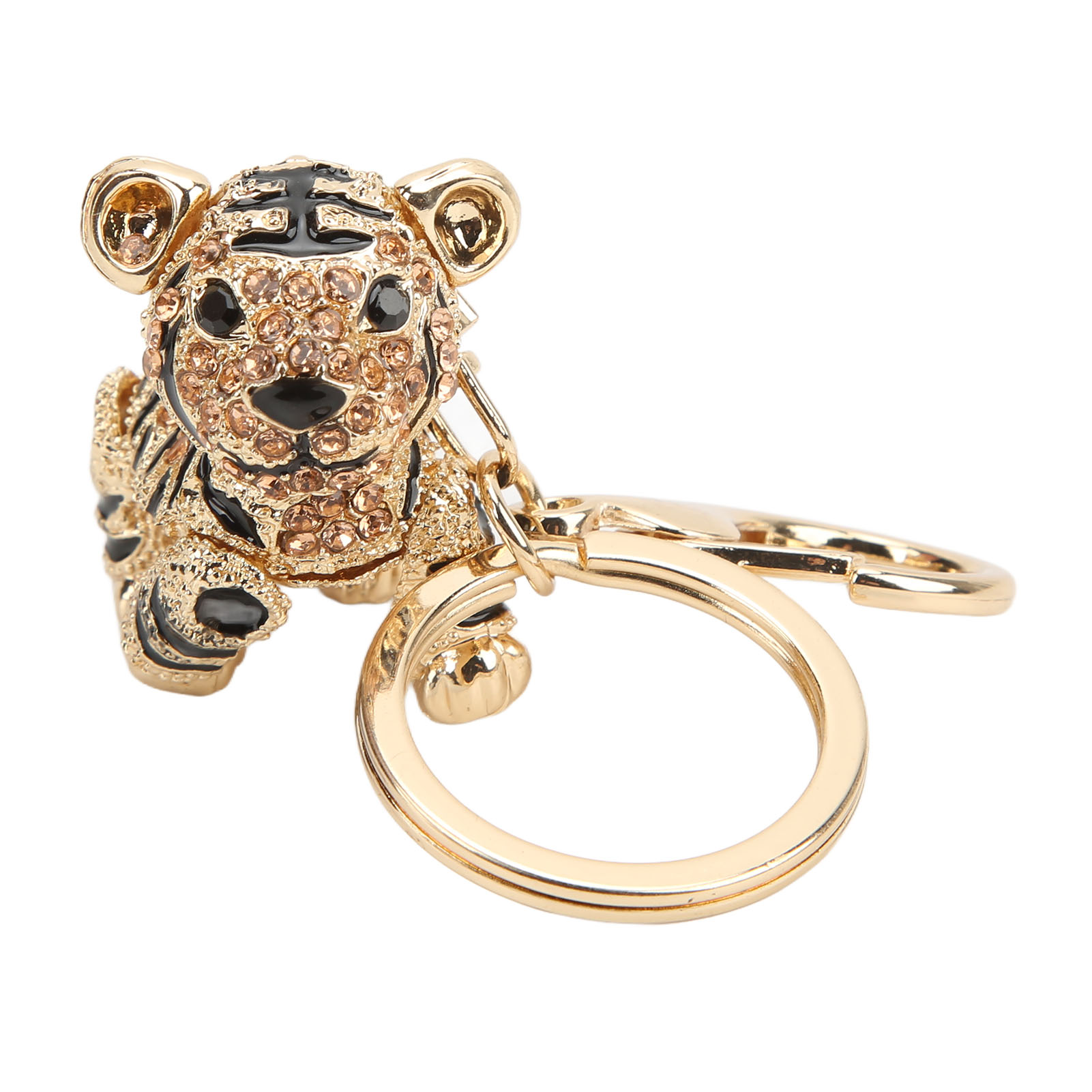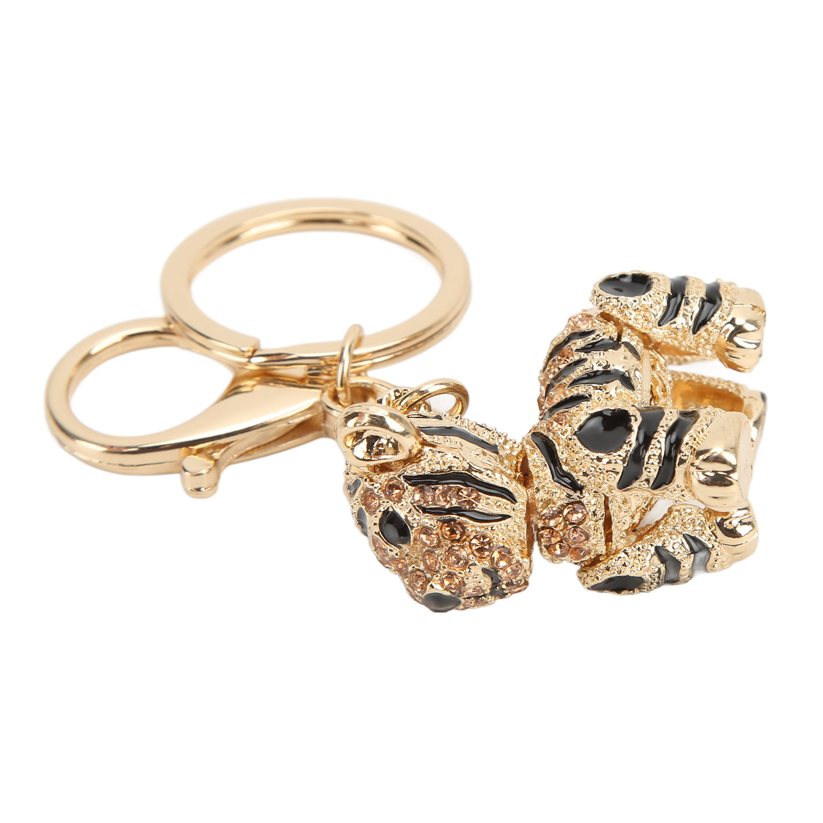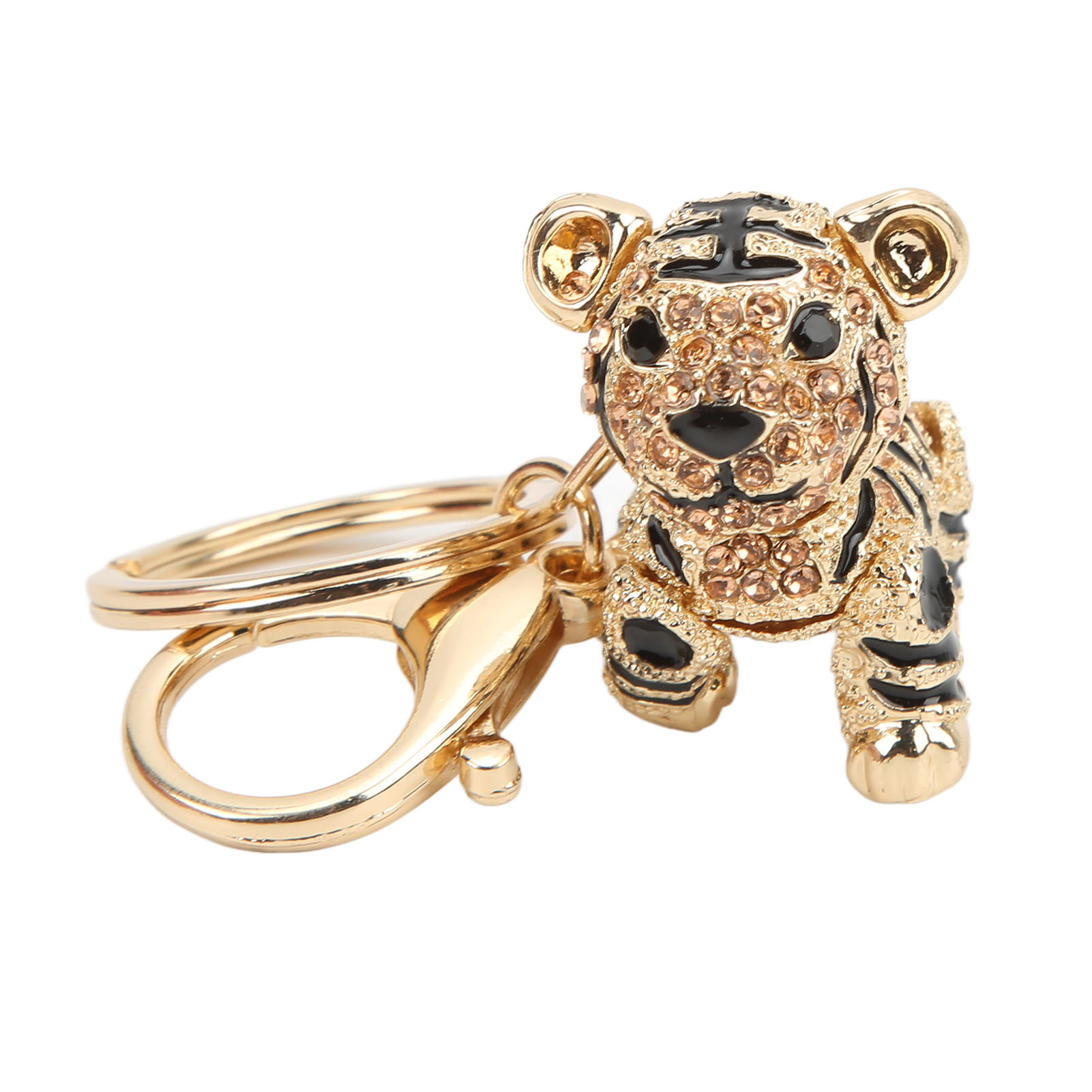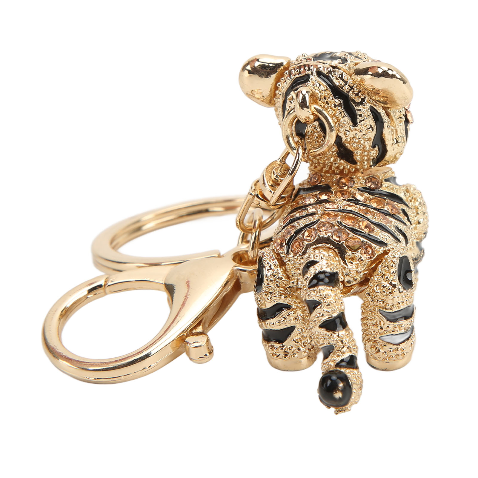 Tiger Keychain Three Dimensional Small Tiger Rhinestone Car Keychain Ladies Bag Ornaments PendantChampagne