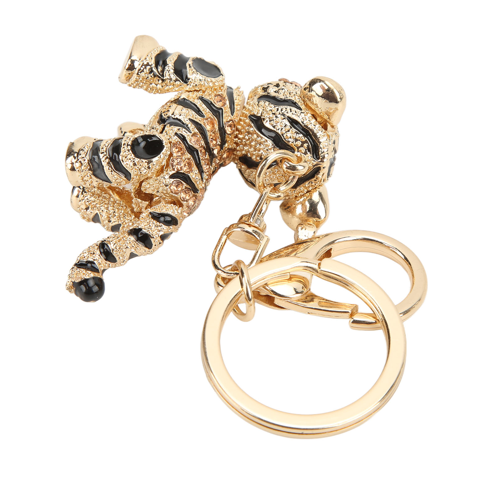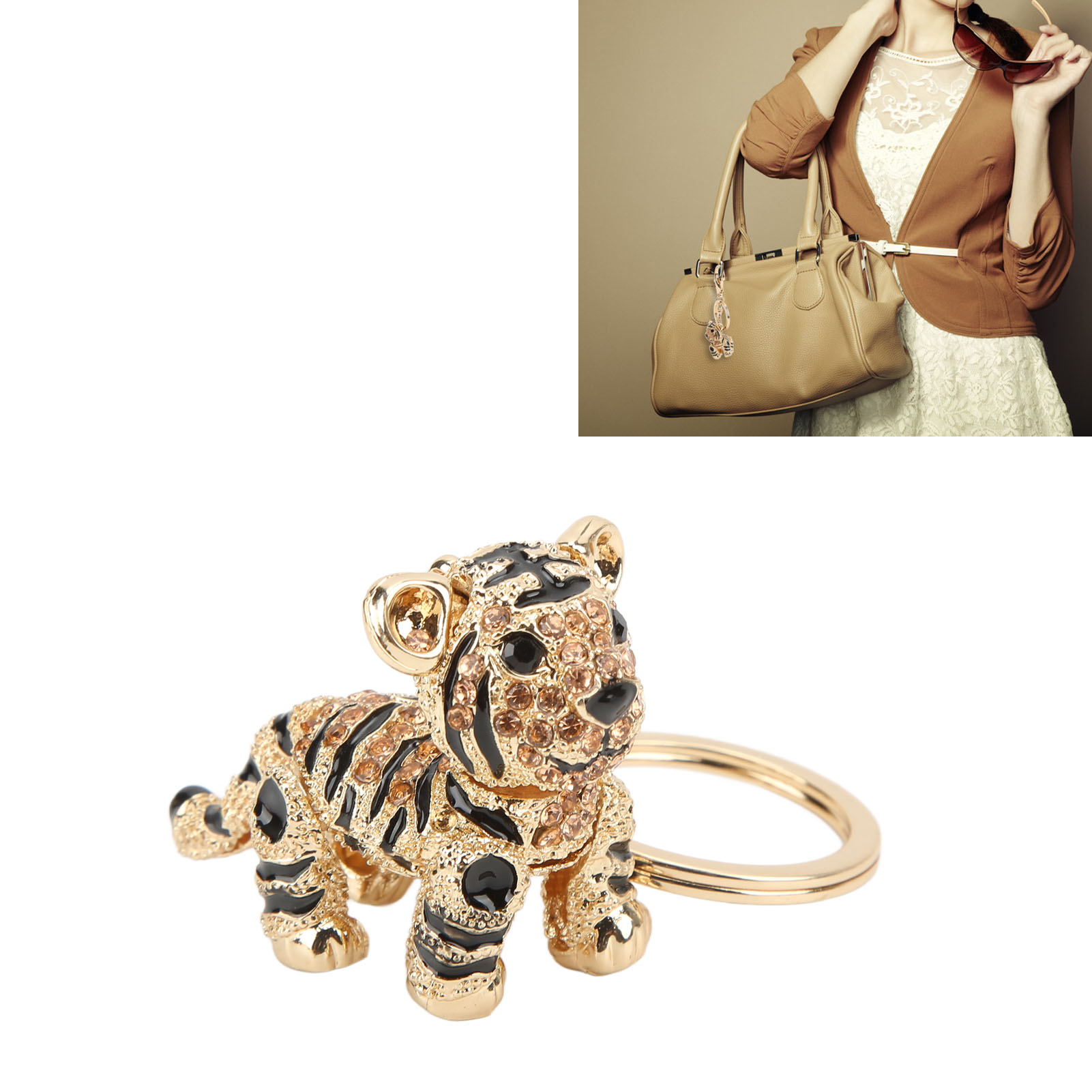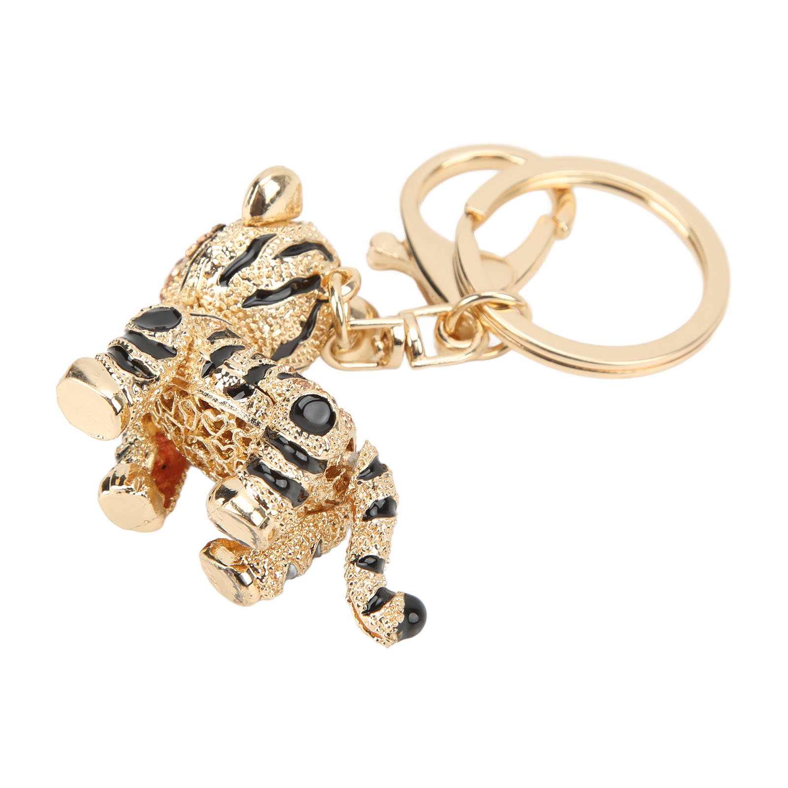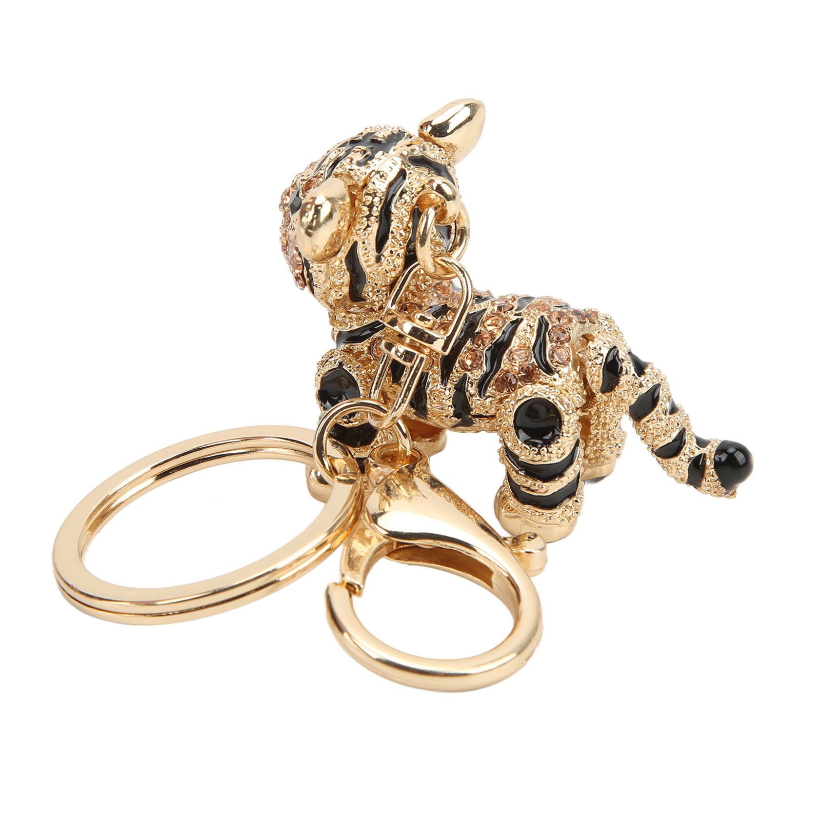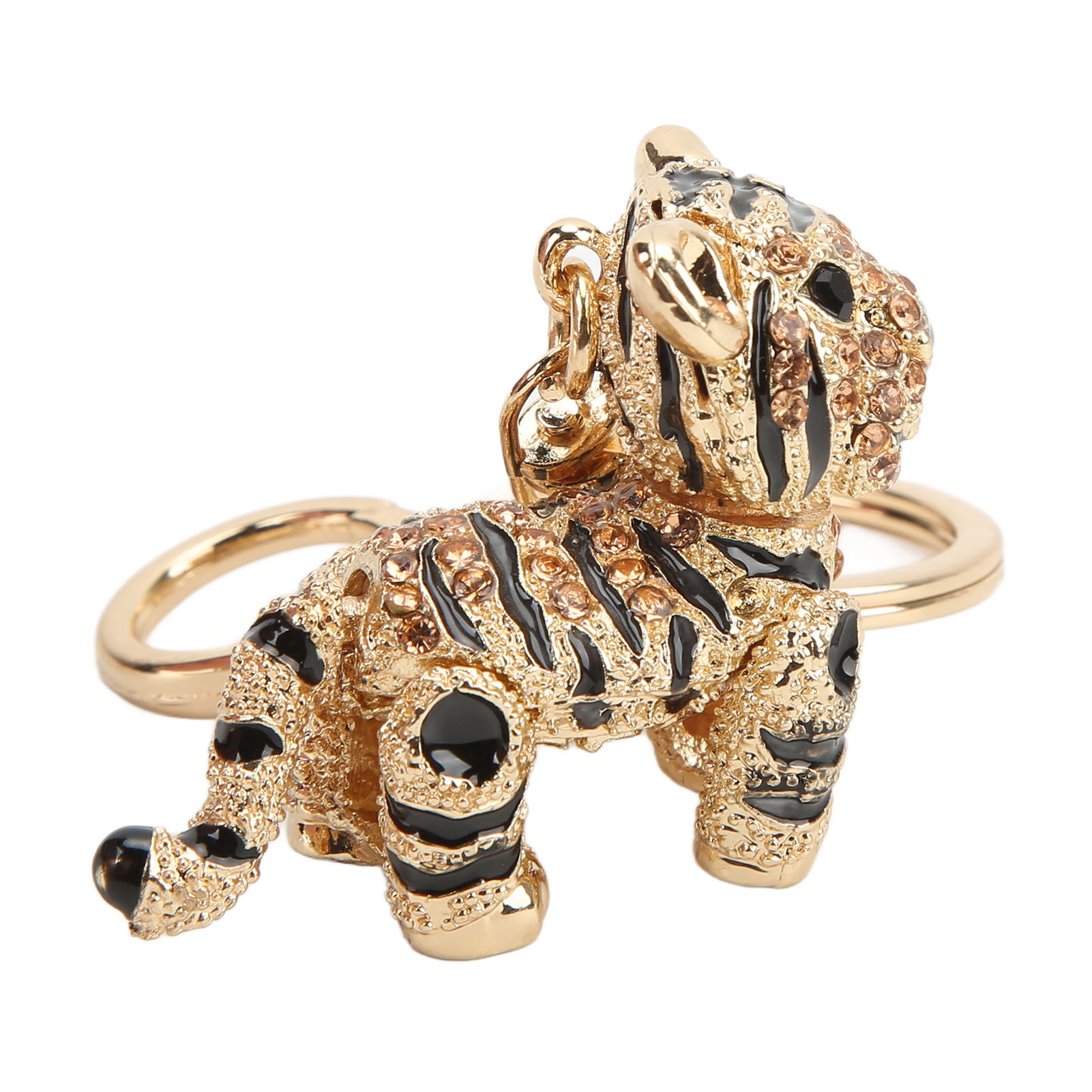 Tiger Keychain Three Dimensional Small Tiger Rhinestone Car Keychain Ladies Bag Ornaments PendantChampagne