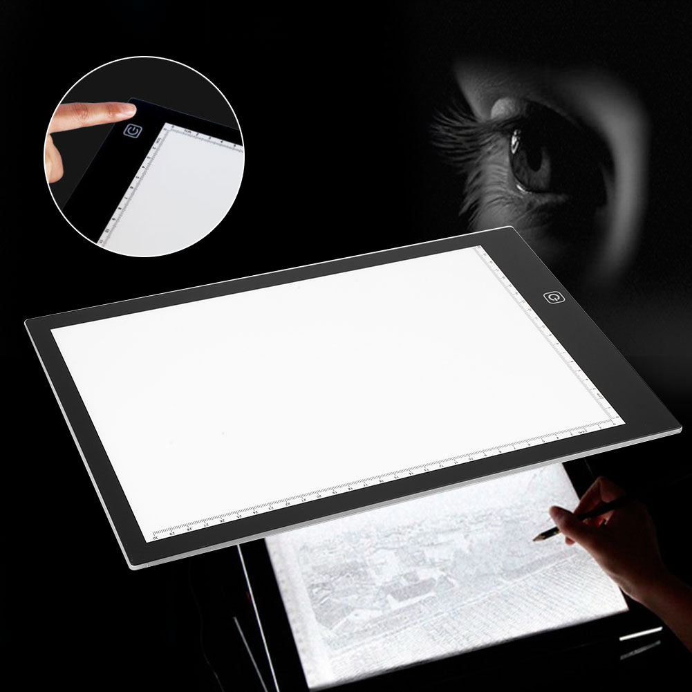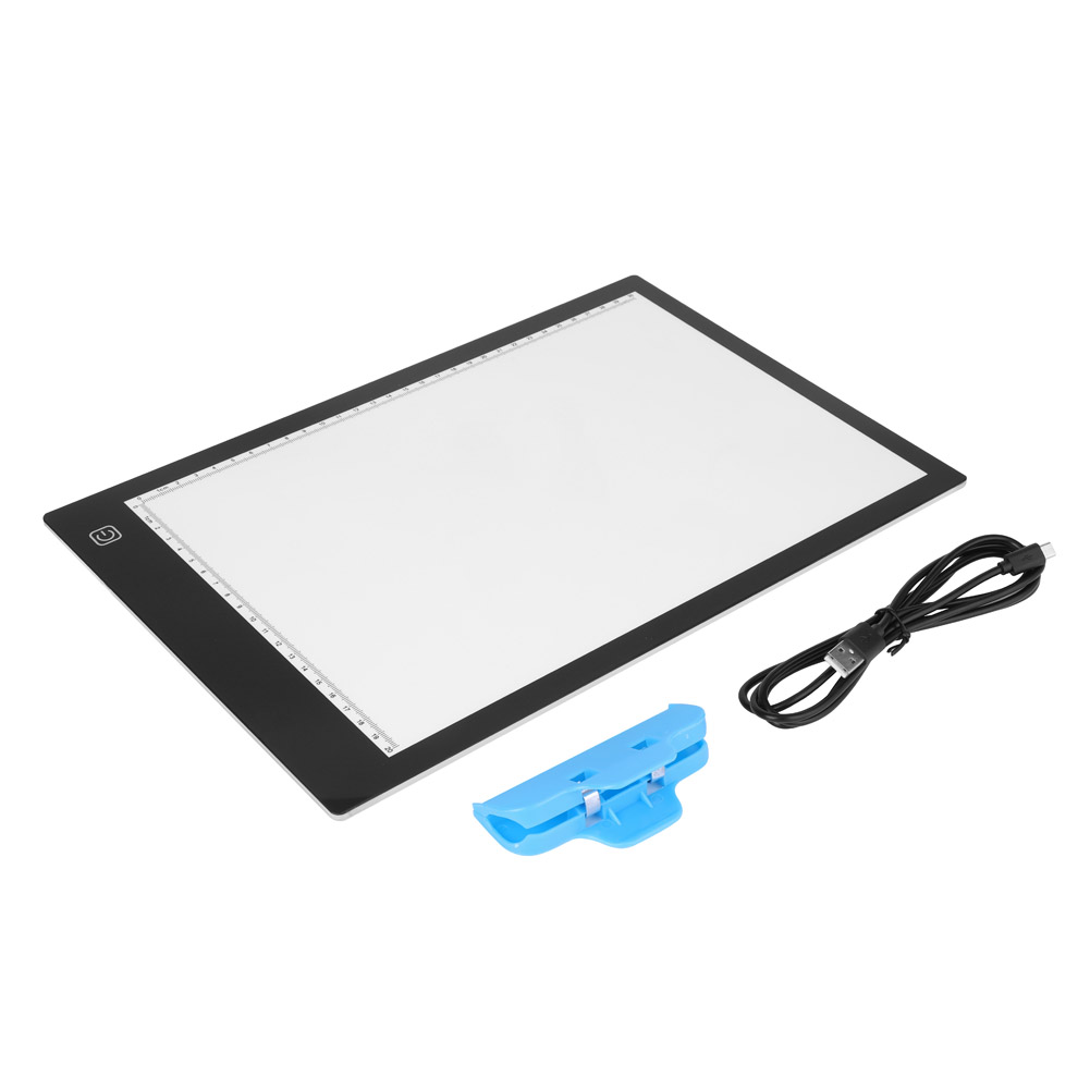1、Produces bright and white light. 2、Ultra Slim - just 8mm thick. 3、Integral Printed Ruler Guides along the left and top edges. 4、Document clamp to hold your work in place. 5、Ideal for art, crafts, design, drawing, stenciling, tattoo and photo work ect.