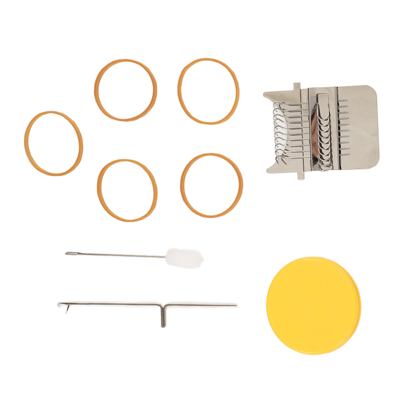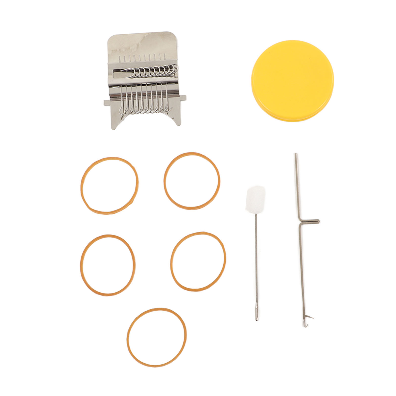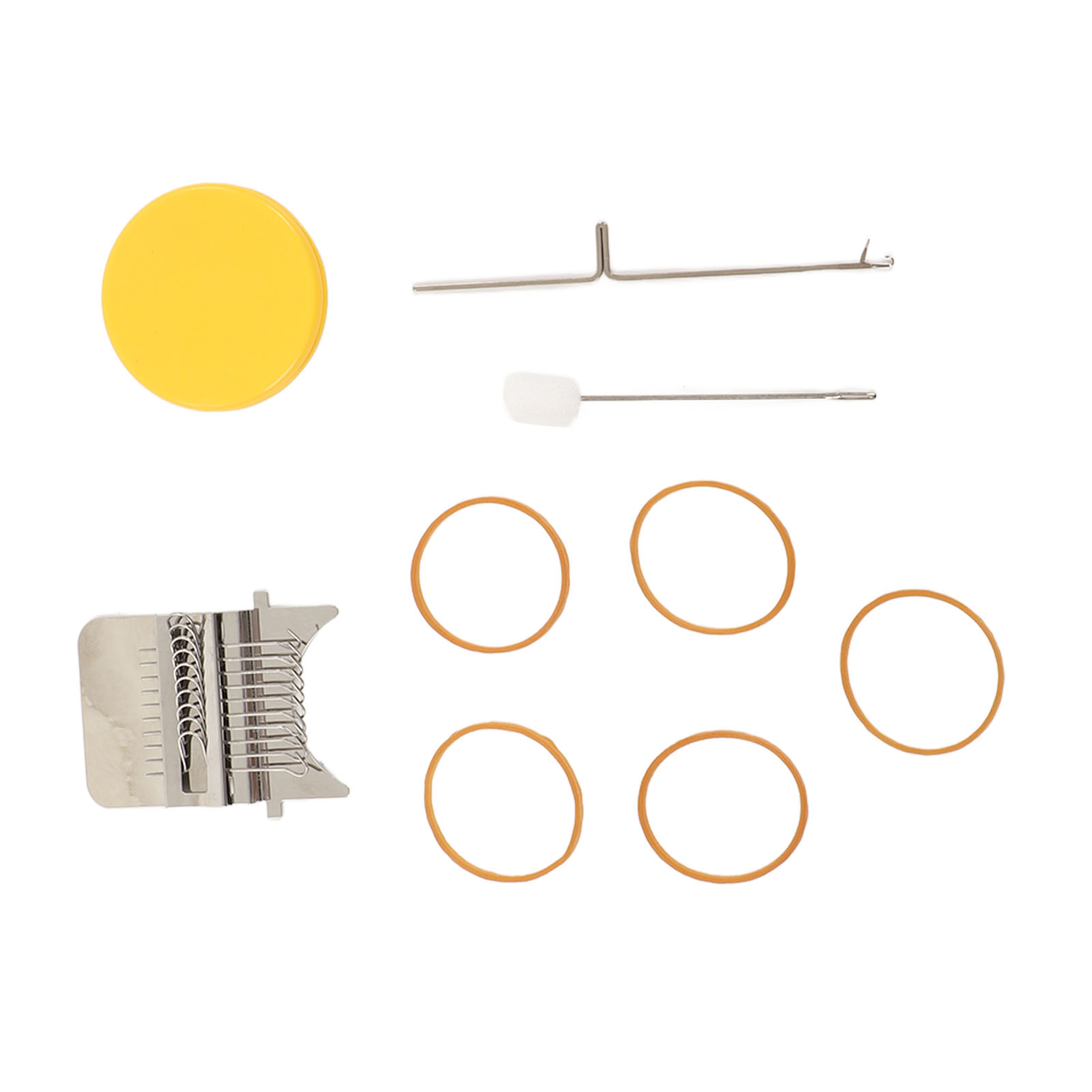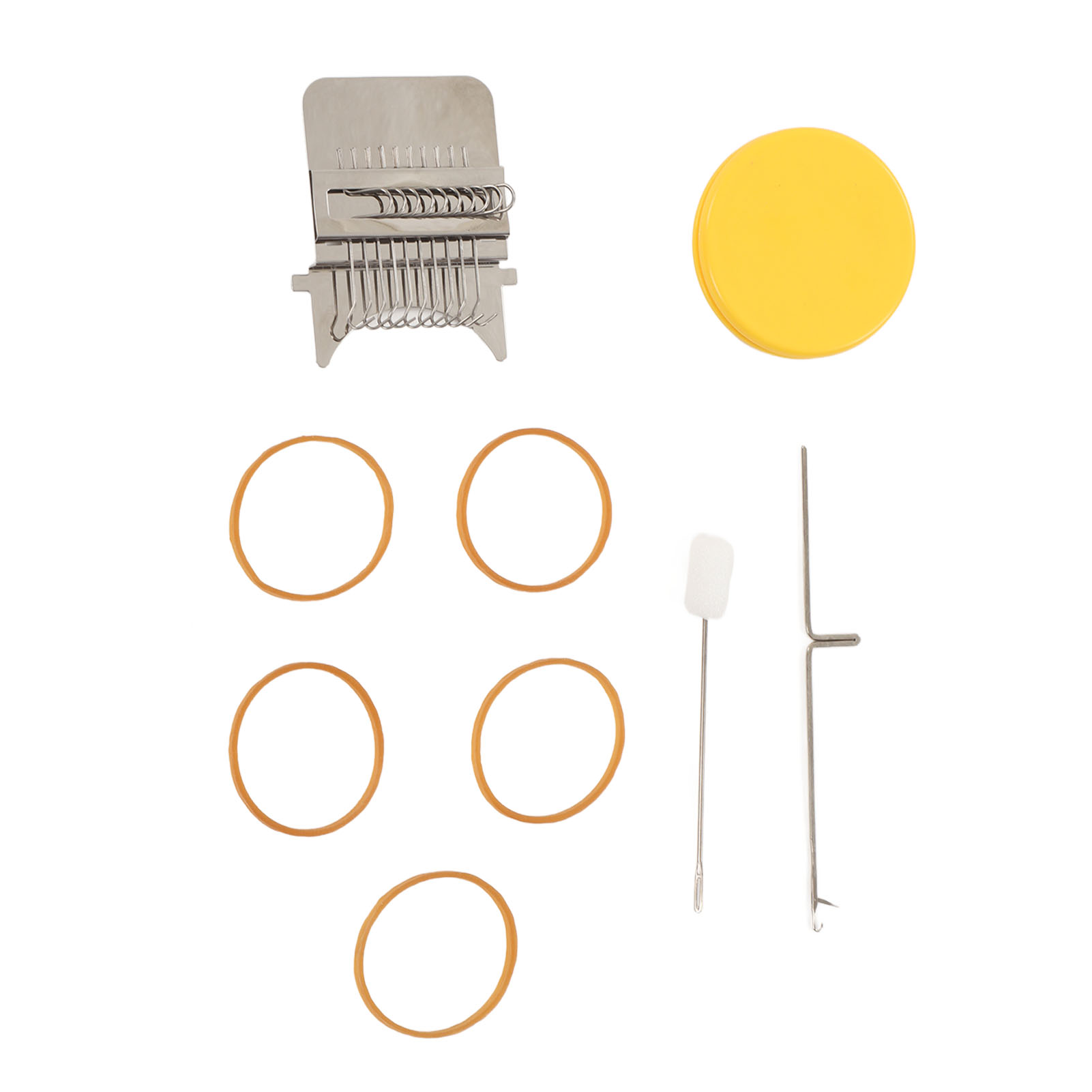 1、Accessories Included: Uniquely designed, high speed knitting alarm machine consists of two parts metal strap hook and a plastic disc, the parts are connected to each other by durable rubber bands, including loom picking tool and needle, you can create patterns in the design. 2、DIY Sewing: This cautionary mini loom can repair small holes in clothes and you can create various patterns in your designs. 3、Easy to Use: Easy to use, just stretch the fabric onto the tool, use a rubber band to hold the fabric and loom in place, unfold your warp and plait, the small trimmer makes your sewing easier and more convenient. 4、Scope of Application: DIY darning tool can be used to mend jean, socks and clothes, and can also plait tapestries, carpets, scarves, etc. 5、Perfect Gift: The knitting action improves hand eye coordination and concentration, great for art governors and design programs, a great choice for giving a quick warning tool as a gift to a friend or family member.