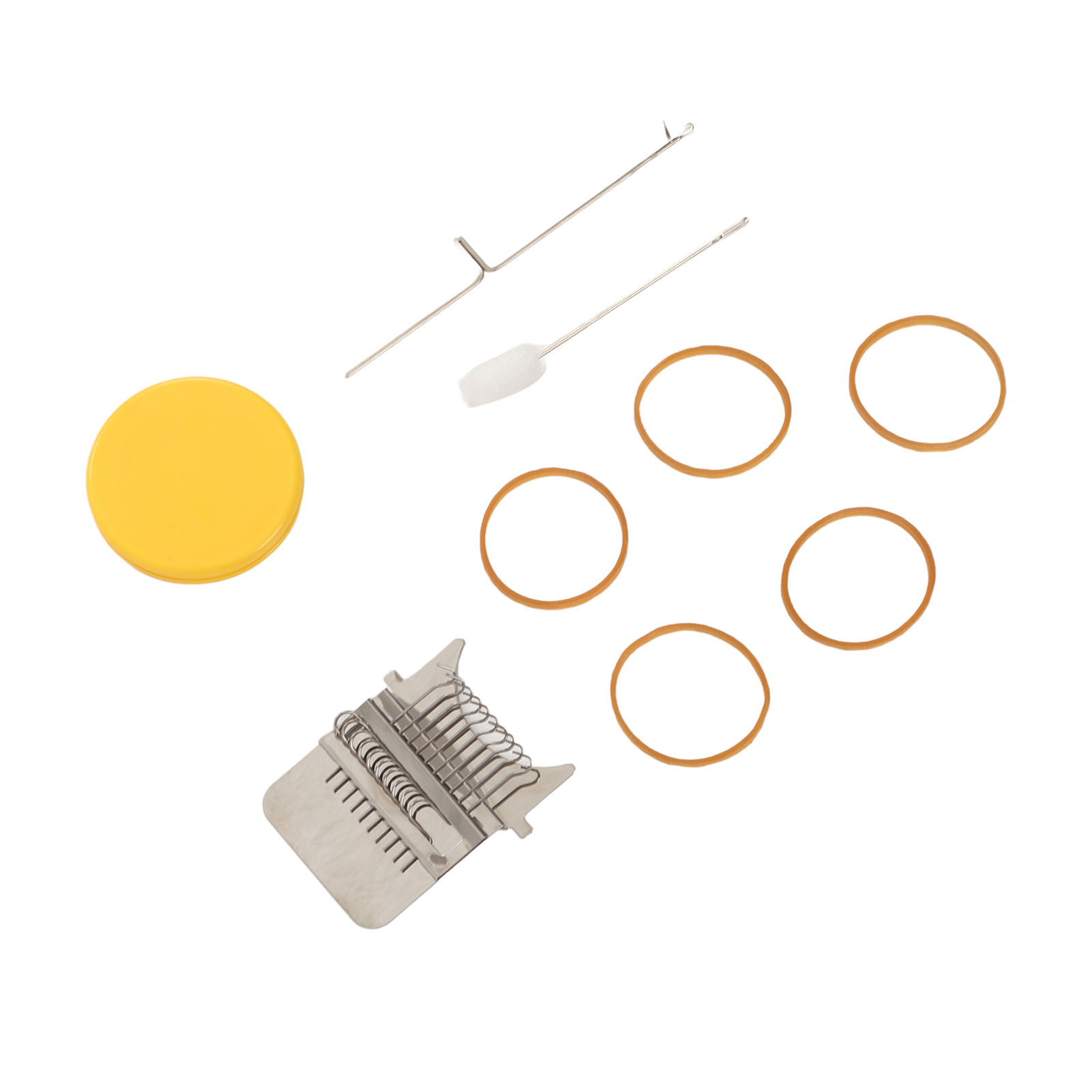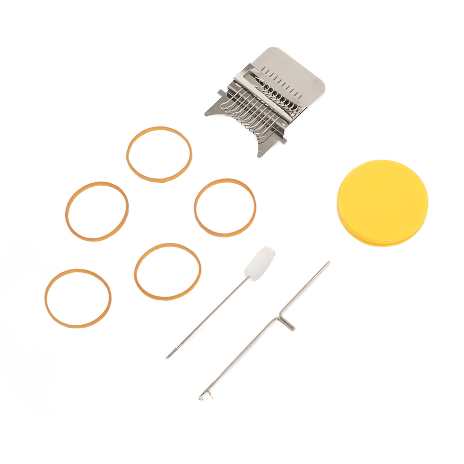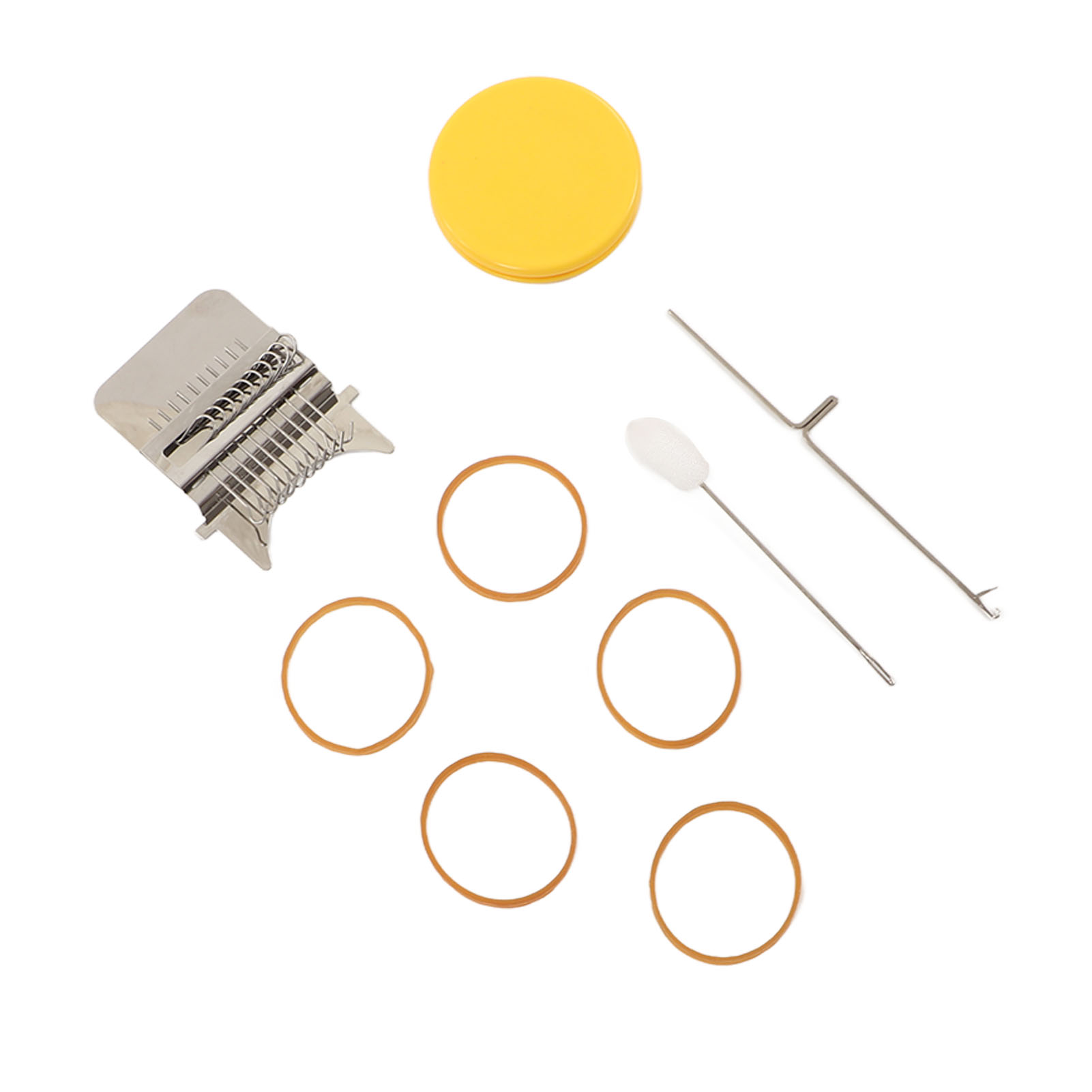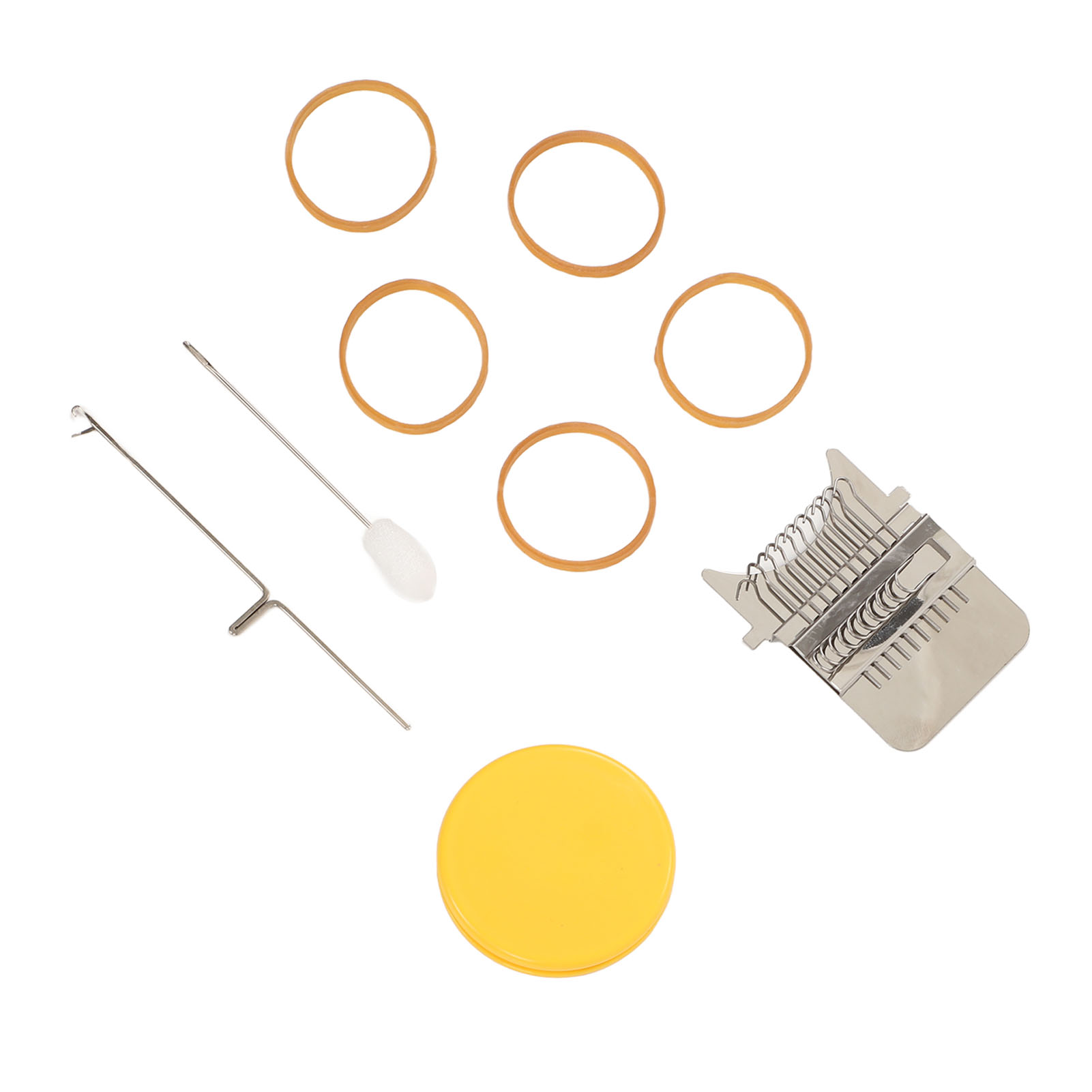 1、Accessories Included: Uniquely designed, high speed knitting alarm machine consists of two parts metal strap hook and a plastic disc, the parts are connected to each other by durable rubber bands, including loom picking tool and needle, you can create patterns in the design. 2、DIY Sewing: This cautionary mini loom can repair small holes in clothes and you can create various patterns in your designs. 3、Easy to Use: Easy to use, just stretch the fabric onto the tool, use a rubber band to hold the fabric and loom in place, unfold your warp and plait, the small trimmer makes your sewing easier and more convenient. 4、Scope of Application: DIY darning tool can be used to mend jean, socks and clothes, and can also plait tapestries, carpets, scarves, etc. 5、Perfect Gift: The knitting action improves hand eye coordination and concentration, great for art governors and design programs, a great choice for giving a quick warning tool as a gift to a friend or family member.