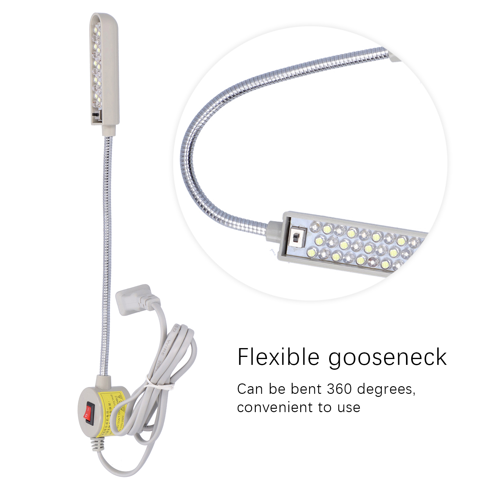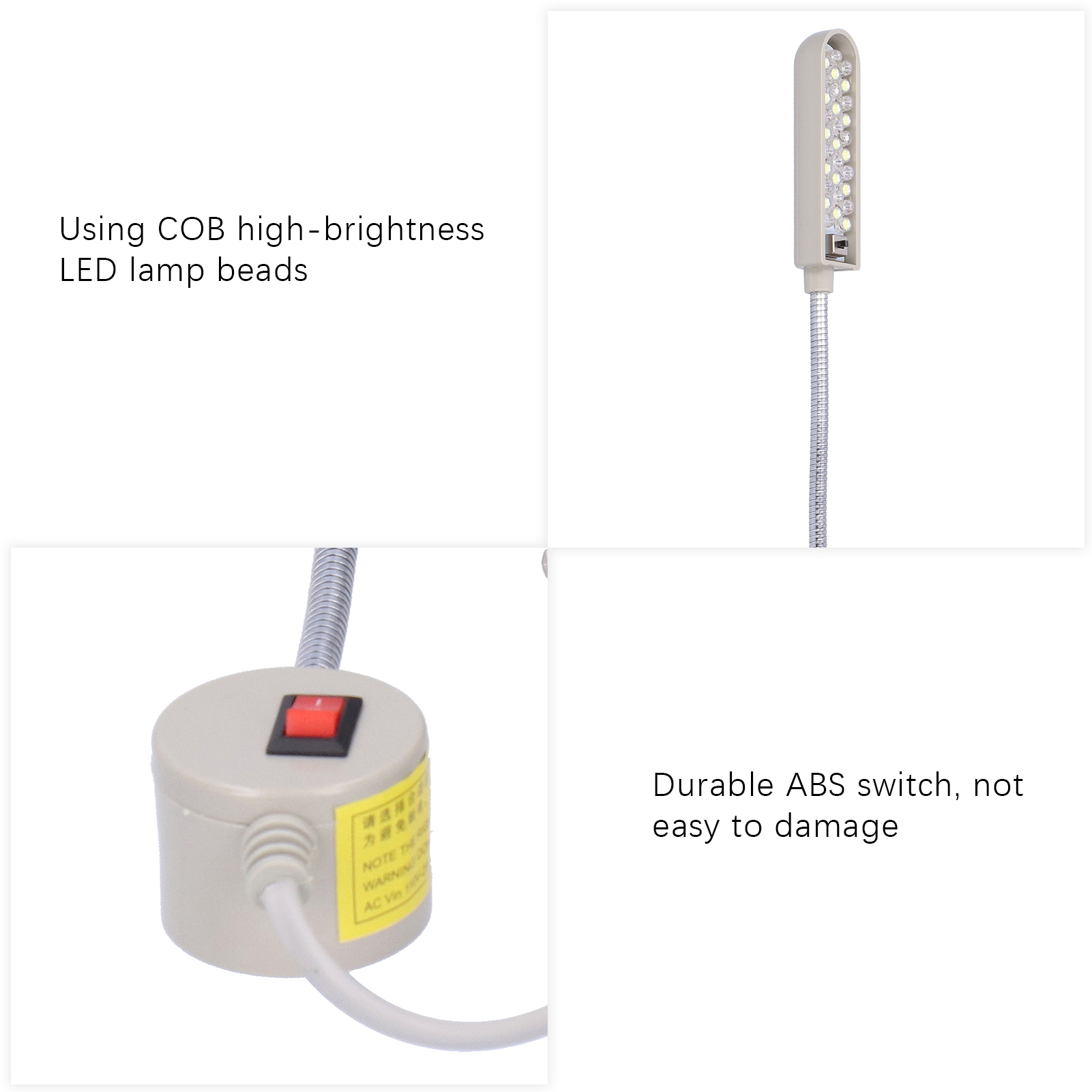 1、Support white color and UV lighting, the two lighting modes can be switched at will by control button. 2、Superior bright lighting, concentrated beam, high efficiency while energy saving, low power consumption, only 1/15 of 40W incandescent lamp. 3、Using COB high‑brightness LED lamp beads, with hose and strong magnetic base, convenient to be fixed. 4、Flexible gooseneck, can be bent 360 degrees, free to adjust the angle of lamp for optimal lighting position. 5、Can improve sewing efficiency, is a good helper for sewing enthusiasts, durable ABS switch, not easy to damage.