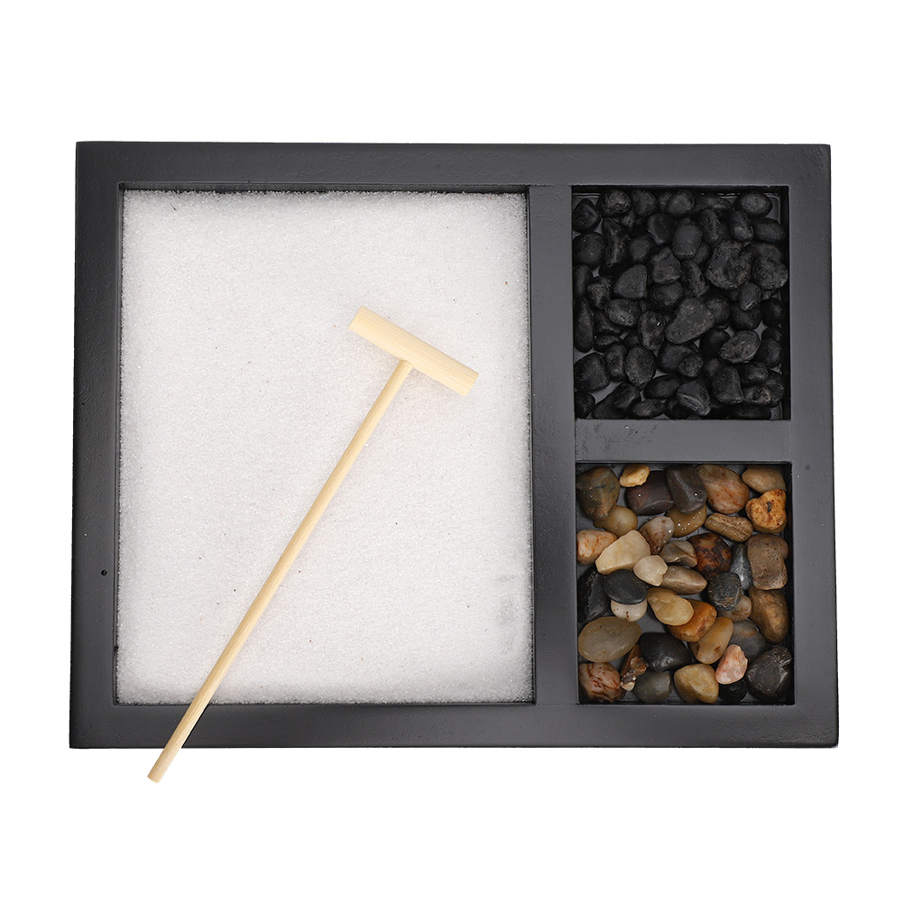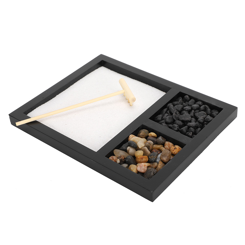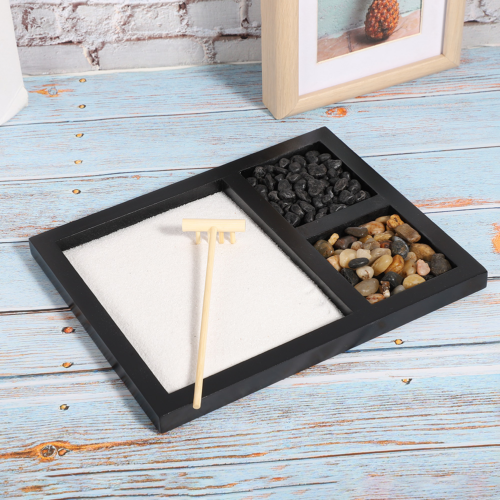 1、Living room tabletop micro-landscape decoration, can be used as geomantic gifts and wedding gifts. 2、Sand represents sea, stones represent mountains, wooden rake can be used to take care of sand table decorations. 3、Beautiful Zen sand tray ornament, suitable for relaxation and meditation, creating an elegant and peaceful ambient. 4、It can be used as a way of meditation to remove all stress, pressure and confusion. 5、Can also be used as handicraft ornaments in homes, shops, hotels, yoga clubs, tea rooms.