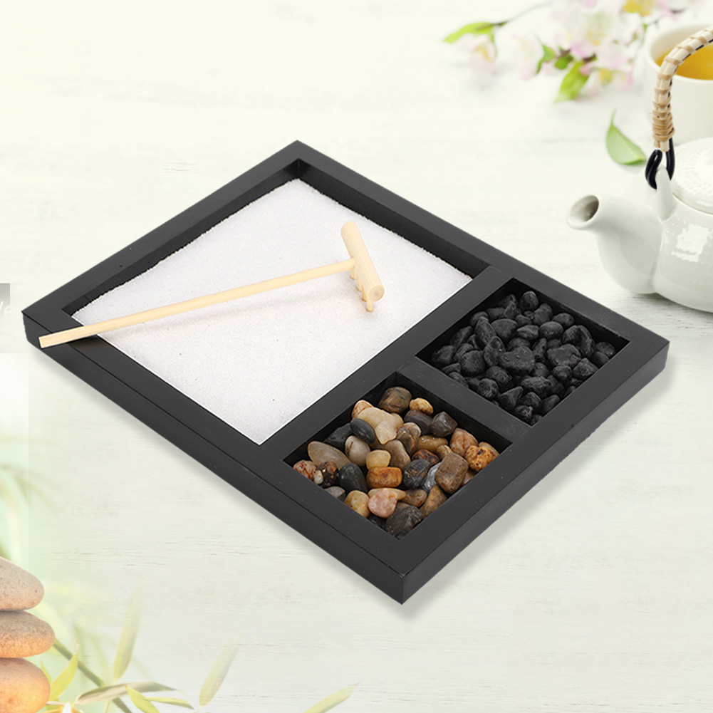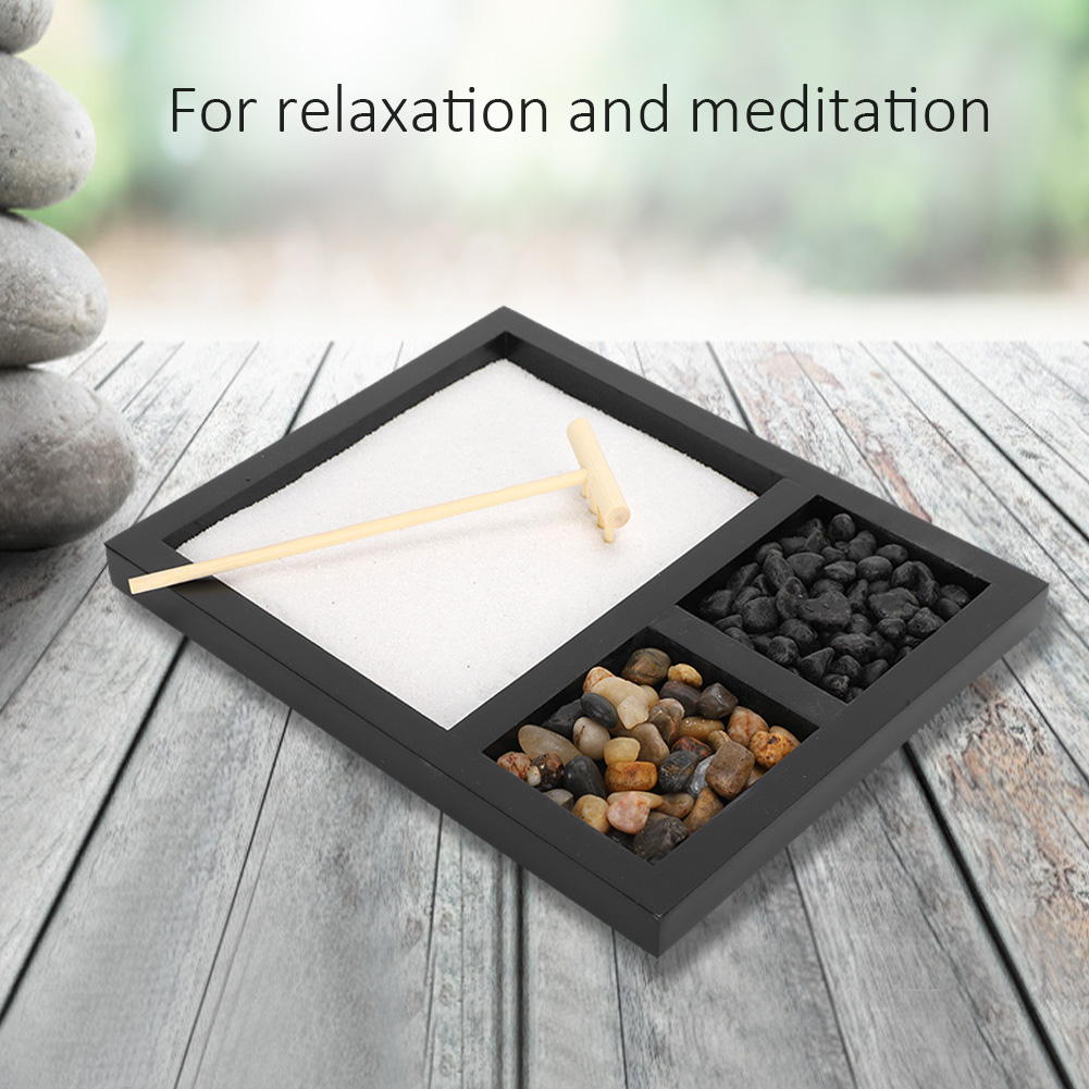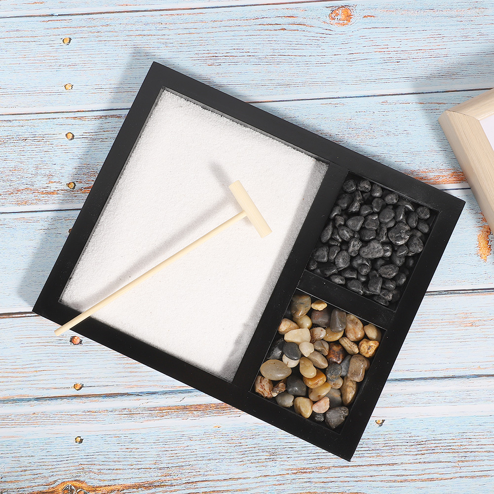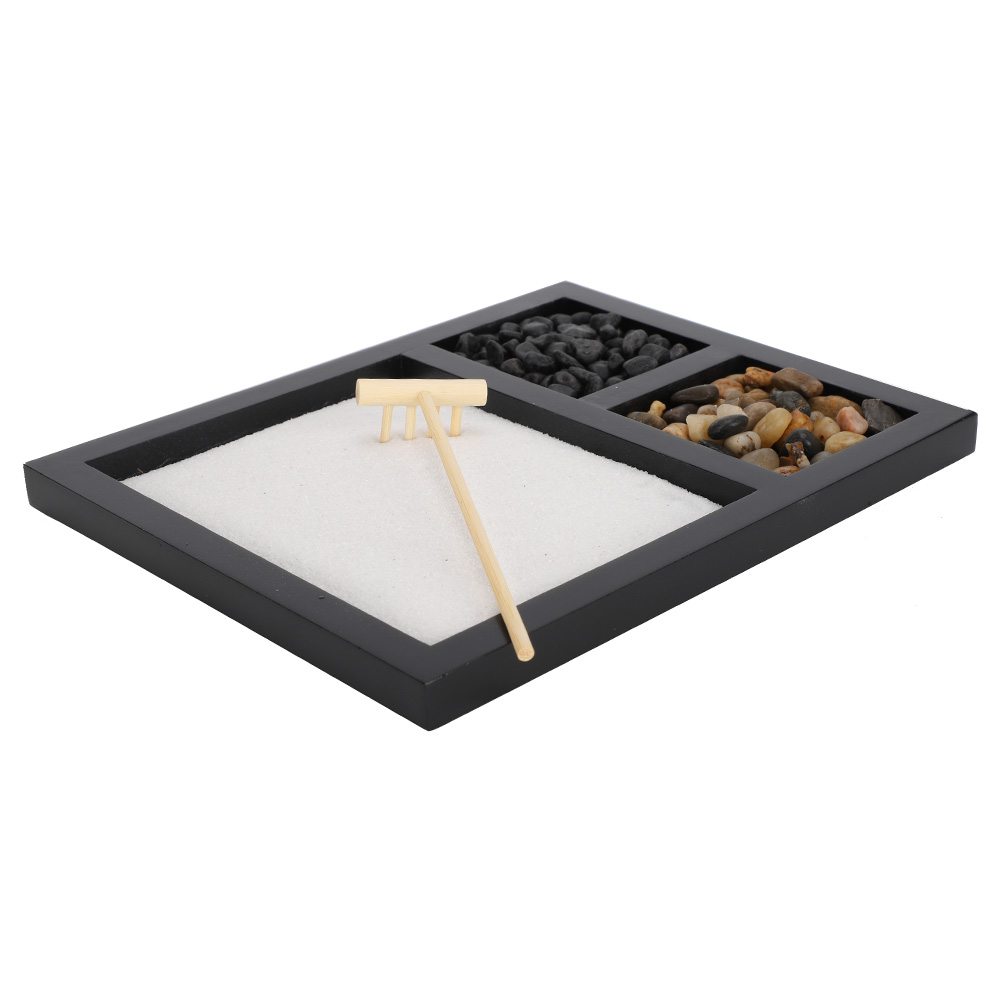 1、Living room tabletop micro-landscape decoration, can be used as geomantic gifts and wedding gifts. 2、Sand represents sea, stones represent mountains, wooden rake can be used to take care of sand table decorations. 3、Beautiful Zen sand tray ornament, suitable for relaxation and meditation, creating an elegant and peaceful ambient. 4、It can be used as a way of meditation to remove all stress, pressure and confusion. 5、Can also be used as handicraft ornaments in homes, shops, hotels, yoga clubs, tea rooms.