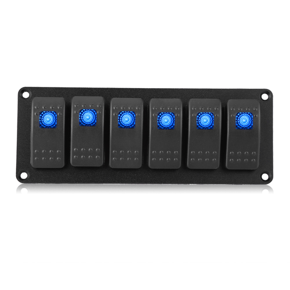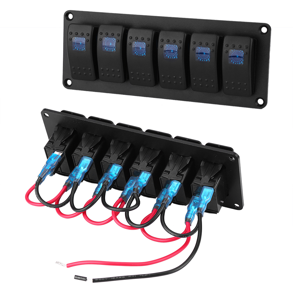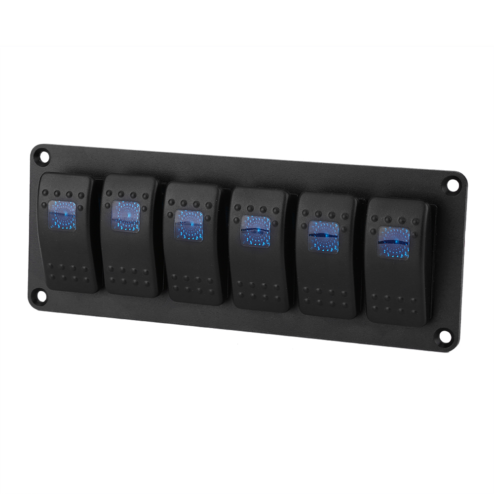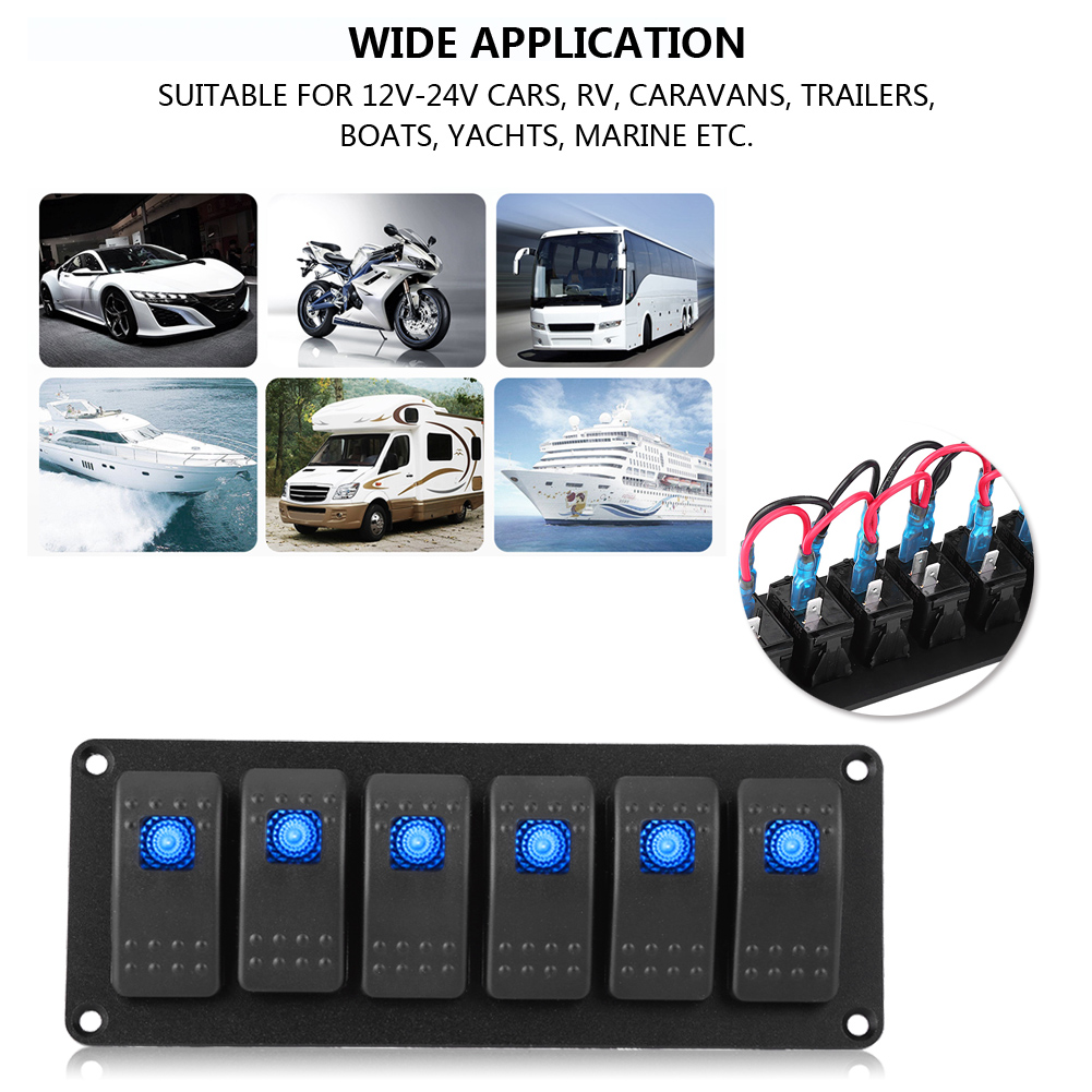 1、Suitable for 12V-24V cars, RV, caravans, trailers, buses, boats, yachts, marine etc 2、6-gang blue/orange/green(optional) LED single light switches, can control the electrical equipment inside the car at will 3、With vehicle and boat label stickers, the corresponding control instructions can be attached to the switch according to your needs 4、Easy to install, can be installed horizontally or vertically 5、Made of high quality aluminum panel and PPT & PC material, durable and waterproof