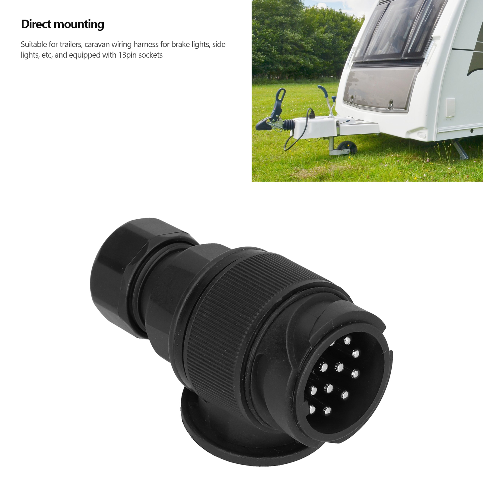 1、Trailer plug adapter is suitable for trailers, caravan wiring harness for brake lights, side lights, etc, and equipped with 13pin sockets. 2、Establish a secure connection between the trailer and power supply, which is a replacement for old or damaged plugs. 3、Made of high‑quality plastic and copper materials, plastic construction prevents rust, prolongs the life of service. 4、Has wide ranges. Trailer plug adapter is suitable for replacement, repair, refurbishment, spare, etc. 5、Trailer plug adapter is easy to install. It is easy to operate and can be installed directly.