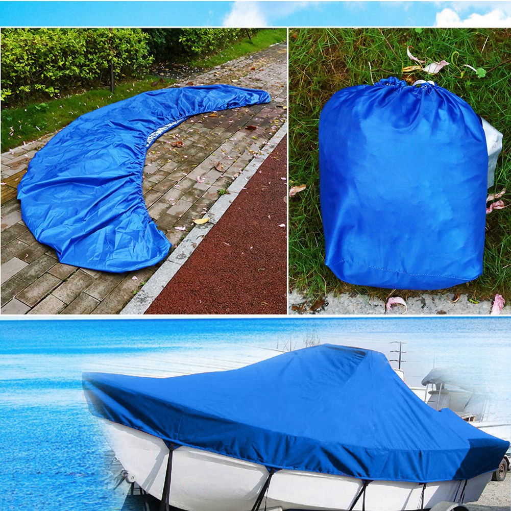 This is a boat cover which is made of 210D high strength oxford cloth, designed for extra durability and all-weather protection, won't shrink or stretch. It adopt elasticated bottom hem to ensure a adjustable snug fit. There are several plastic loops sewn around the entire bottom hem to fit the tie down rope. It's really a practical product, hope you a happy purchase.