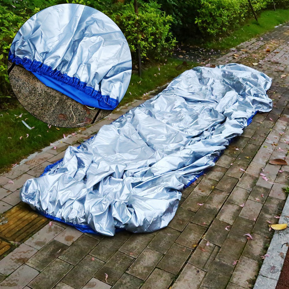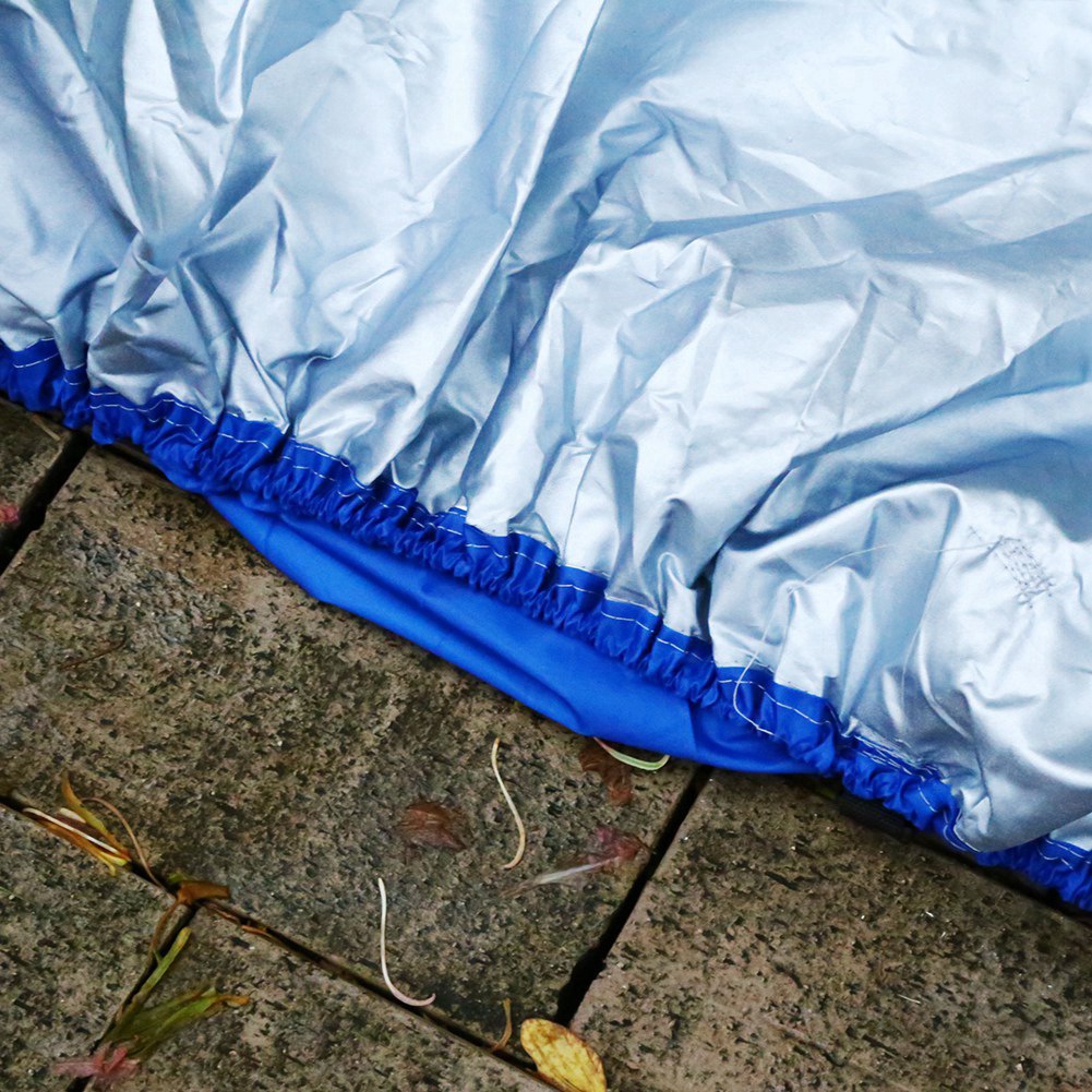 1、High strength 210D Oxford cloth designed for extra durability and all-weather protection, won't shrink or stretch. 2、PU coating technology for maximum water resistance and resistant to mildew and UV damage. 3、Adopt elasticated bottom hem to ensure a adjustable snug fit. 4、There are several plastic loops sewn around the entire bottom hem to fit the tie down rope. 5、Storage bag and Nylon tighten rope included. The rope is long enough to thread through all the loops.