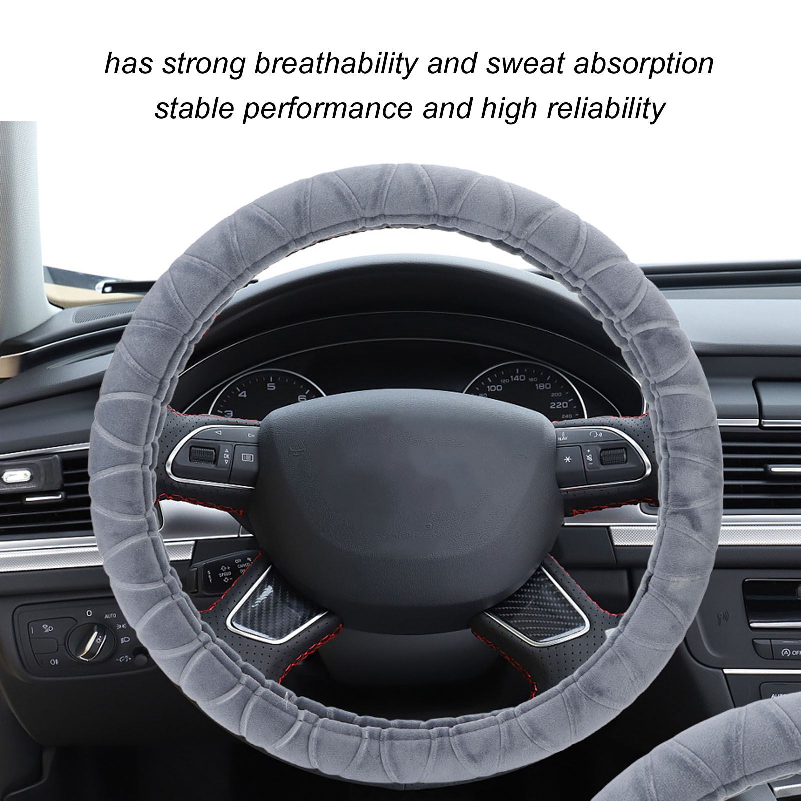 15 Inch Universal Car Steering Wheel Cover Protector Soft Anti Slip Interior Accessories for Winter WarmGrey