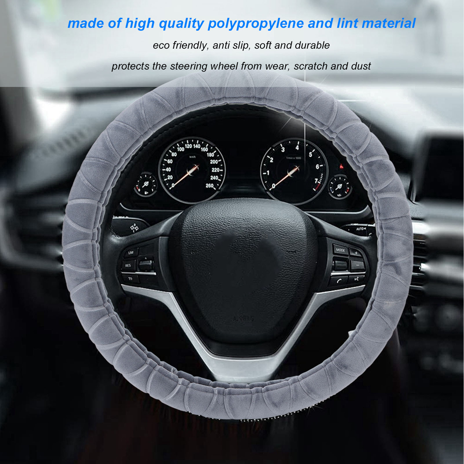 1、High Quality Material: Steering wheel cover is made of high quality polypropylene and lint material, eco friendly, anti slip, soft and durable. 2、Protection: Car steering wheel cover protects the steering wheel from wear, scratch and dust, have a long service time. 3、Excellent Performance: 15 inch steering wheel cover has strong breathability and sweat absorption, stable performance and high reliability. 4、Universal Fitment: Universal car steering wheel cover is suitable for most standard steering wheels with diameter of 38cm/15inch. 5、Easy Installation: Easy to Install, no tools are required, direct fit, convenient for using, save your time and energy.