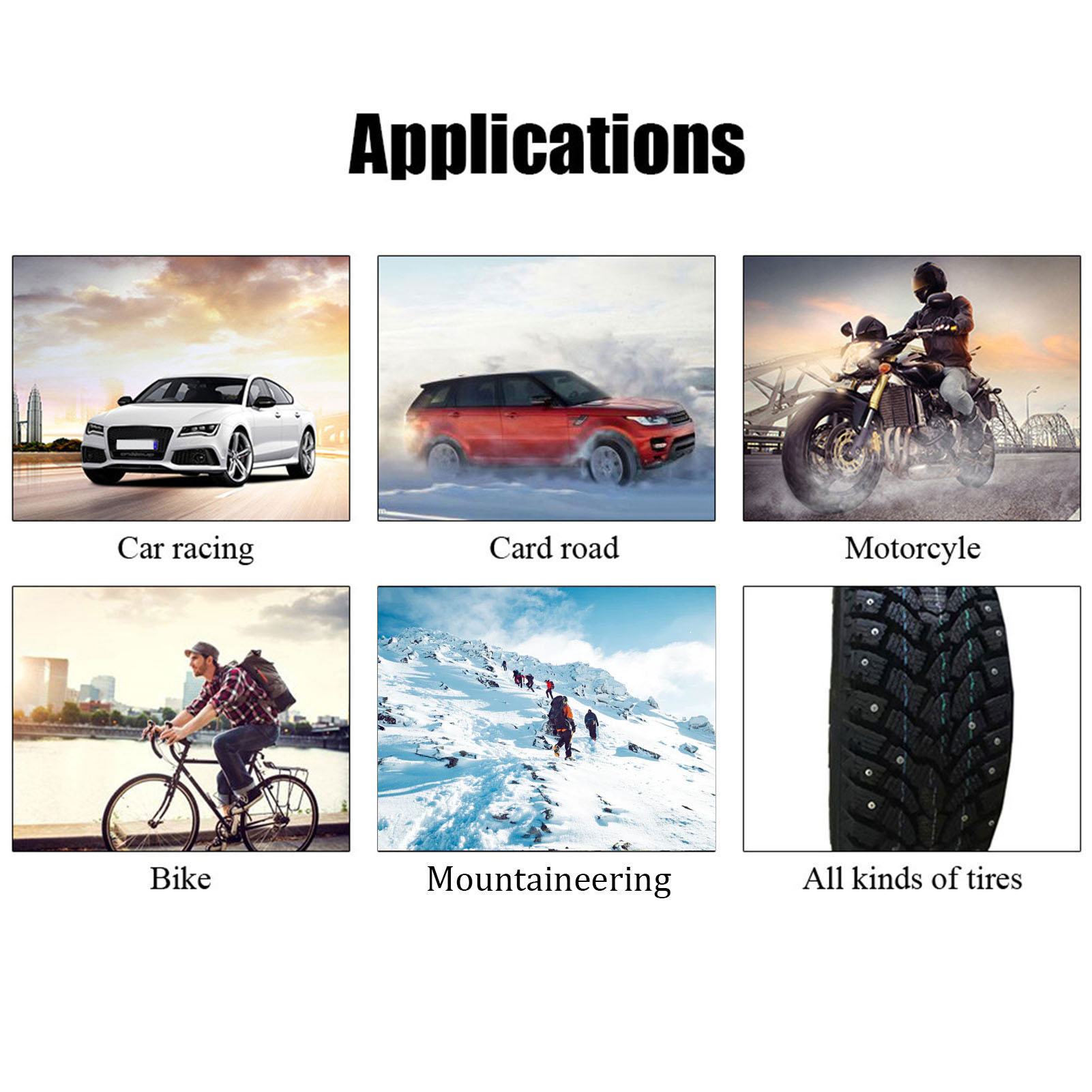 1、Enhance Grip: Increase the tire superior grip and anti skid performance on various terrains to ensure safe driving in heavy snow and deep winter weather. 2、Durable Construction: Made from sturdy steel and carbide materials, ensuring durability and long lasting performance in challenging conditions. 3、Versatile Application: Universal tire screw studs suitable for a wide range of vehicles including cars, trucks, bicycles, motorcycles, ATVs, and SUVs. 4、Easy to Install and Remove: These tire studs can be easily installed and removed with certain tools. When not in use, it can be disassembled and stored for reuse. 5、Sufficient Quantity: Comes in a pack of 100pcs, providing ample quantity for multiple tire applications and replacements, very practical anti skid tire studs set.
