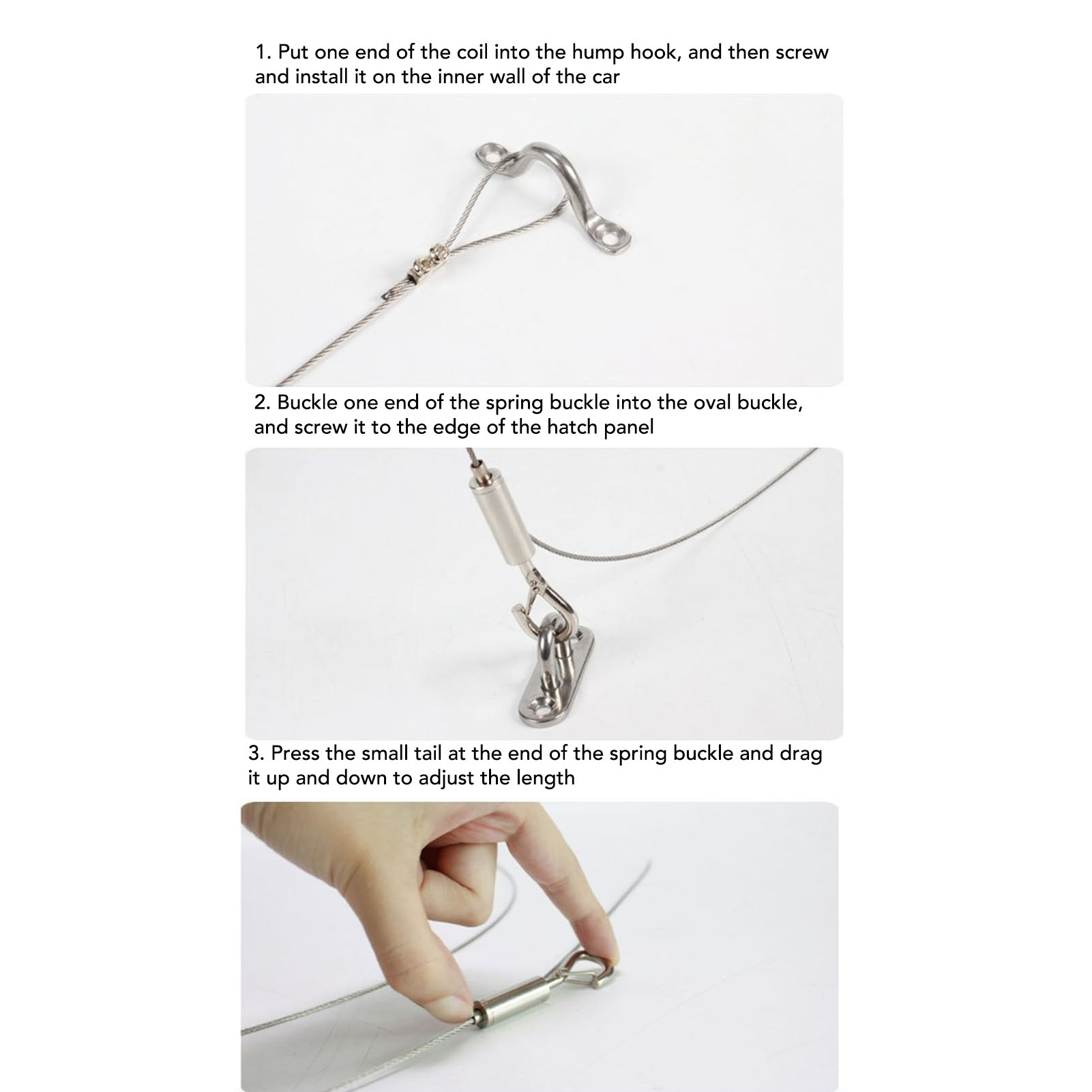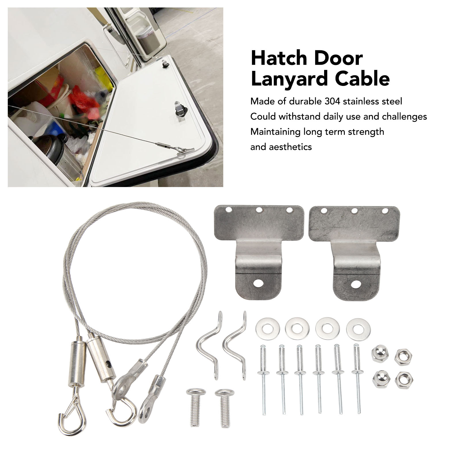 1、Adjustable: RV 304 stainless steel hatch wire pull rope can be quickly adjusted according to different RV sizes to meet different grades and needs. 2、High Durability: The wire pull rope is made of durable 304 stainless steel to withstand daily use and challenges, maintaining long term strength and aesthetics. 3、High Safety: The pull rope is made of steel wire car, which has high strength and wear resistance, which can ensure that the hatch is always secure when opened. 4、Practical in Use: The package includes two drawstrings and enough accessories, the rope kit could allow your hatch to open easily and provide an operating platform. 5、Easy to Install: Hatch drawstrings are made precisely, easy to install, no need for professional tools, and you can easily install and maintain.