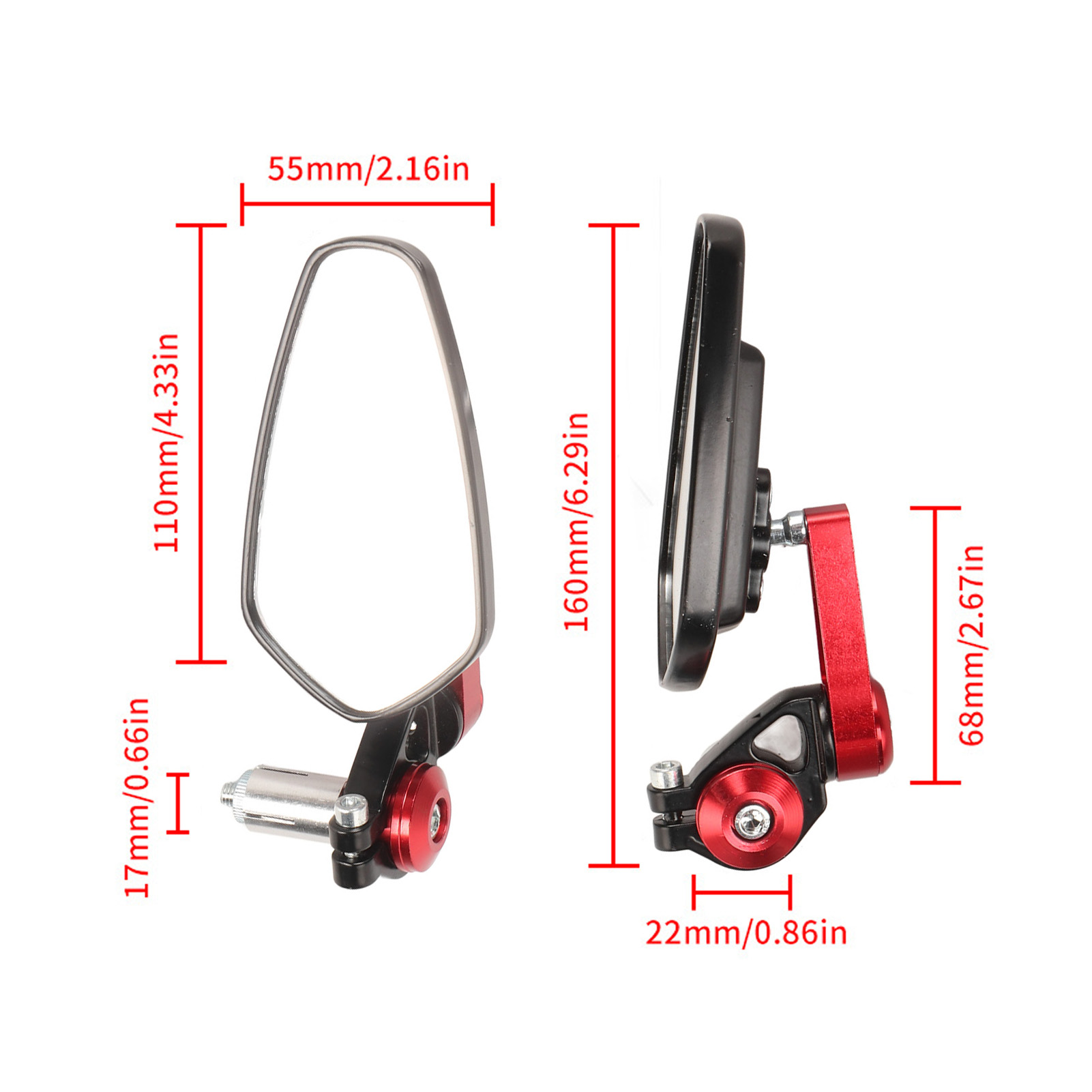 2PCS Motorcycle Rearview Mirror High Definition Clear View Aluminium Alloy Handlebar Side Mirrors for Motorbike Red