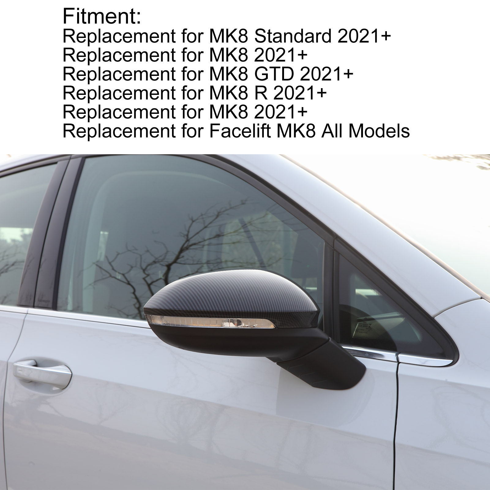 2PCS Side View Mirror Cover Left Right Carbon Fiber Look Replacement for MK8 Standard 2021+(With Lane Assist )