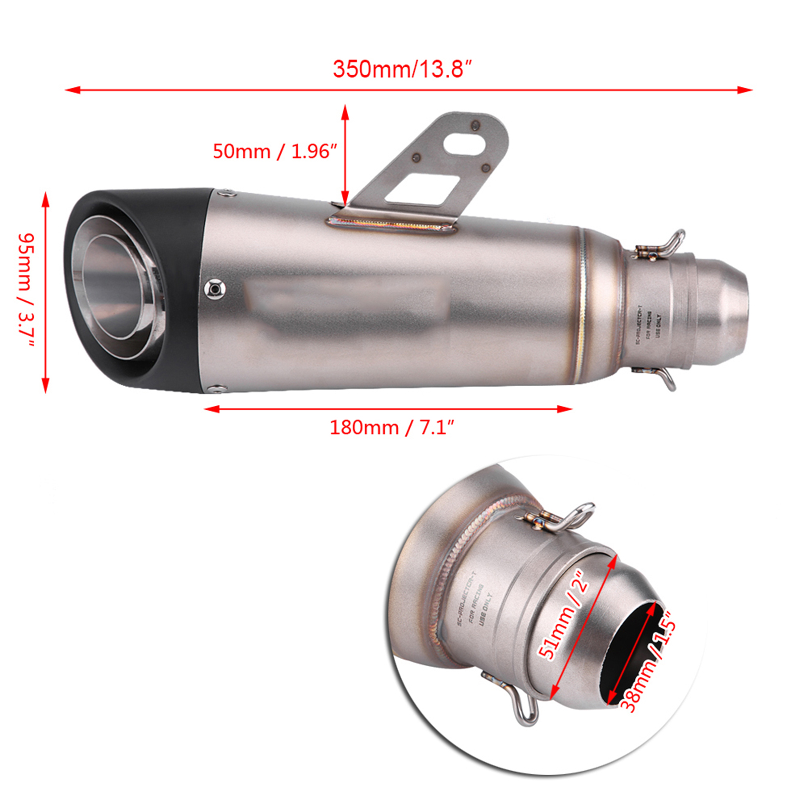 • Comes with a 51mm welding adapter, fit for most motorcycles, ATV and scooters with exhaust pipes in 38-51mm.