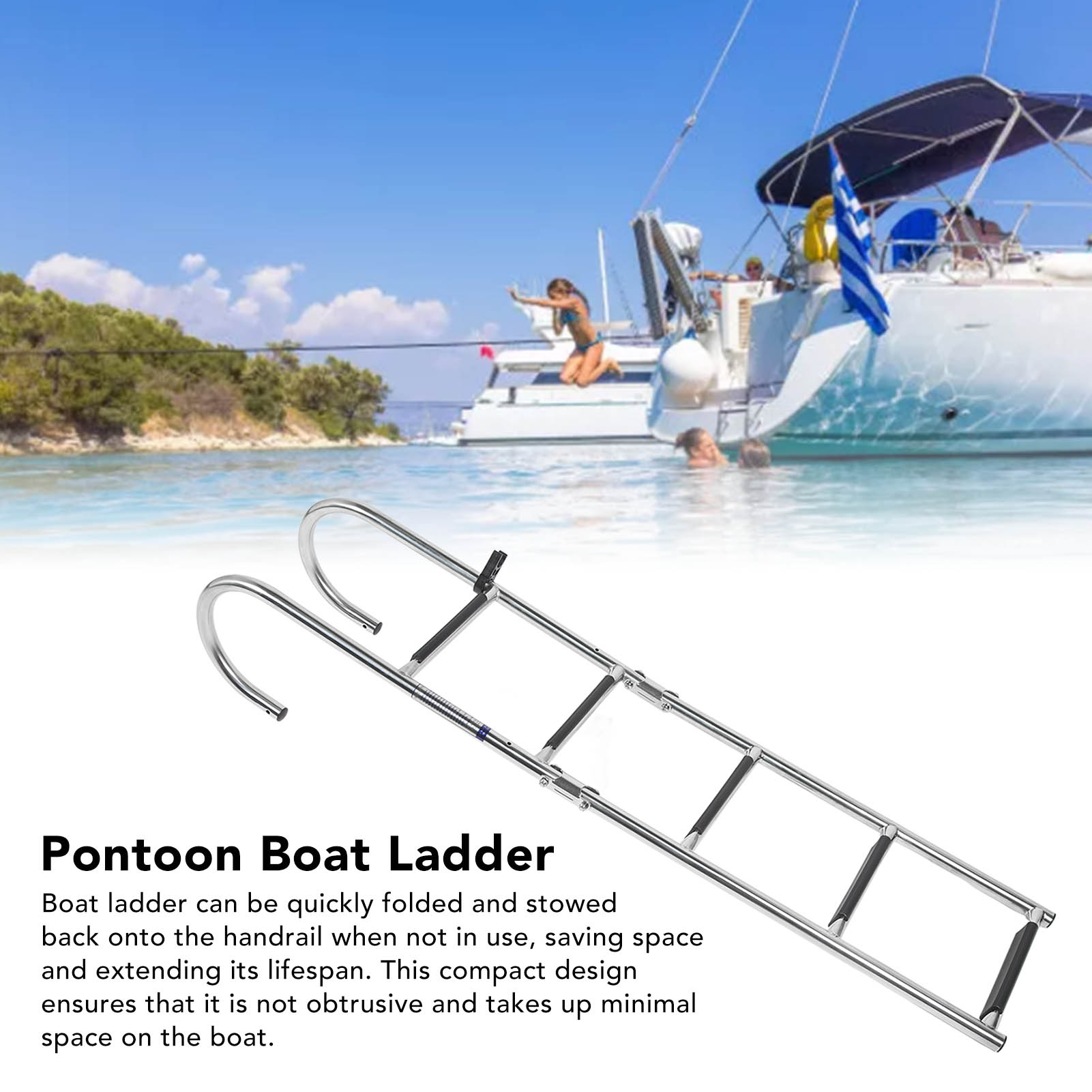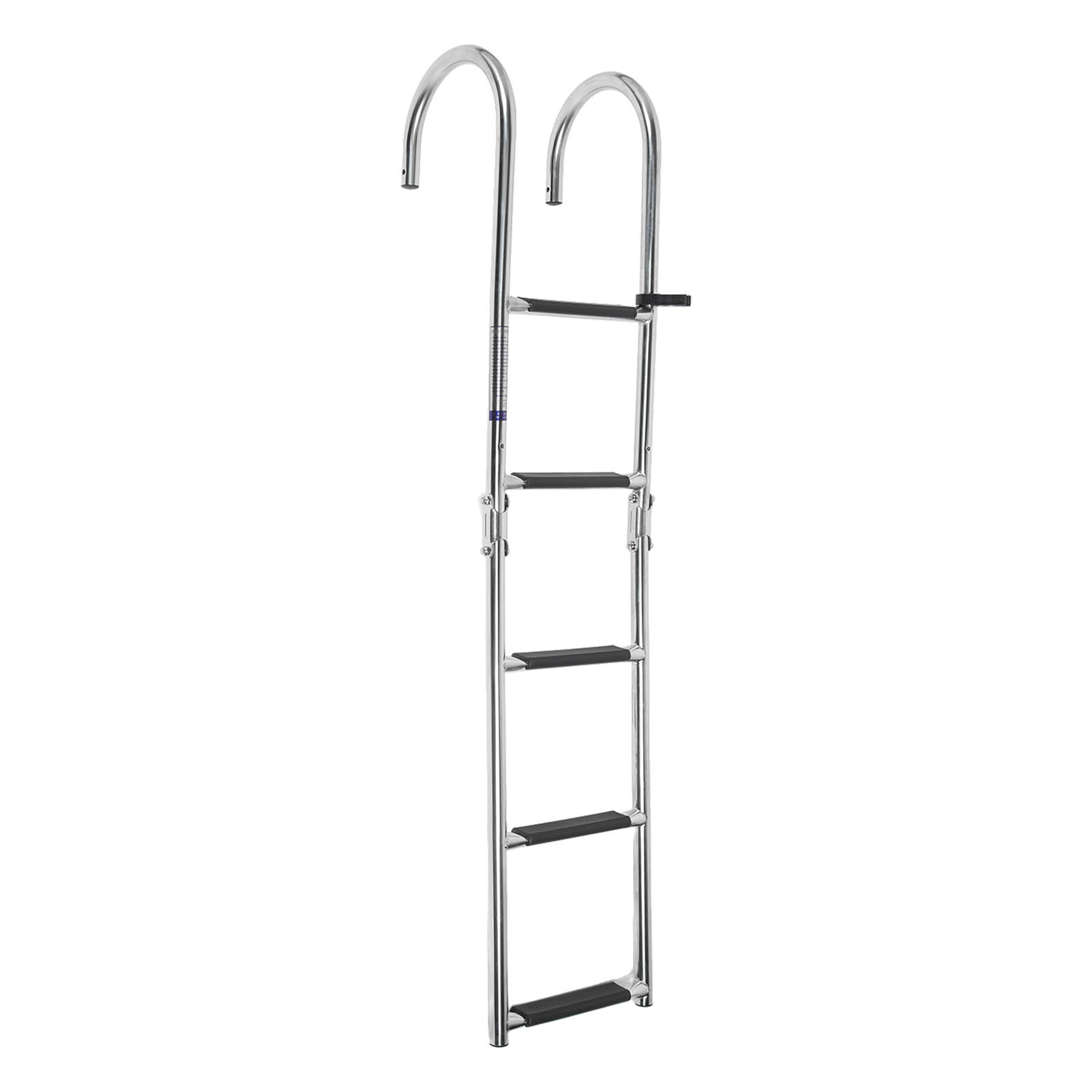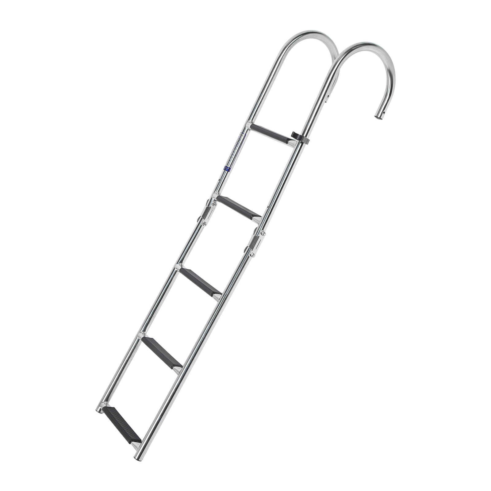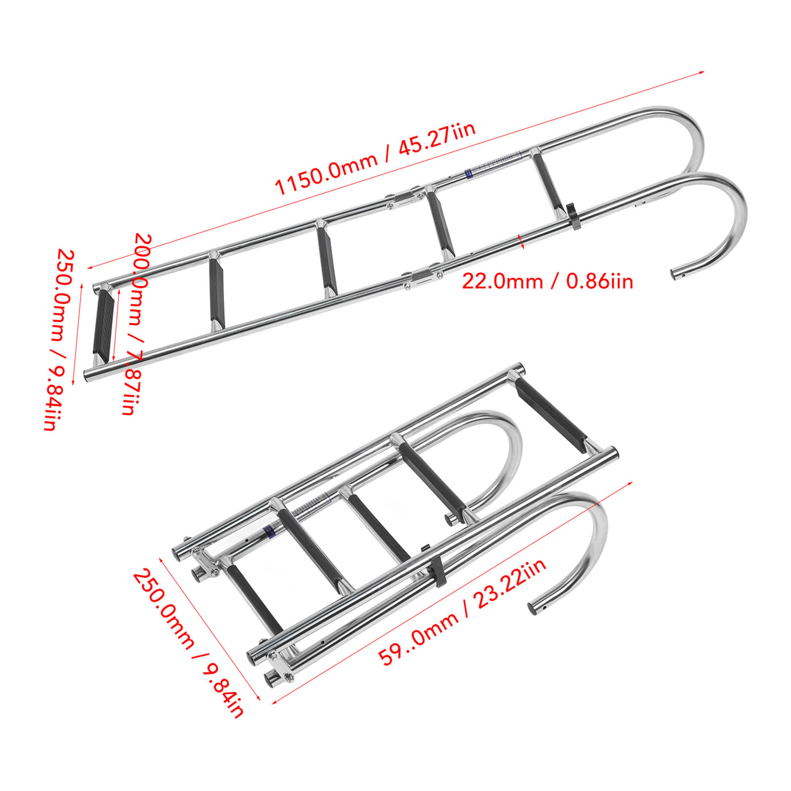 5 Step Boat Ladder Collapsible Folding Stainless Steel Pontoon Ladder with Arched Handrails for Yachts Fishing Boats