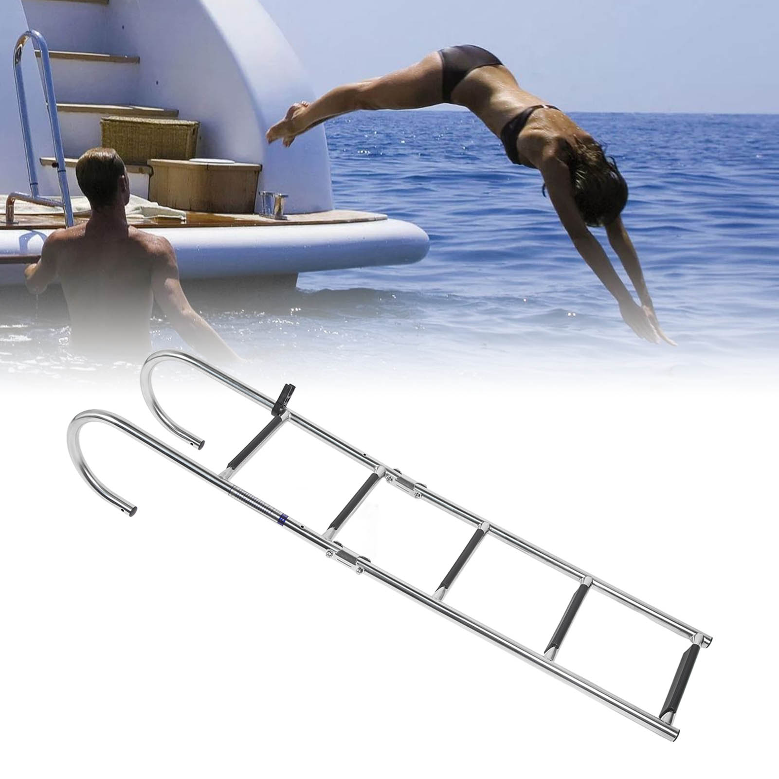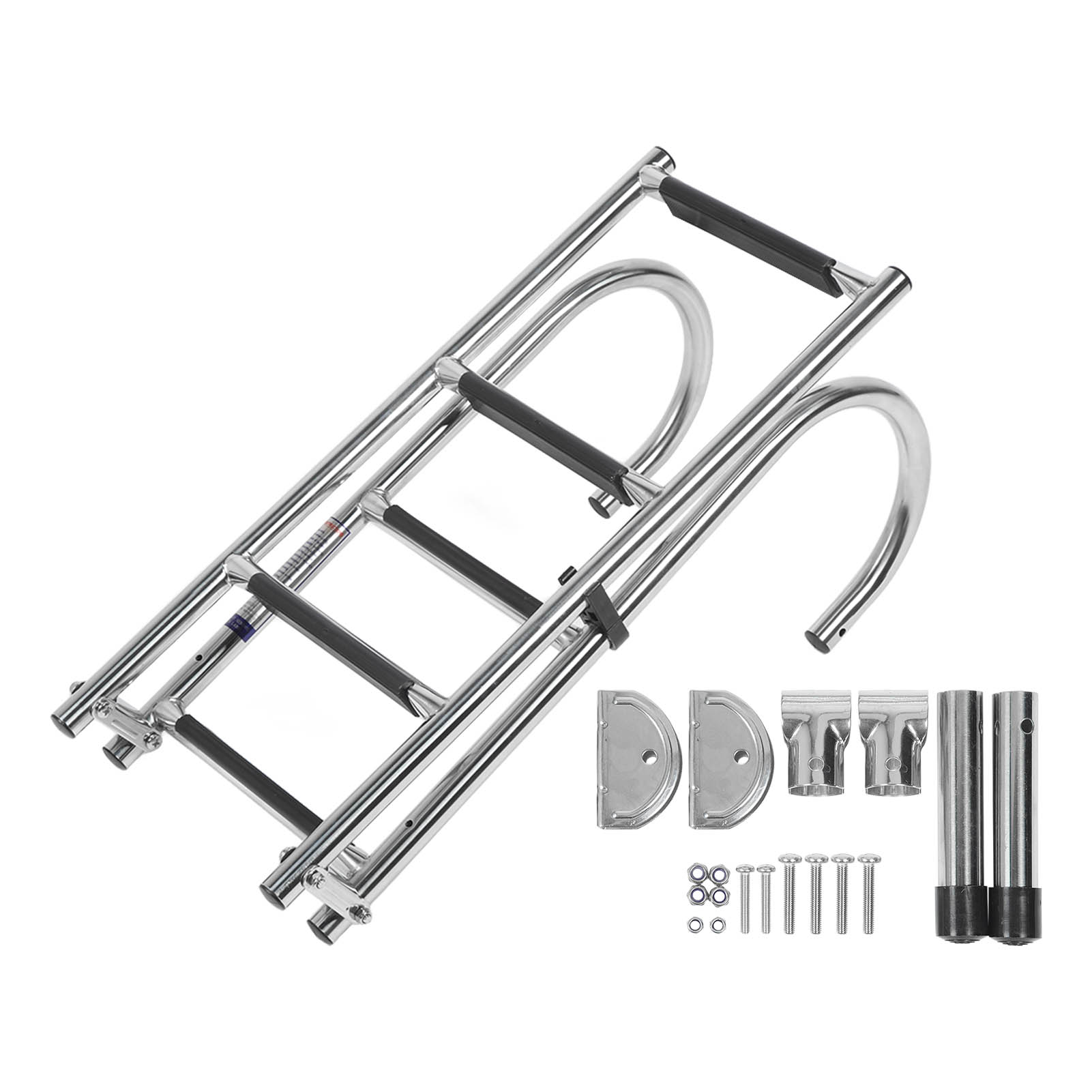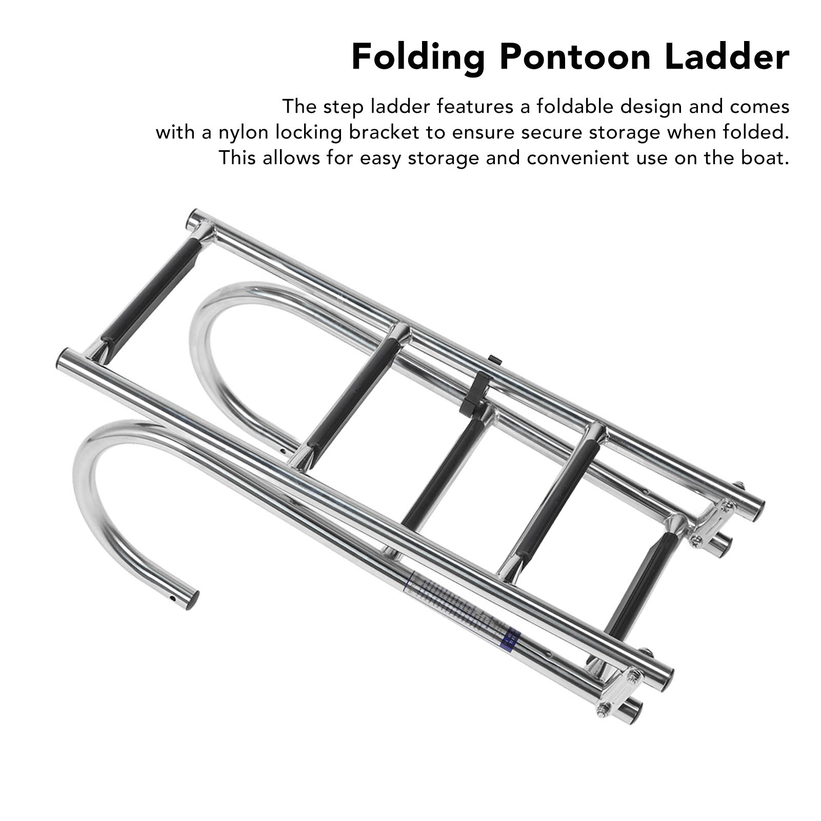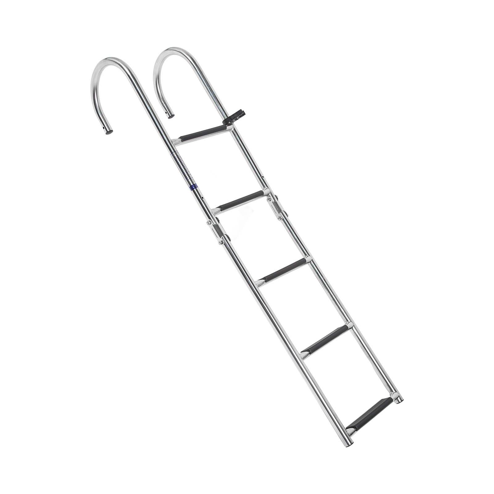 5 Step Boat Ladder Collapsible Folding Stainless Steel Pontoon Ladder with Arched Handrails for Yachts Fishing Boats