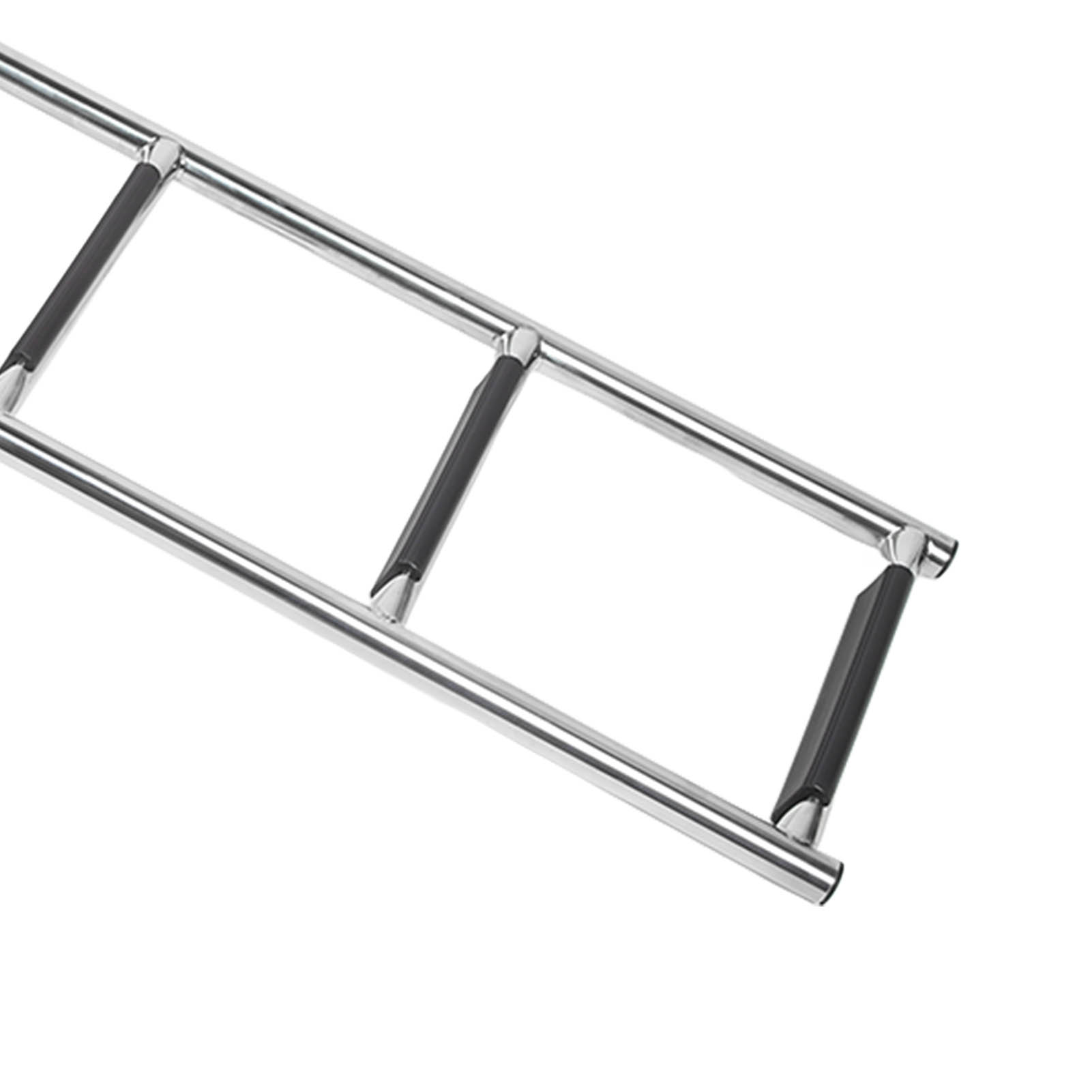 1、Stainless Steel Construction: The ladder is made from 22mm (7/8 inch) diameter 316 stainless steel tubes, which are mirror polished for a beautiful appearance. It is designed to withstand harsh marine environments. 2、Foldable Design: The step ladder features a foldable design and comes with a nylon locking bracket to ensure secure storage when folded. This allows for easy storage and convenient use on the boat. 3、Safe and Reliable: With a black, anti slip threaded step, the ladder provides safety and comfort, especially when boarding from deep waters. The ladder is designed to offer stability and security during use. 4、Space Saving: Boat ladder can be quickly folded and stowed back onto the handrail when not in use, saving space and extending its lifespan. This compact design ensures that it is not obtrusive and takes up minimal space on the boat. 5、Easy Installation: The ladder is easy to install, requiring only to be fixed onto a level platform. Once securely installed, it is ready to be used, providing a convenient boarding solution for boat users.