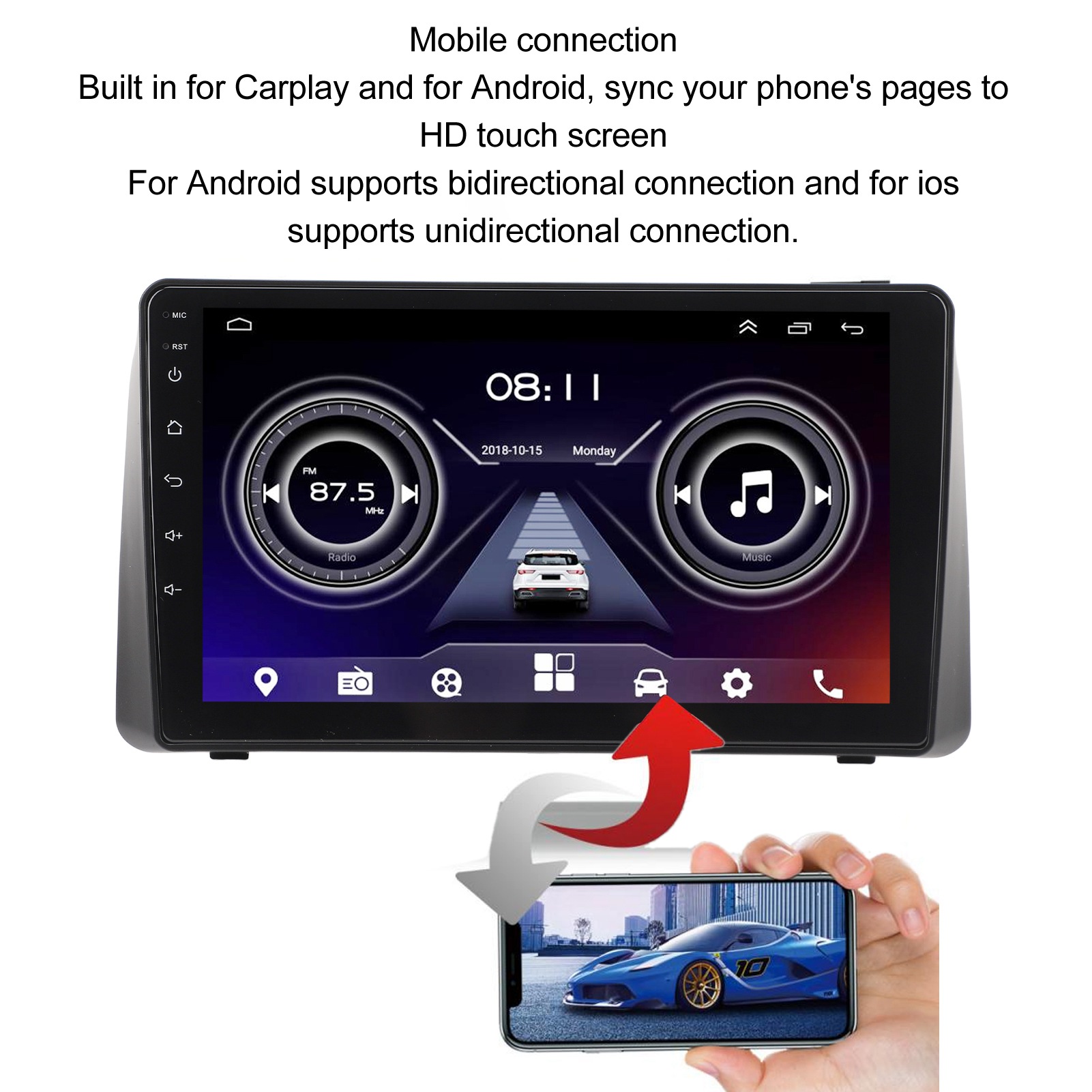 1、Applicable Model: 9 Inch Car stereo is fit for Grand Voyager 2011‑2015, please confirm whether your model is applicable before buying. 2、Powerful System: Built in for Android 12 operating system, quad core, 2GB RAM + 32GB ROM, multimedia player has smooth operation, fast response, with 9 inch 1024x600 HD touch screen, bring wonderful visual experience. 3、Phone Interconnection for iOS/for Android: Built in for Carplay allows you to sync your phone's pages to your HD touch screen. For Android supports bidirectional connection and for ios supports unidirectional connection. 4、GPS Navigation and WiFi Connection: Built in GPS navigation, support online/offline navigation. Once connected to WiFi, the online GPS navigation will work perfectly and you can download the apps you want from the store or delete the apps you don't need. 5、Multifunction: Support split screen, display map and FM broadcast at the same time. Support the original steering wheel key learning; Support FM/RDS radio; Bluetooth connection function, hands free call or answer function; Equipped with external microphone and can also play and control Bluetooth music. 6、Reversing Image: When reversing, the reversing image will be automatically displayed on the touch screen, bringing you a bright and clear reversing image (additional camera is required, the camera is not included).