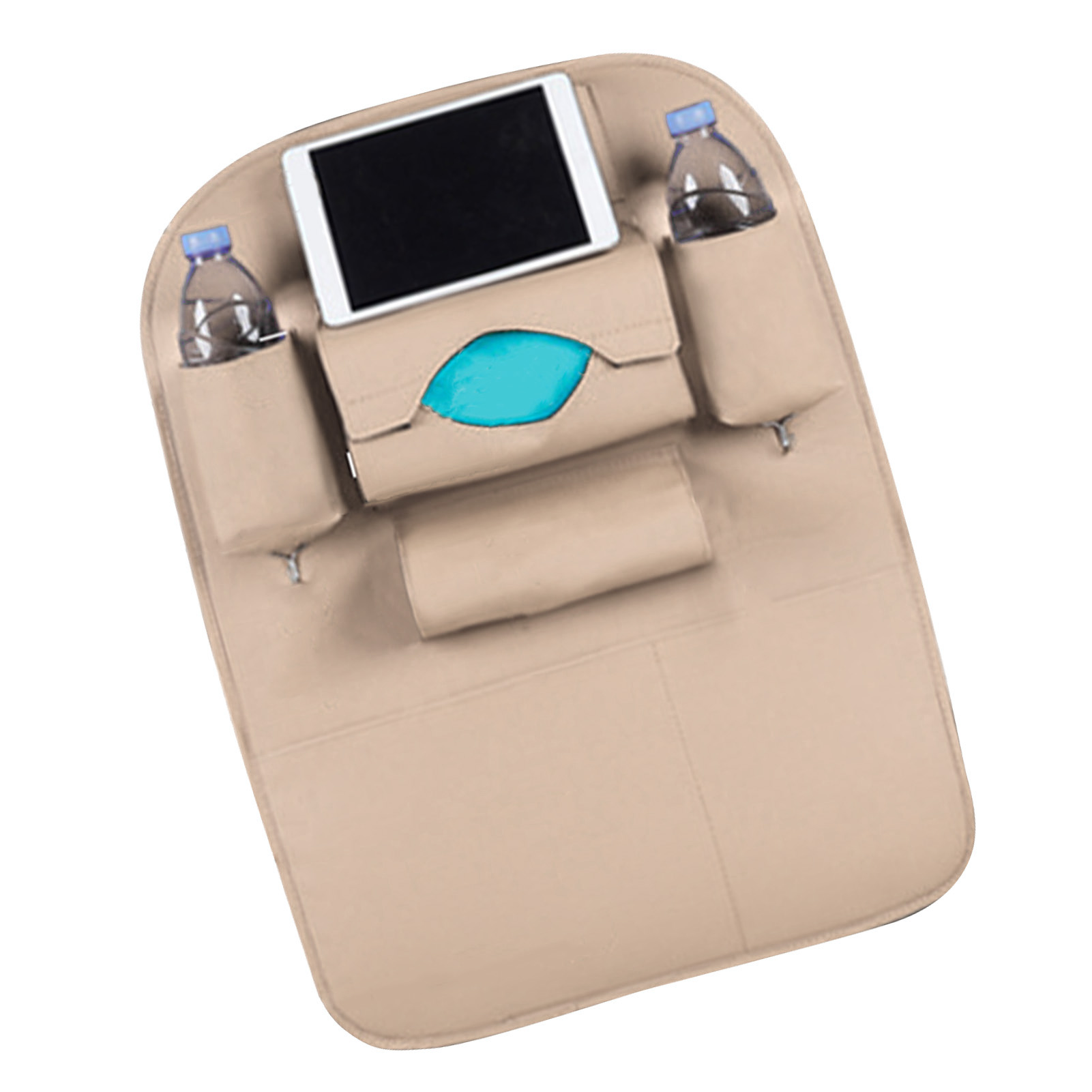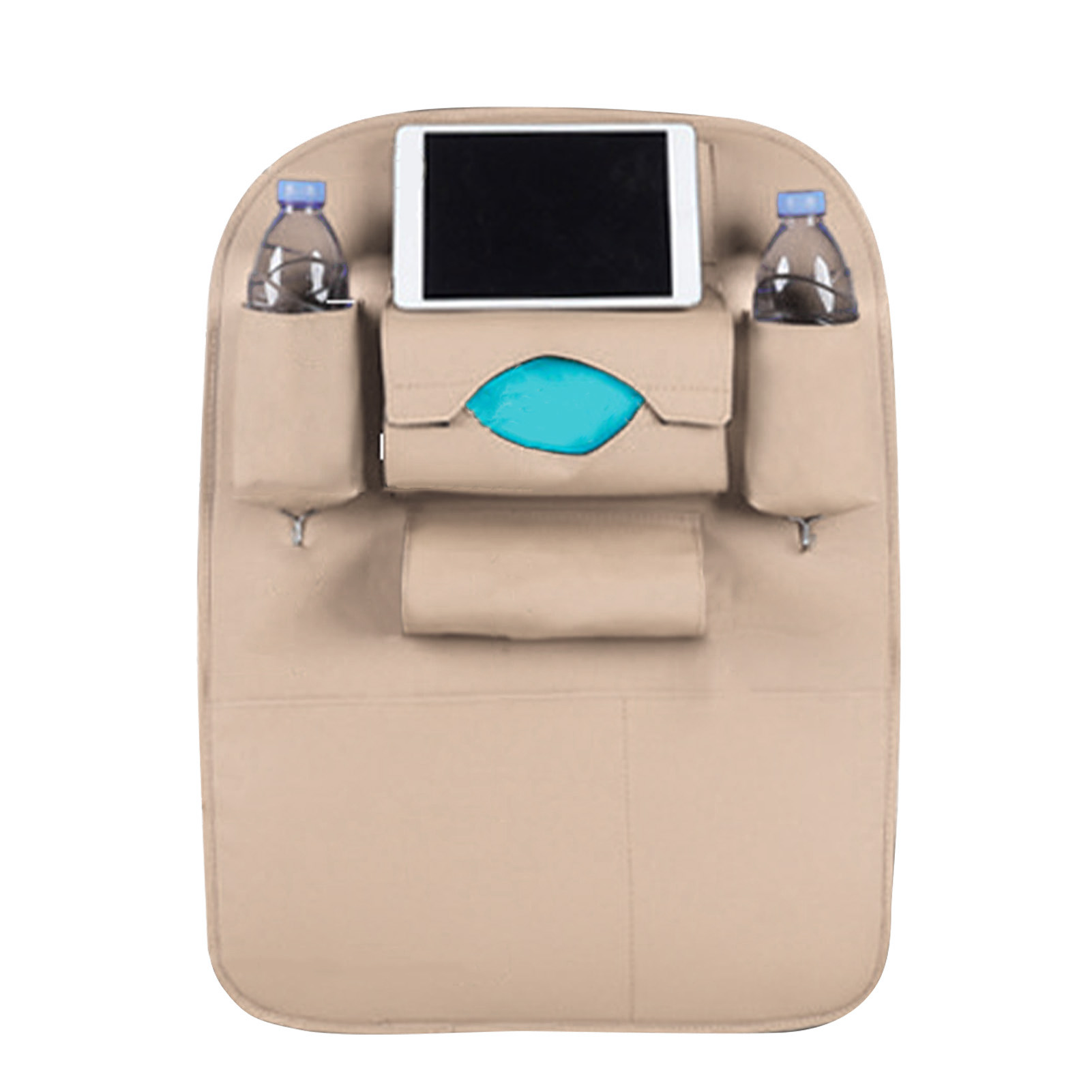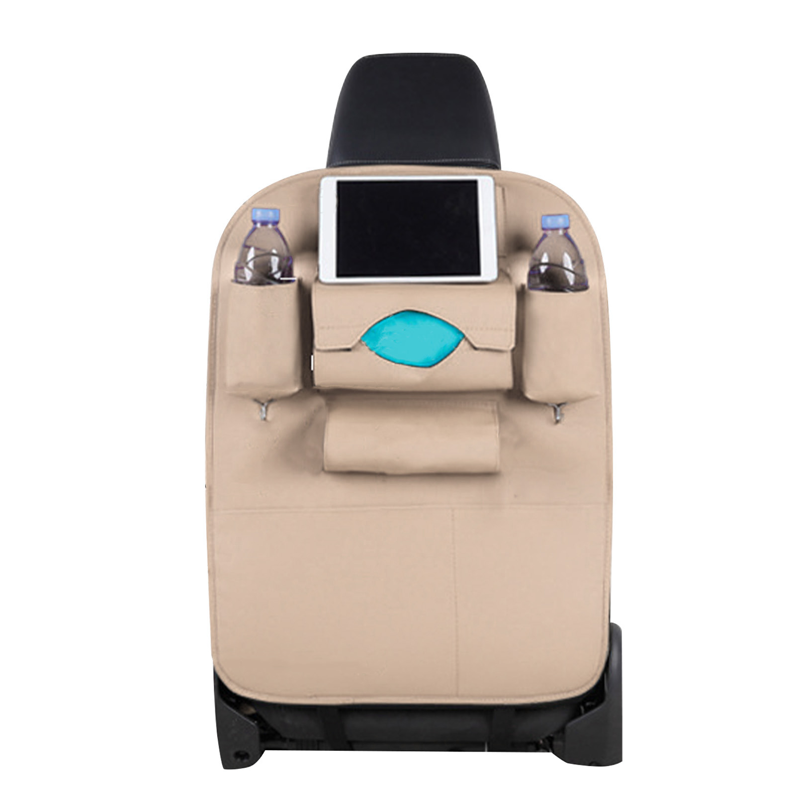 Car Chair Back Bag Multi Pockets Space Saving Protective PU Leather Seat Back Organizer for Water Cup Book Tissue Beige (Normal Version)