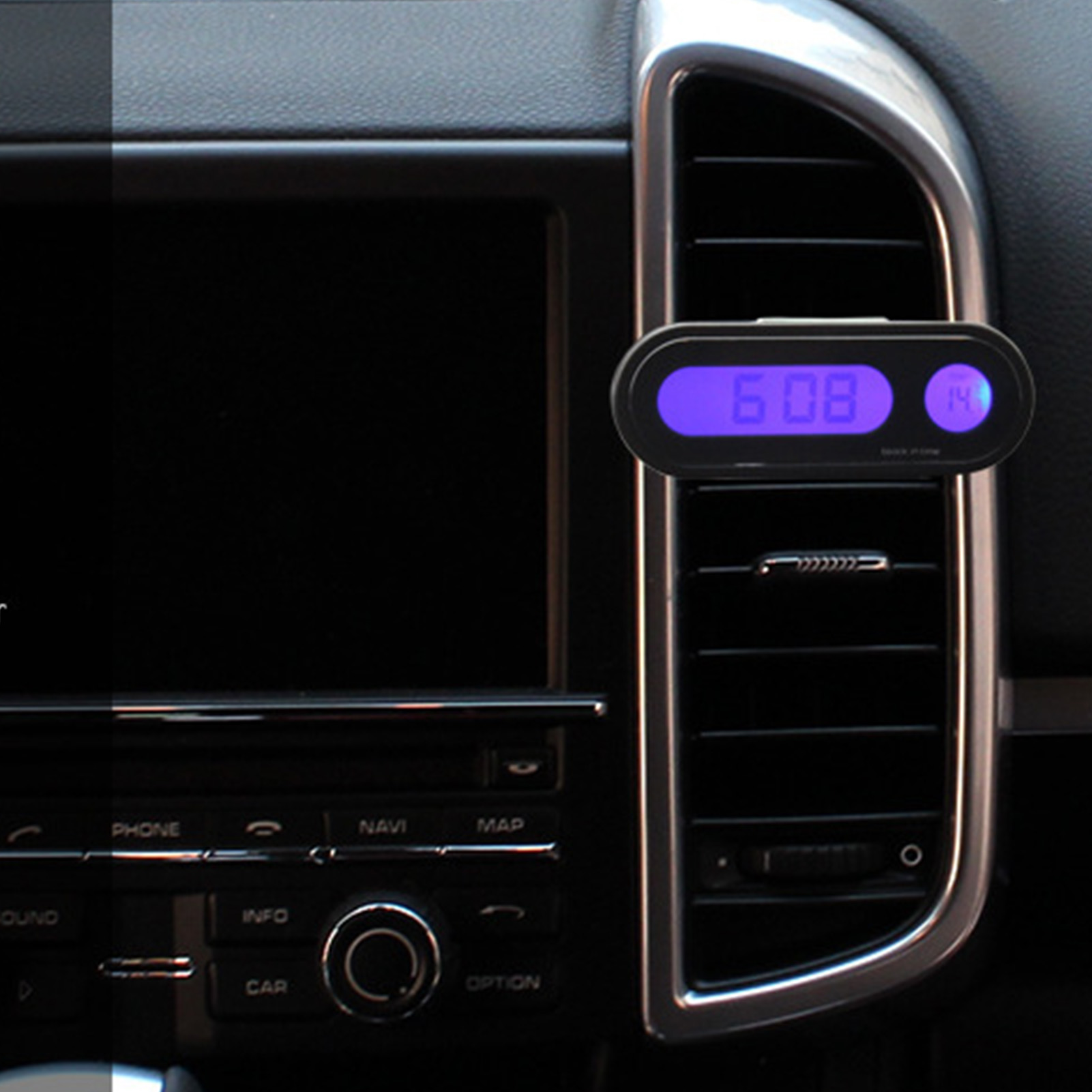 1、Compact Size: The size of the our mini dashboard clock is about 7.5 x 2.8 x 1.8 cm / 3 x 1.1 x 0.7 inches, small size, very easy to carry. It does not take up much space. 2、Large LCD: Our car digital LCD clock is easy to read, large numbers, time and temperature at a glance. It is a 2 in 1 clock, full of science and technology. 3、Luminous Digital Clock: This in car clock comes with a blue backlight in the dark design, allowing you to easily see the time even while driving at night. 4、Easy to Operate: Pressure mount, no damage to the vehicle dashboard. It is necessary to give power when using, and can automatically display the temperature, humidity and time in the car. 5、Adjustable Base: A mini clock displays hours and minutes that you can mount on your car's dashboard for use, and the base can be bent to adjust for comfortable visual angles.