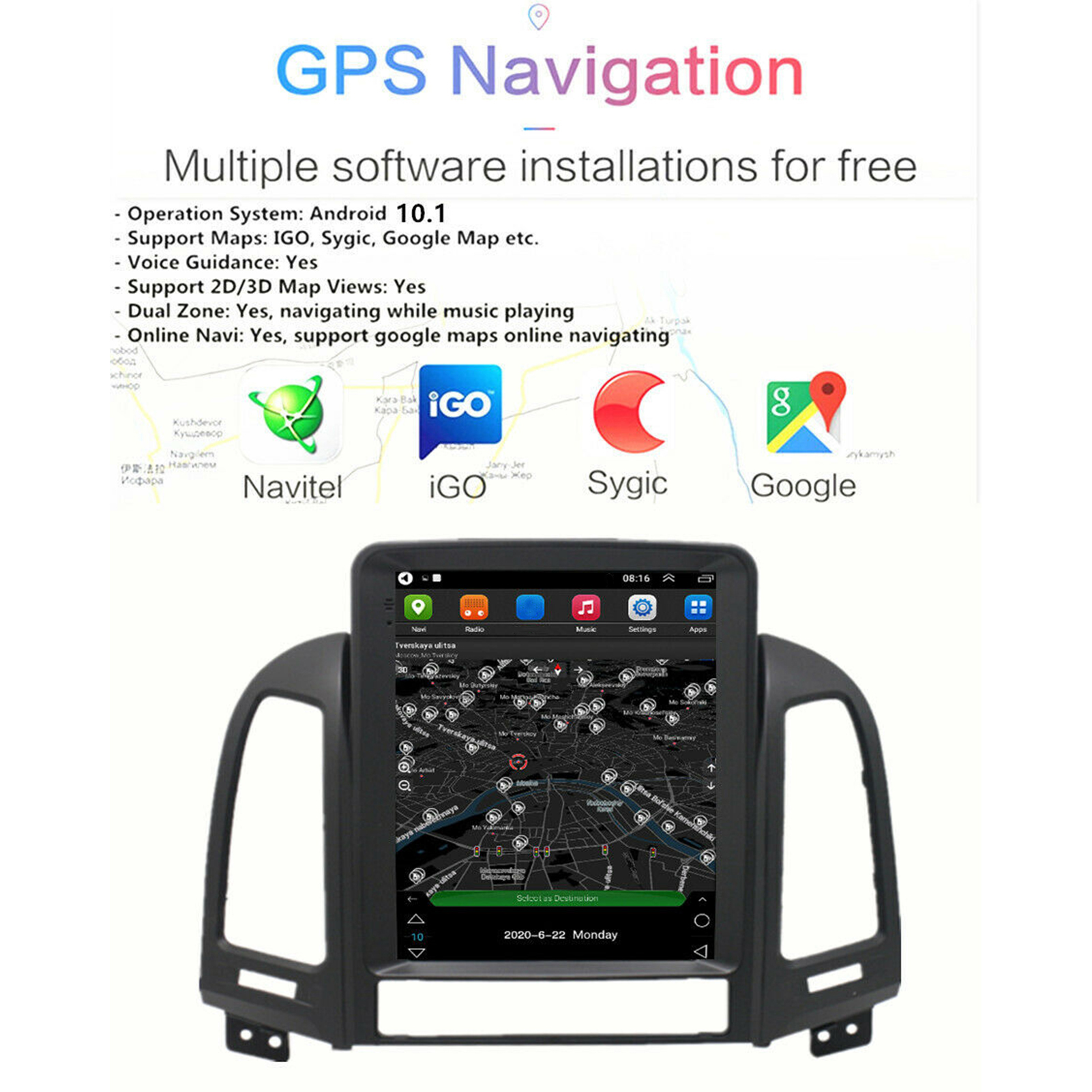 - Online Navi: Yes, support for google maps online navigating