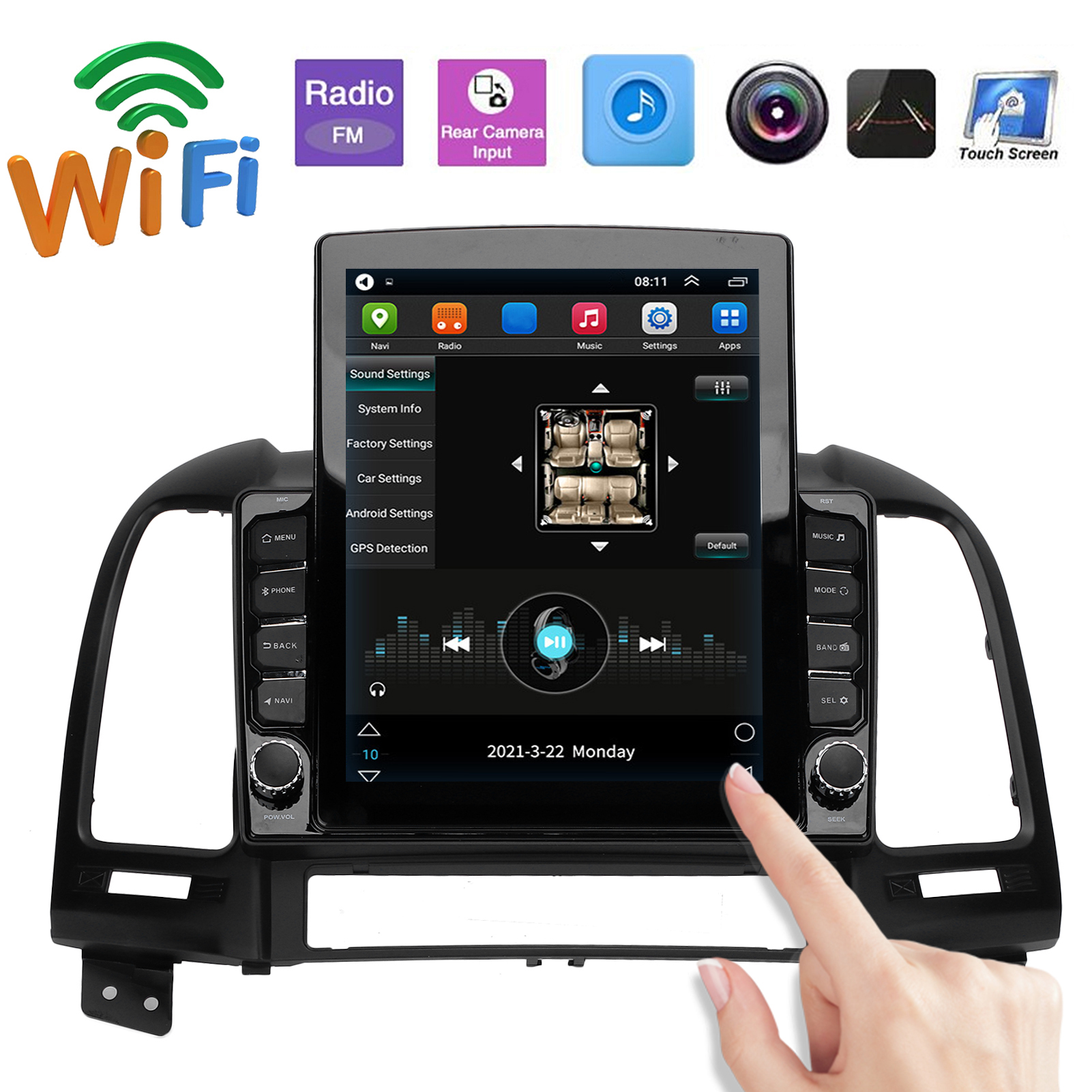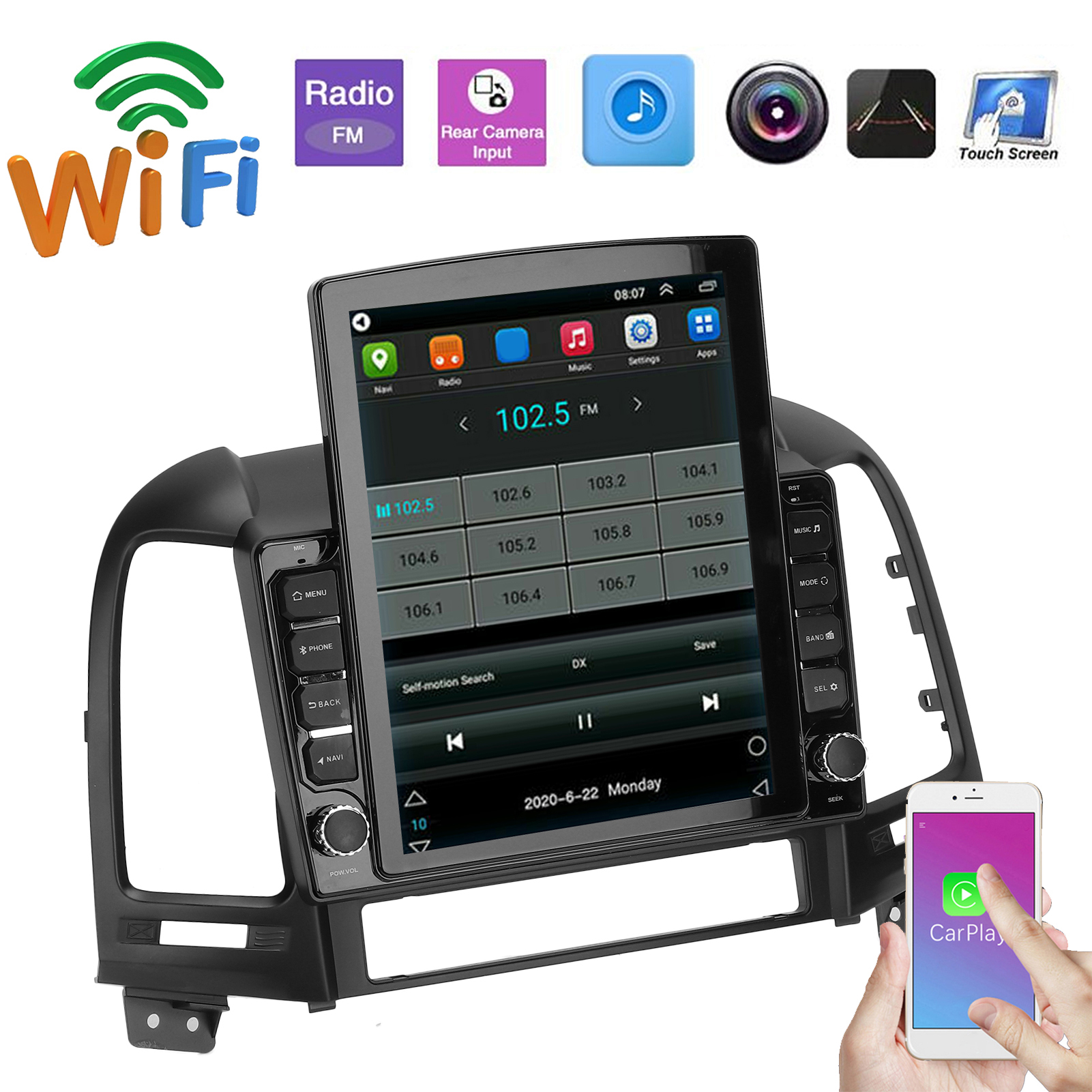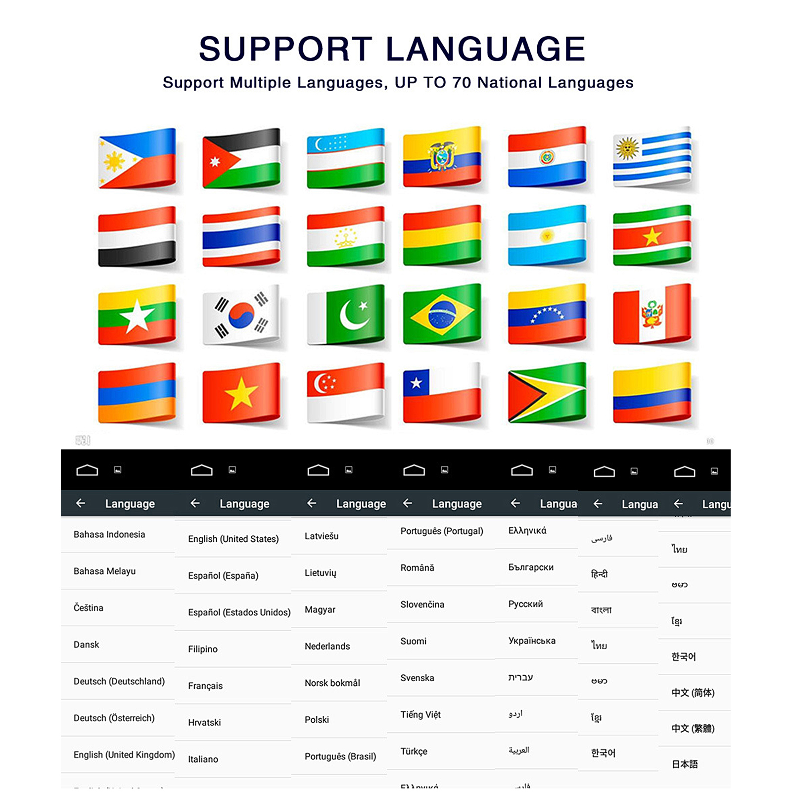 1、Up to 70 languages are supported, including Chinese (Simplified)/(Traditional), Russian, Spanish, Turkish, Russian, Hebrew, Italian, Arabic, French, German, English, Portuguese, Korean, Thailand etc. 2、Support Bluetooth hands-free, support phone book, support A2DP (Bluetooth stereo music), and have a built-in microphone on the front panel. It also supports the original steering wheel buttons. 3、Built-in Wi-Fi antenna, supports 802.11b / g / n, used to connect to nearby Wi-Fi access points, you can use your phone as a Wi-Fi access point, and also supports 4G and 3G Internet (not included 4G dongle and 3G dongle). 4、Support GPS maps, such as Google Online Maps/for Yandex.navi/for Online Waze/for Sygic, etc. It also supports online video, TV, movies, music, radio, video chat and other entertainment projects. 5、FM frequency range is 87.5-108 MHz, FM integrates 18 pre-configured radio stations. It also supports MP3 / WMA / MP2 / OGG / AAC / MA4 / FLAC / APE / WAV and other audio formats.