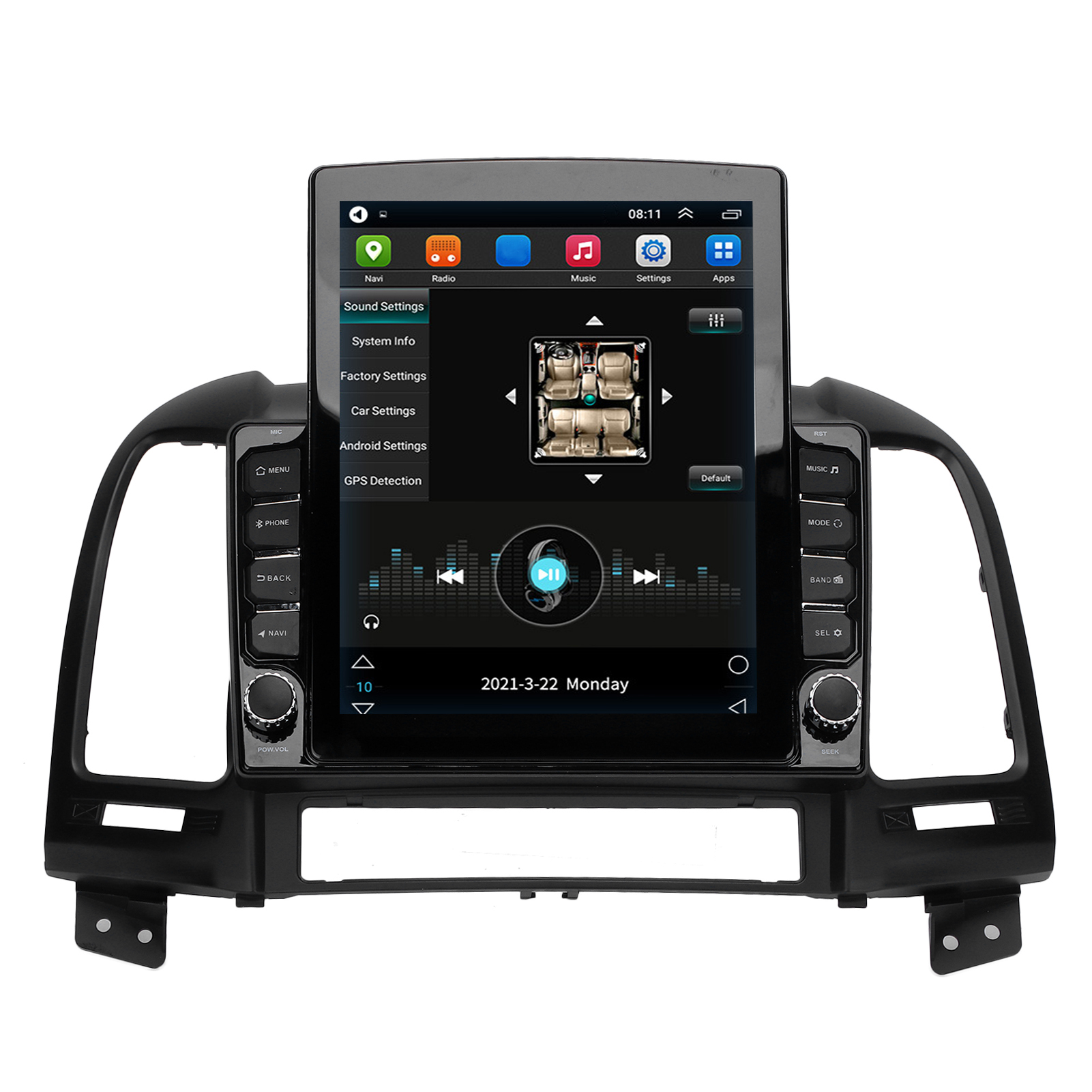 - Main Menu Status Bar display: Can be changed to Music/Radio/BT-Stereo Player and Clock/Date/Week