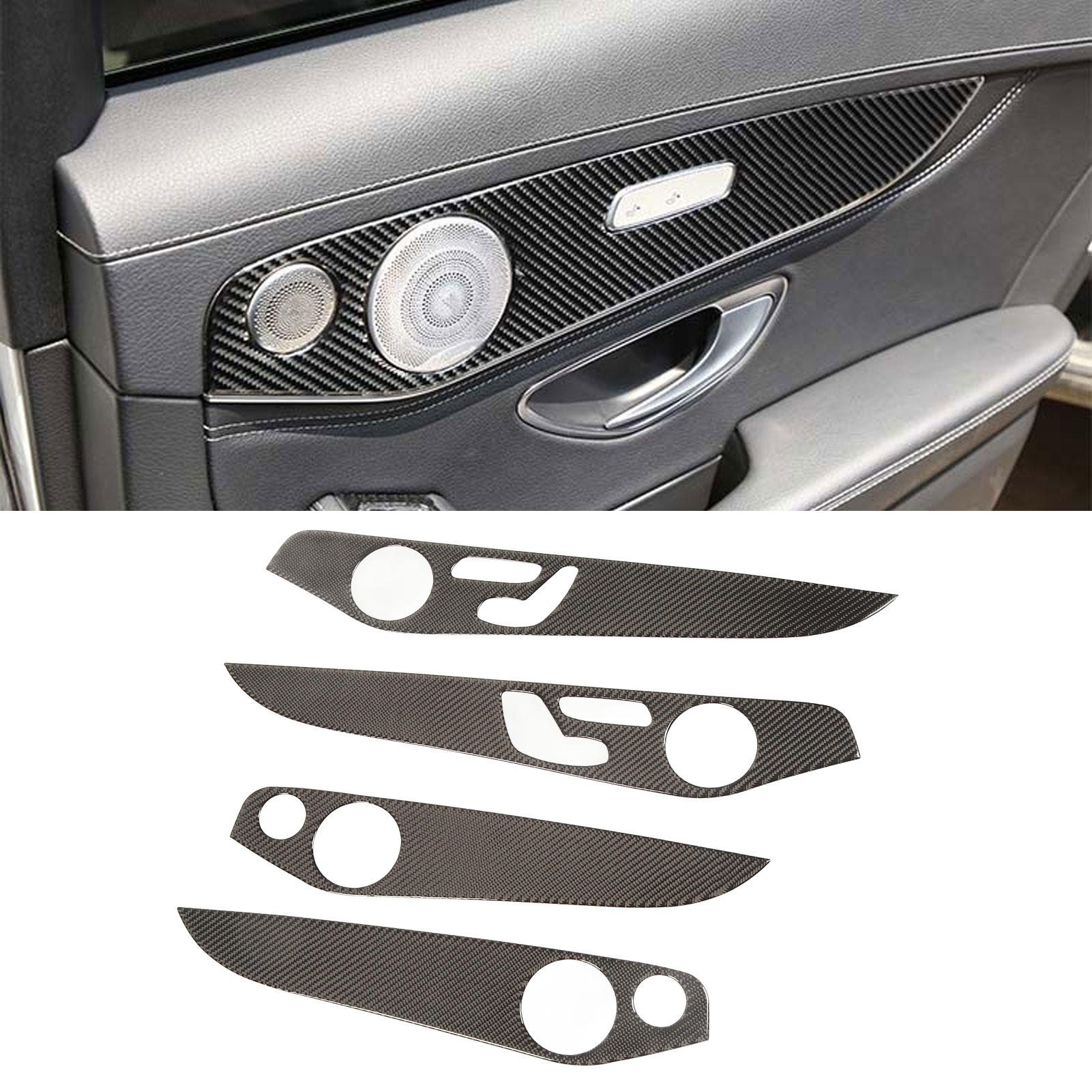 Car Inner Door Panel Cover Carbon Fiber Driver Memory Key Rear Speaker Decor Sticker Replacement for Benz C Class W205 GLC Class