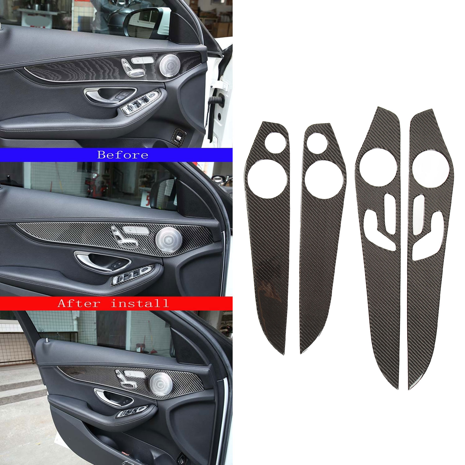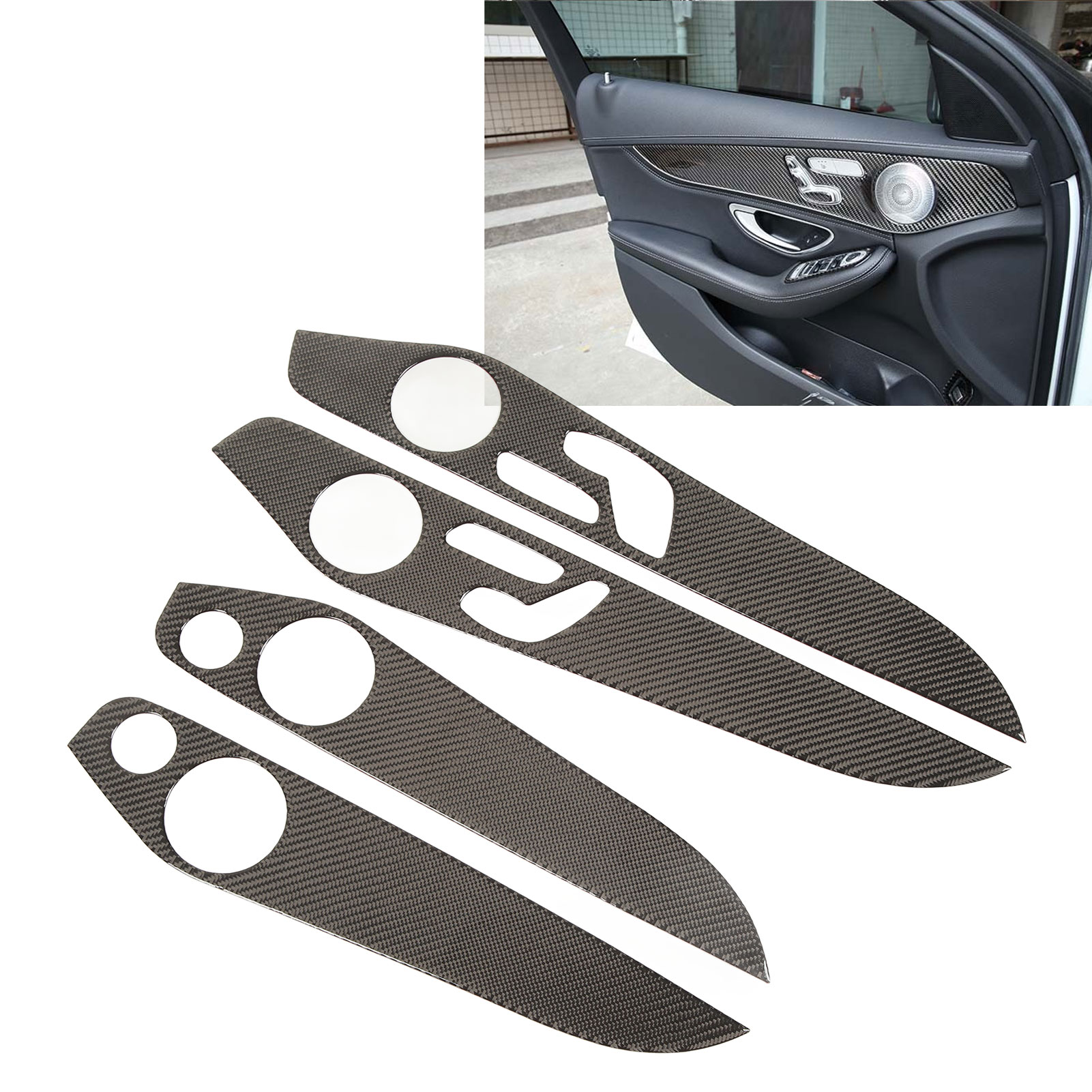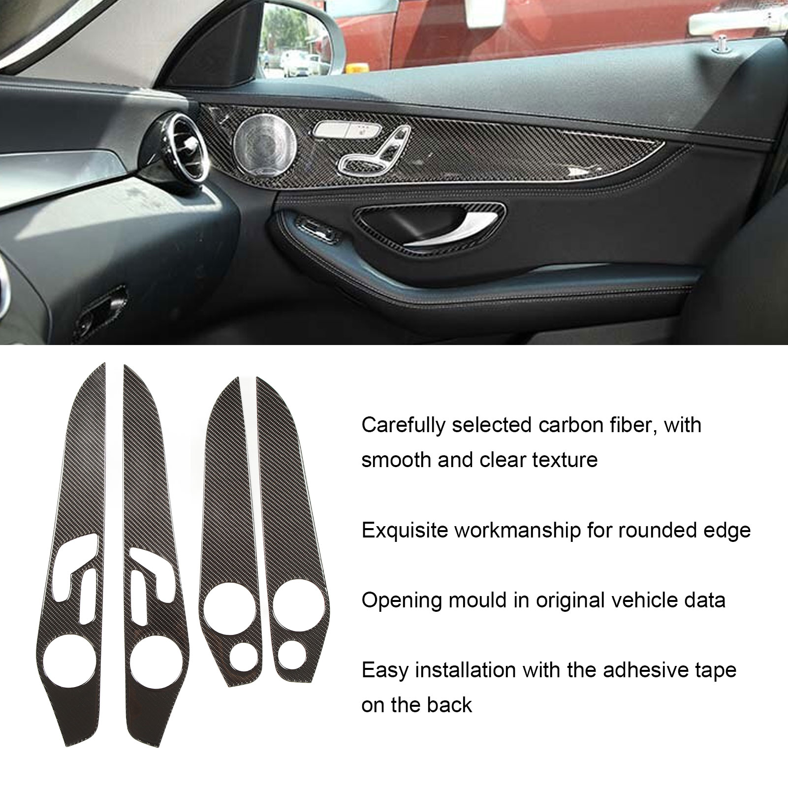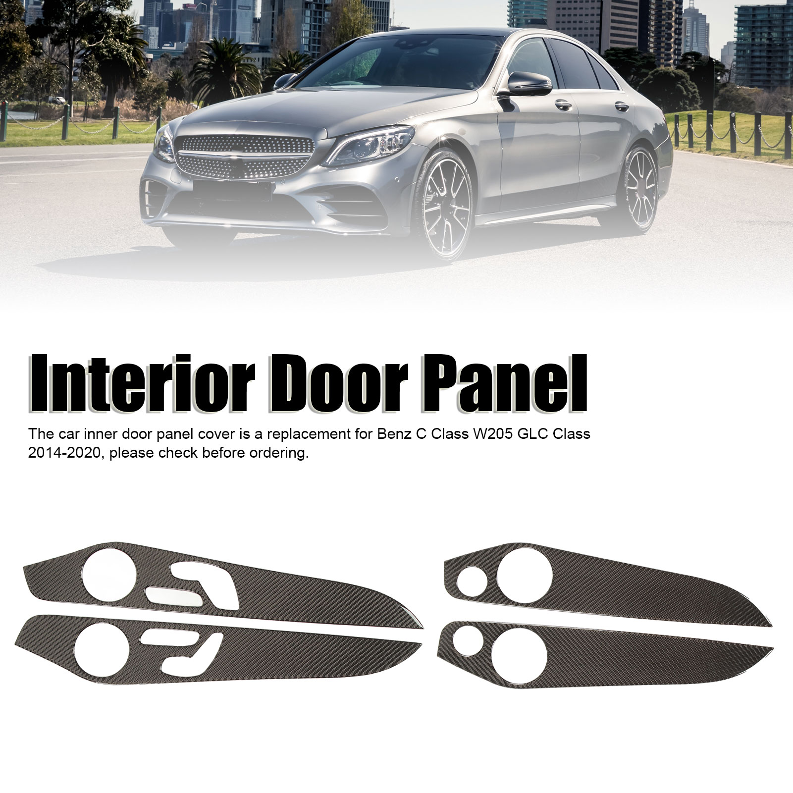 1、Applicable Model: The car inner door panel cover is a replacement for Benz C Class W205 GLC Class 2014‑2020, please check before ordering. 2、Carbon Fiber: The door panel trim kit is specially designed with carbon fiber appearance, well decorate your vehicle more distinctive. 3、Reliable Materials: Made of carefully selected carbon fiber material, which has clear texture and smooth surface, lightweight and sturdy, not easy to fade. 4、Fine Workmanship: The interior door molding trim is processed with fine surface, looks luxurious and elegant, in line with the overall style of your vehicle. 5、Easy to Install: The interior door panel sticker comes with self adhesive on the back, you can directly peel and paste to install, fast and convenient.