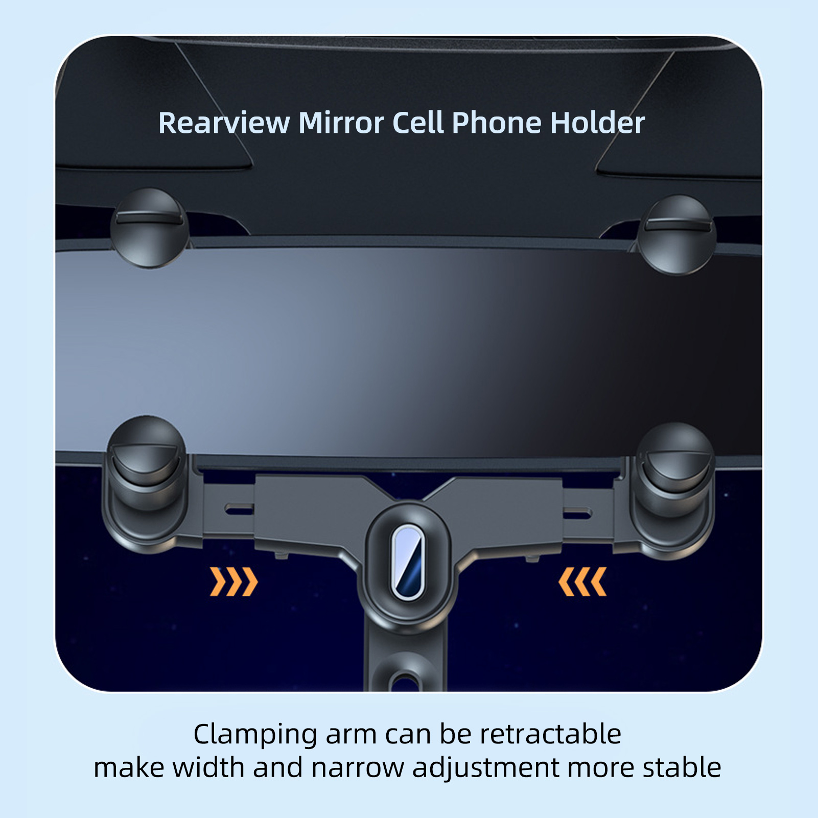 1、360 Degree Rotation: The rear view mirror phone holder can be rotated 360 degrees. You can easily adjust to the best viewing angle and won't block your view when driving. 2、Stable: The bracket is fixed to the mirror by four clips to hold the phone in all directions, which ensures that they will never fall off. 3、Practical: The stand is fixed to the rearview mirror without blocking the front view, and the rotating design is perfect for navigation, music, and recording driving. 4、Safe Driving: This bracket is eye level, just roll your eyes to see the navigation, eliminating the danger of looking down at your phone and reducing driving fatigue. 5、Durable Material: Made of durable ABS, PU material, which is wear resistat, impact proof, stable, and will not damage or scratch your phone.