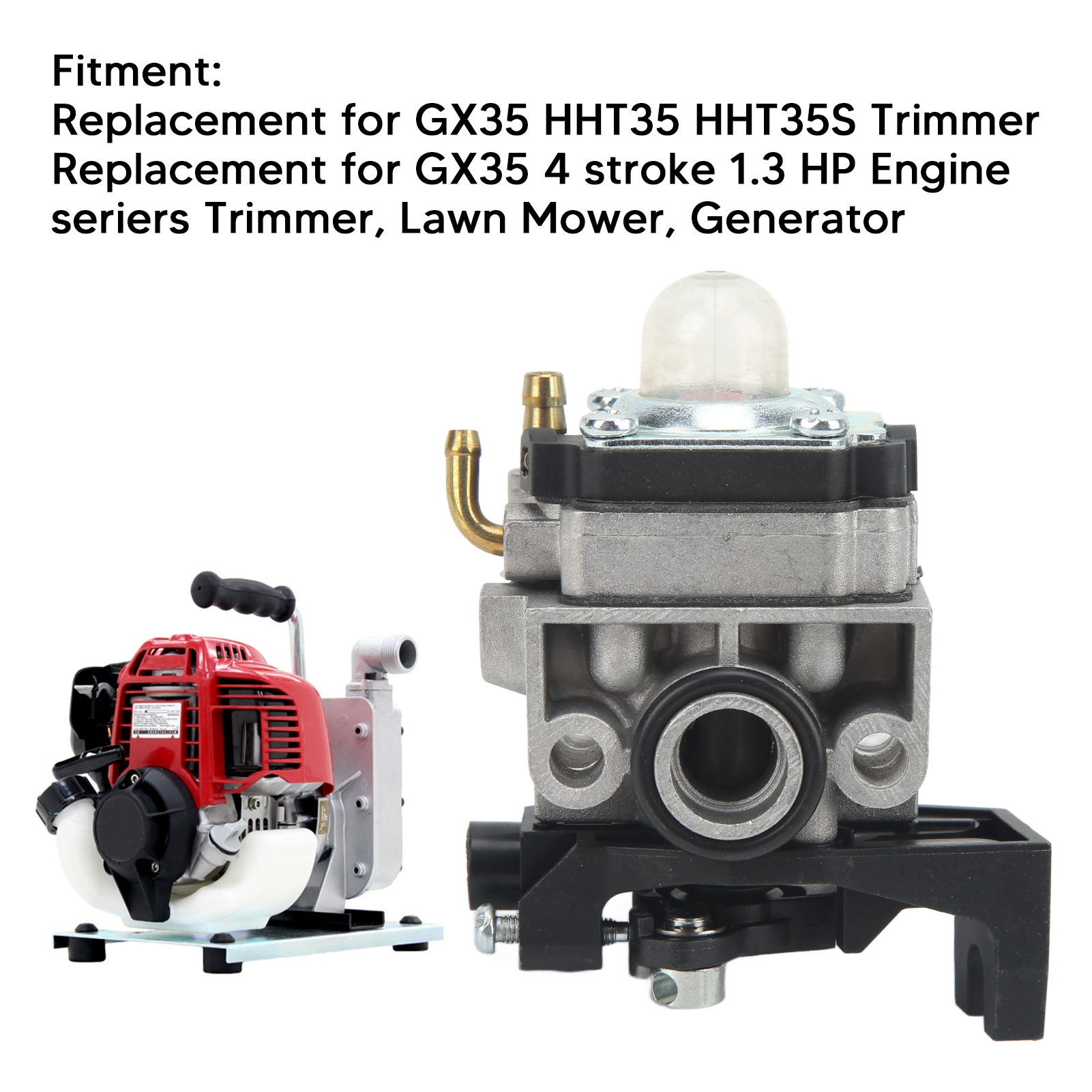Replacement for GX35 4 stroke 1.3 HP Engine seriers Trimmer, Lawn Mower, Generator1、Fitment: Replacement for GX35 HHT35 HHT35S Trimmer, replacement for GX35 4 stroke 1.3 HP Engine seriers Trimmer, Lawn Mower, Generator. 2、Part Number: The OE numbers for reference are 6100 Z0Z 034, WYB 16C. Please make sure the OE number matches the part you are replacing. 3、Package Contents: This kit includes 1pc carburetor, 1pc fuel line kit, 2pcs primer bulbs, 1pc fuel filter, 1pc gasket, 1pc spark plug, and 1pc air filter. 4、Essential Part: The carburetor is the key part of the machine engine, it can ensure the normal operation of the machine, high performance. 5、Durable Material: Constructed of high strength aluminum alloy, this carb has high hardness, good heat dissipation, and not easy to damage.