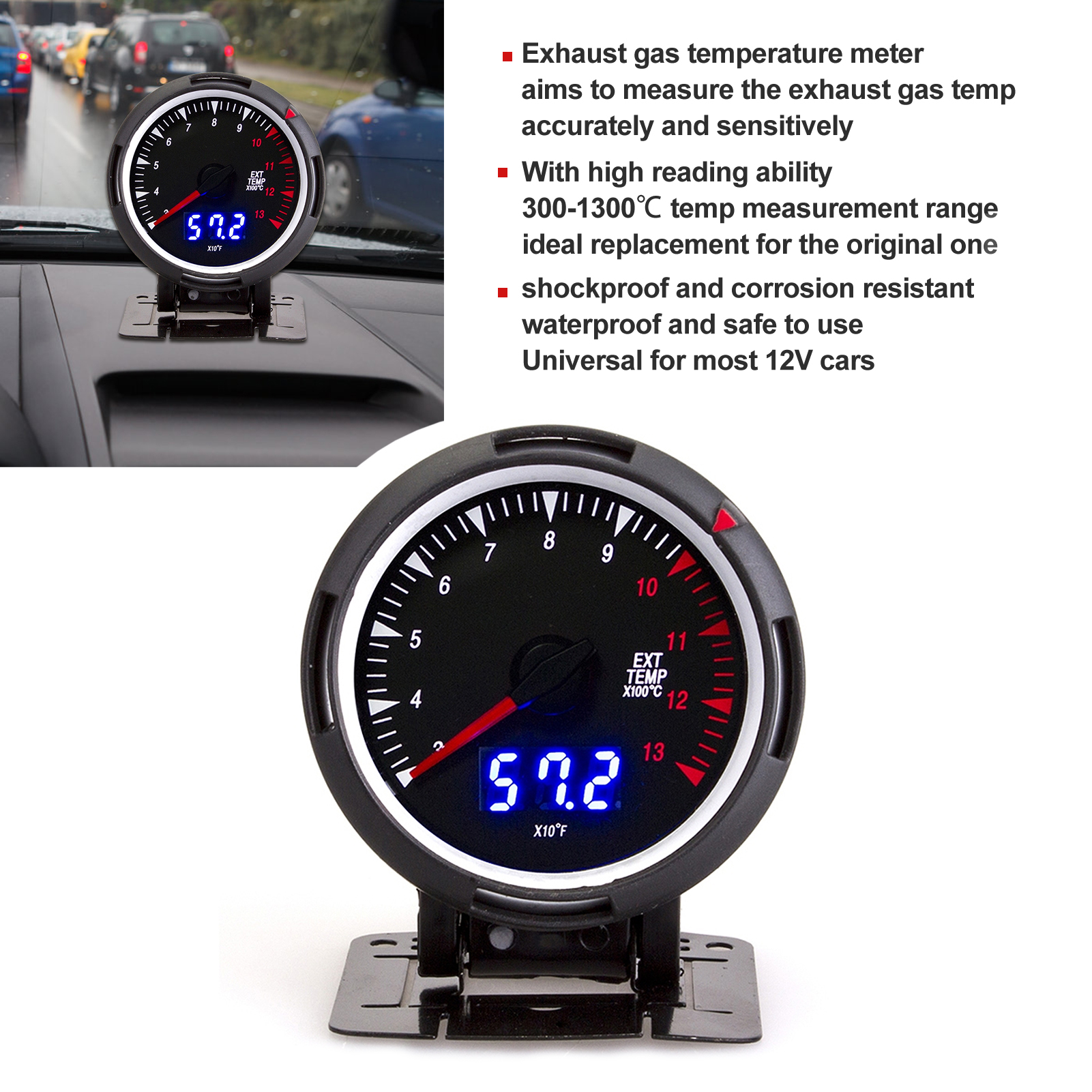 Exhaust Gas Temp Gauge Pointer 2.5in Digital EGT Meter 300‑1300℃ W/Sensor for 12V Gasoline Car