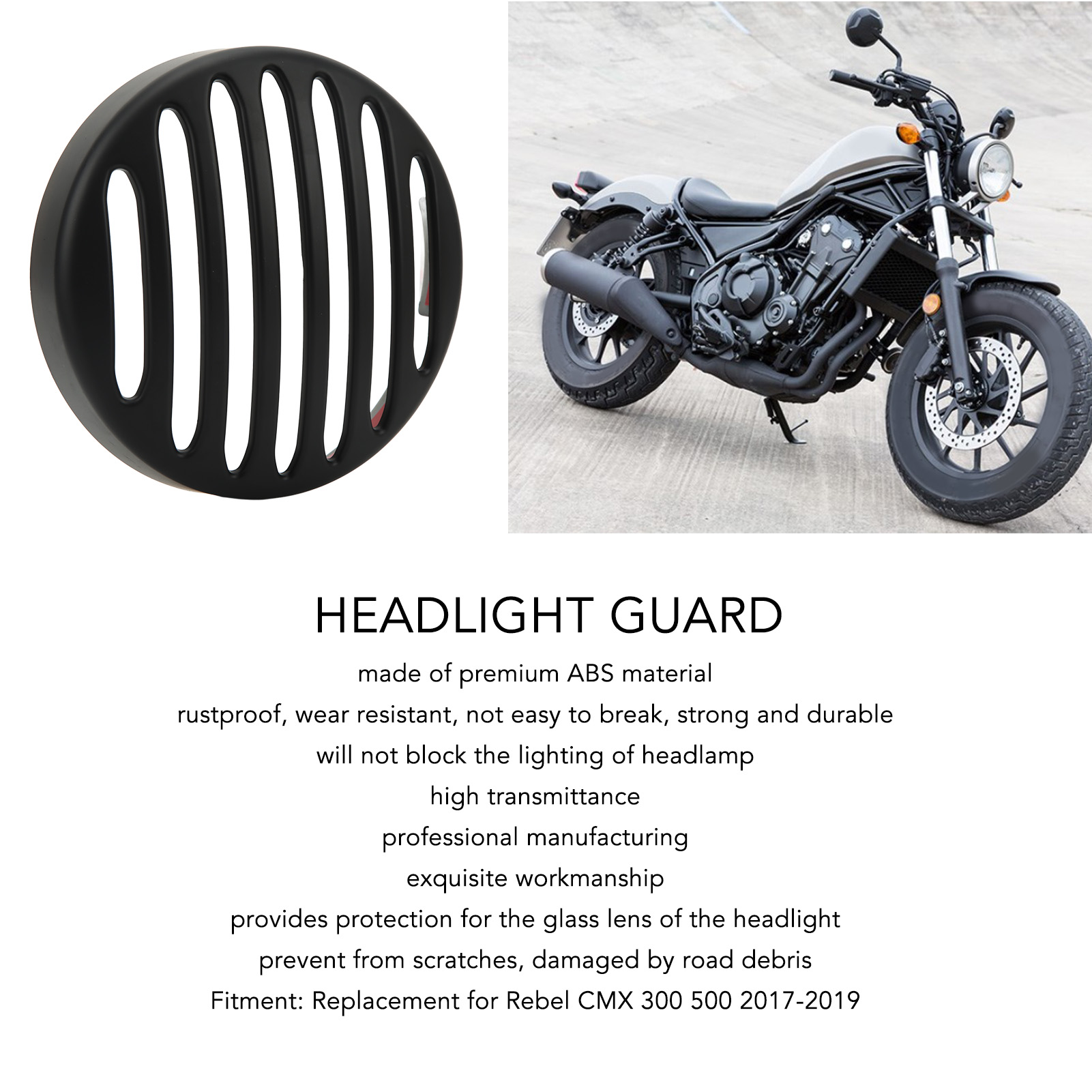 Headlight Grille Cover Motorcycle Head Lamp Guard Replacement for Rebel CMX 300 500 2017‑2019 Black